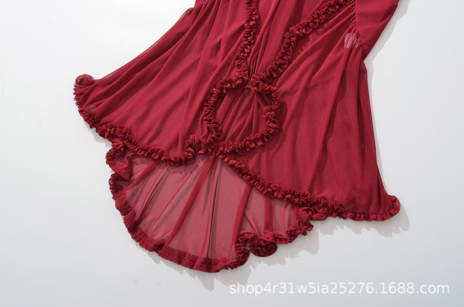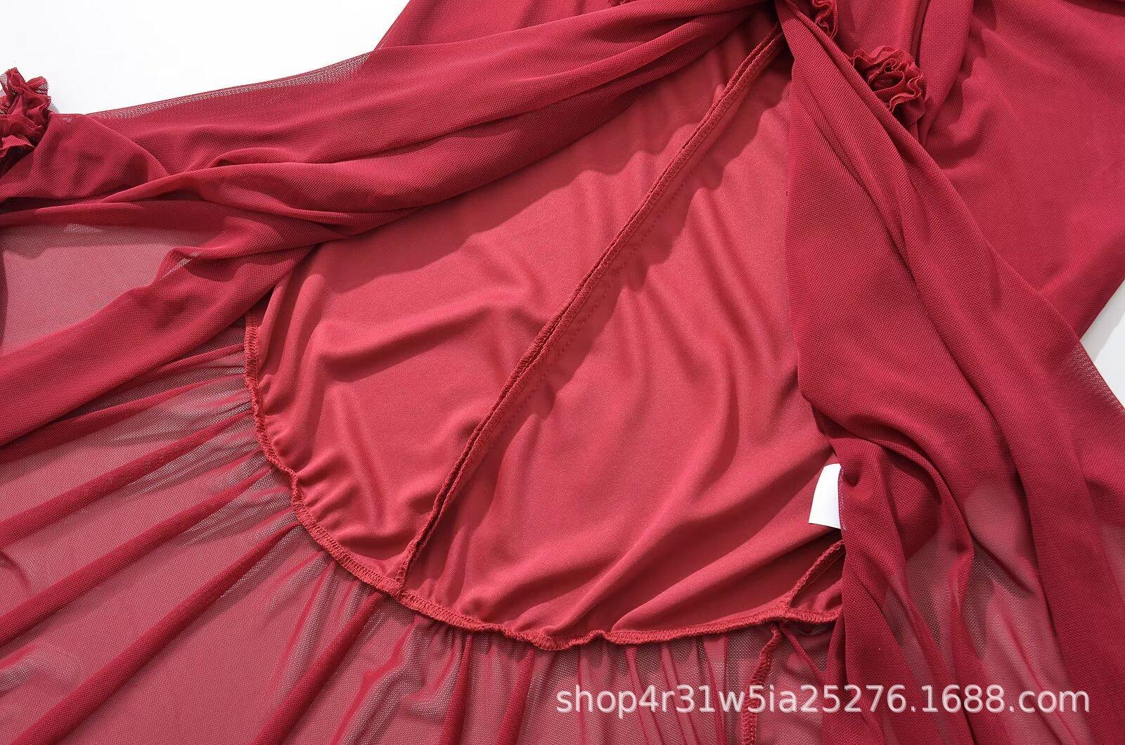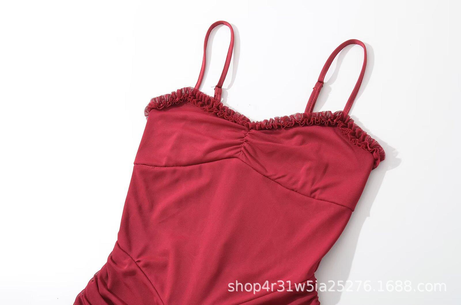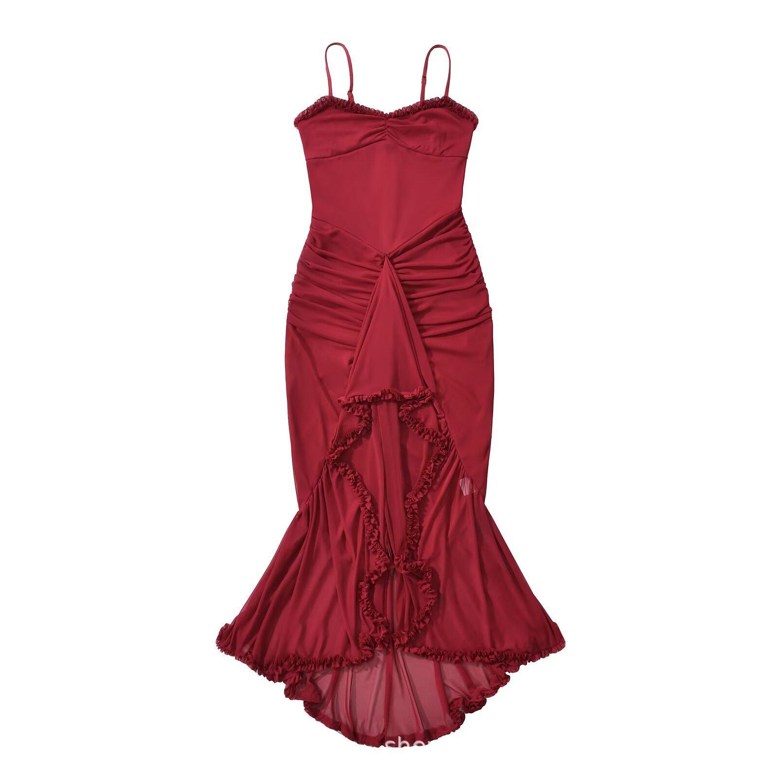 Amazon Aliexpress Exportación Transfronteriza Ropa de Mujer 2025 Verano Malla Tirantes Sexy Espalda Descubierta Cola de Pescado Vuelo Midi