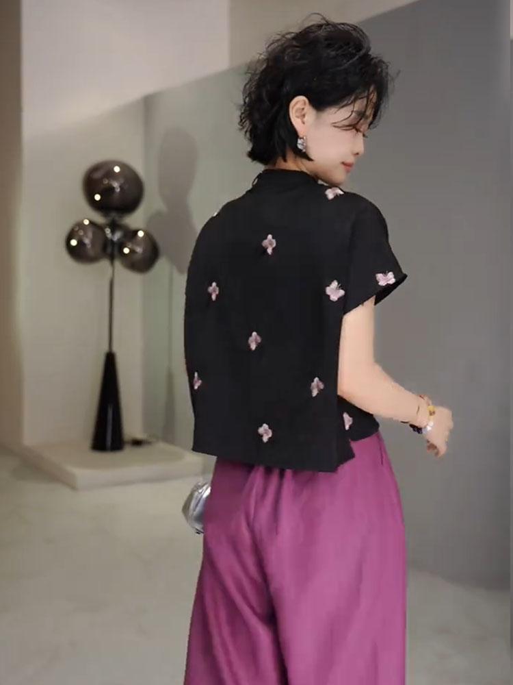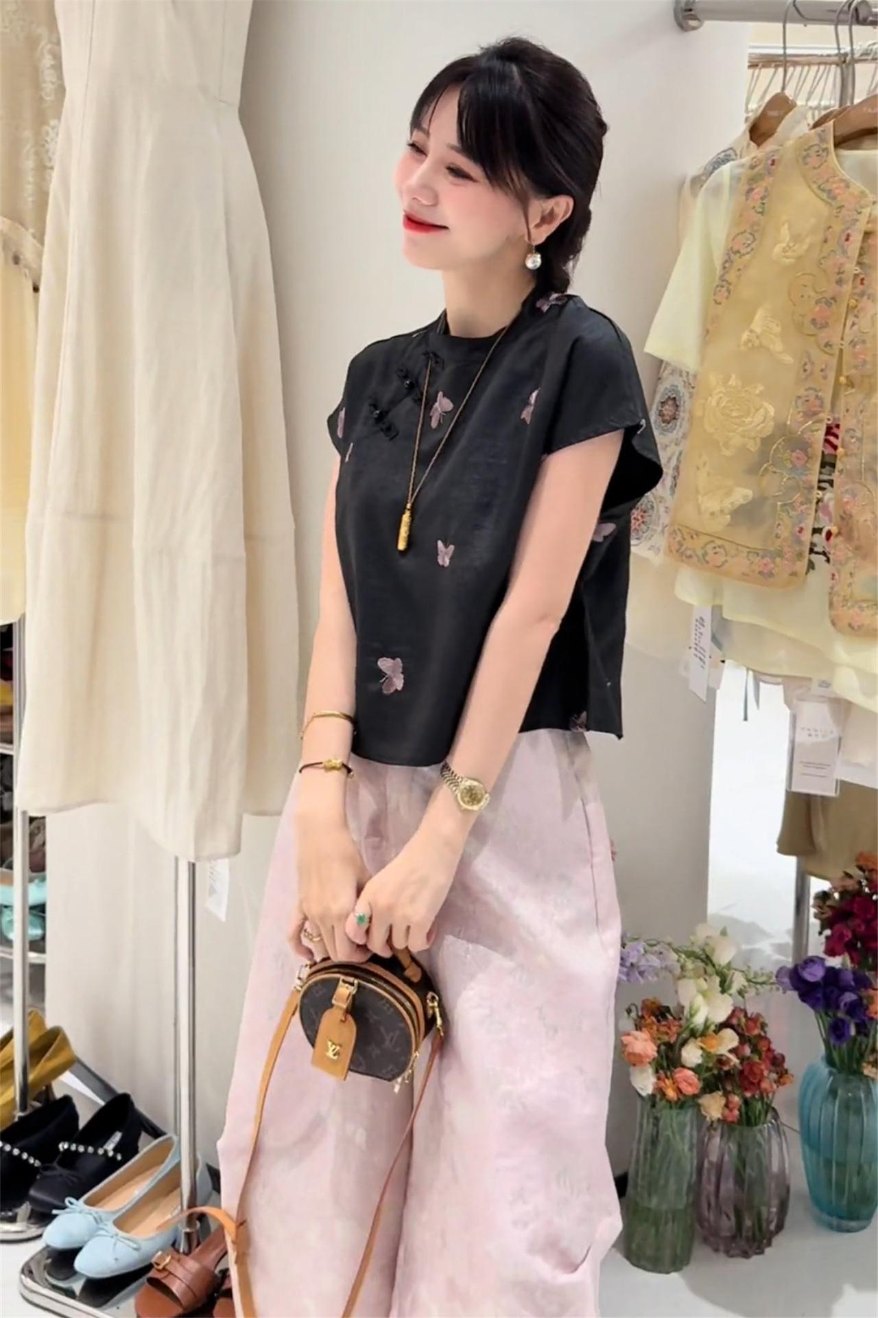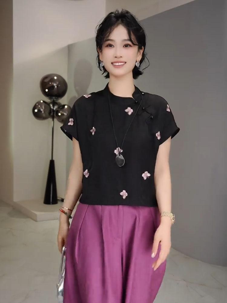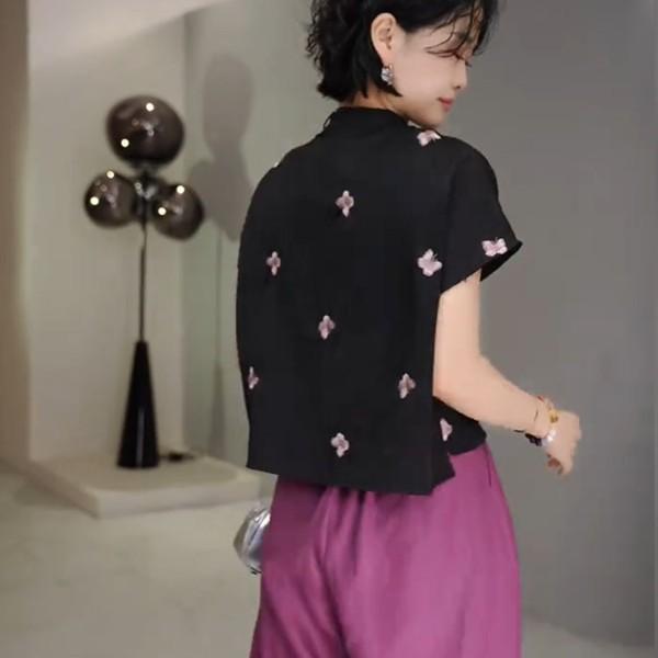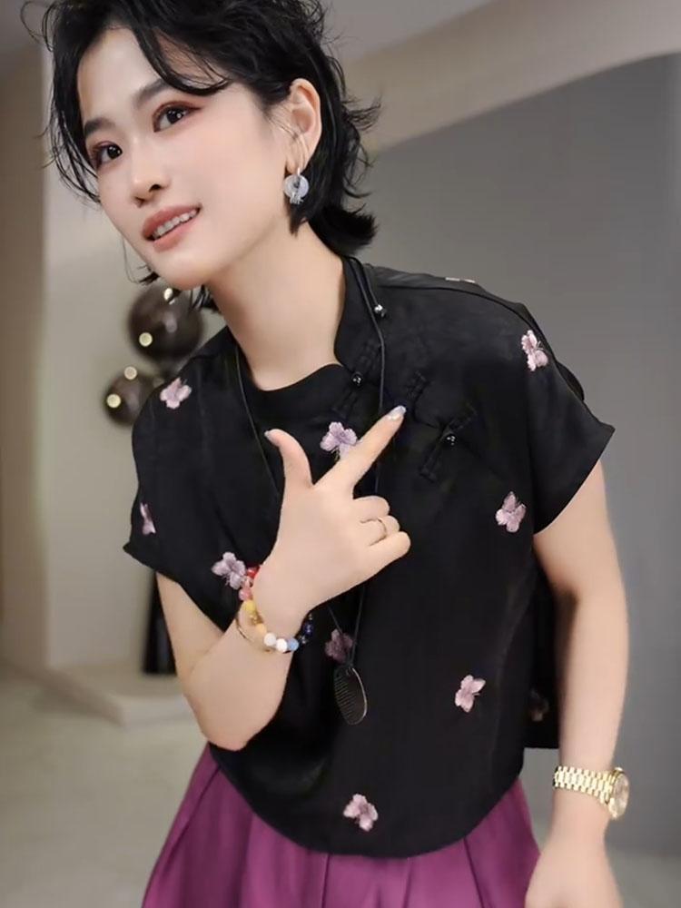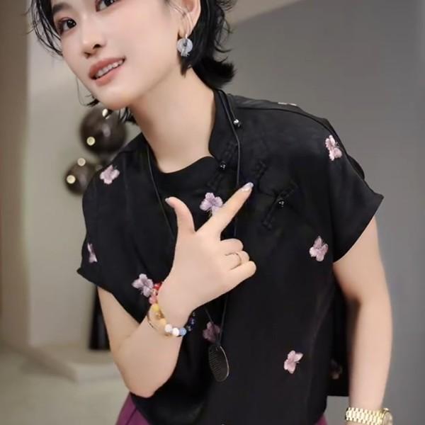 Nueva Camiseta de Manga Corta para Mujer con Diseño Jacquard Bordado de Estilo Chino 2025 Nuevo Estilo Caliente Verano Tops Únicos y Hermosos para Mujer