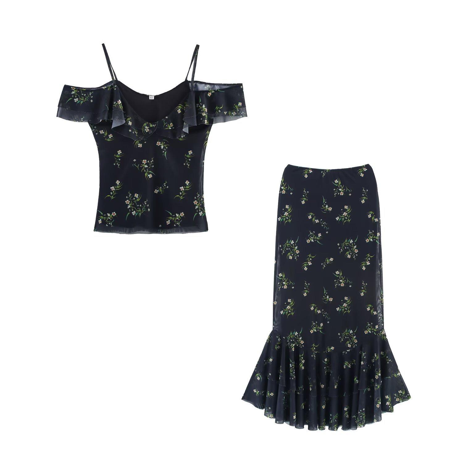 Comercio Exterior 2025 Verano Moda Europea y Americana Malla de Seda Estampada Camisola + Traje de Falda para Mujer B482319/20
