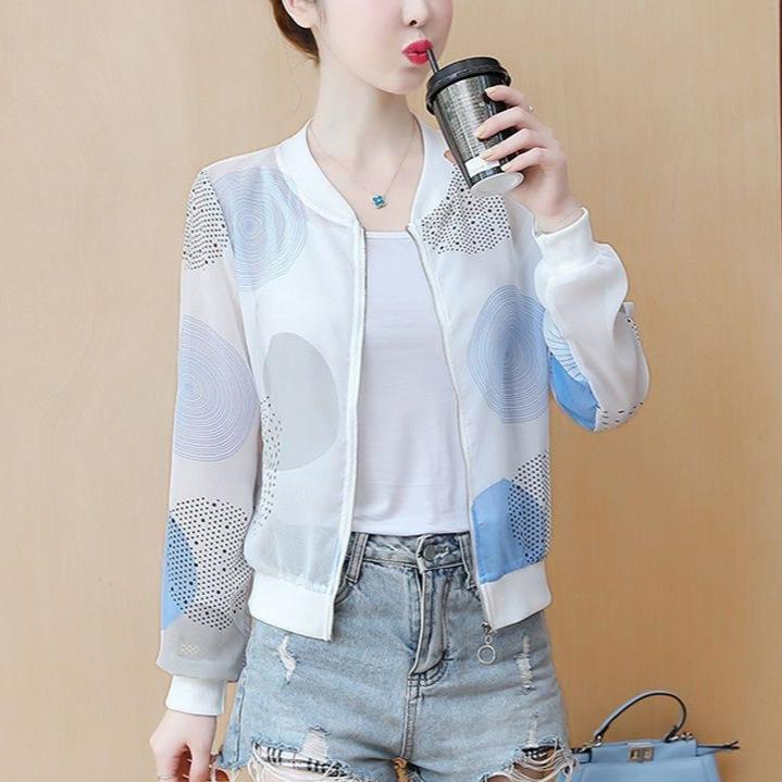 Chaqueta de Uniforme de Béisbol de Gasa de Manga Larga para Mujer Verano 2025 Nueva Holgada y Versátil Ropa Corta de Protección Solar Anti-UV
