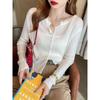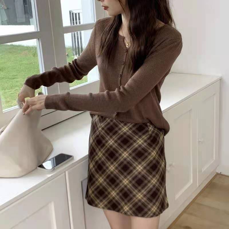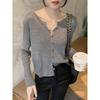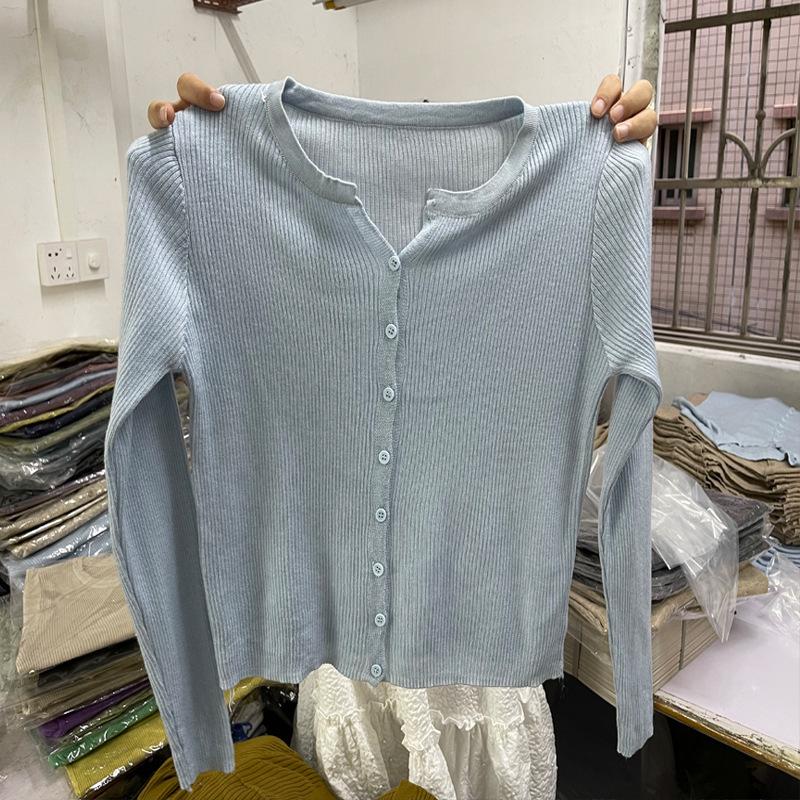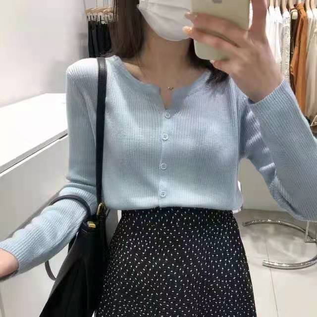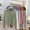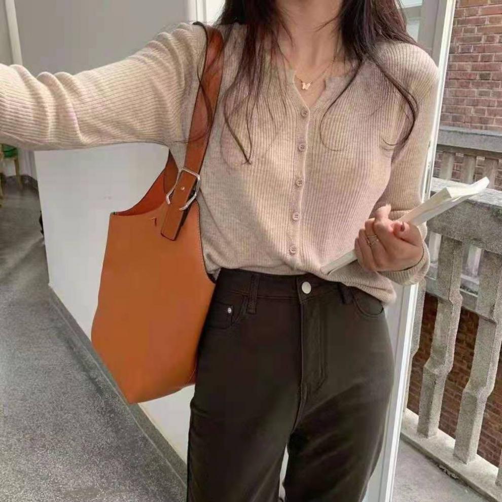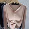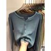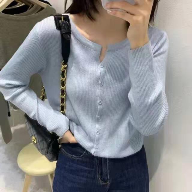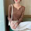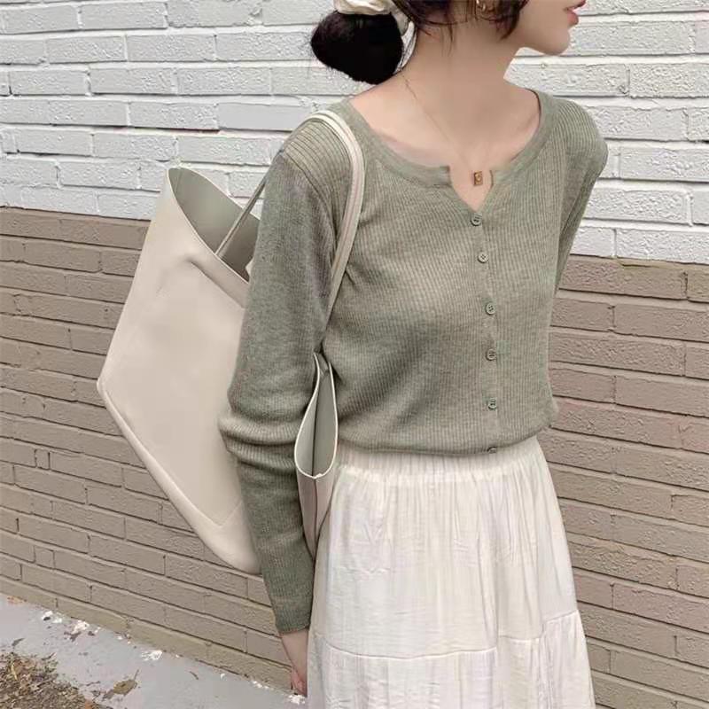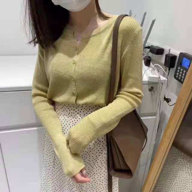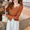 Cárdigan Dulce Otoñal Fresco Dulce para Mujer Delgado Cuello Redondo Mezcla de Cachemira Manga Larga Color Sólido Chaqueta Base