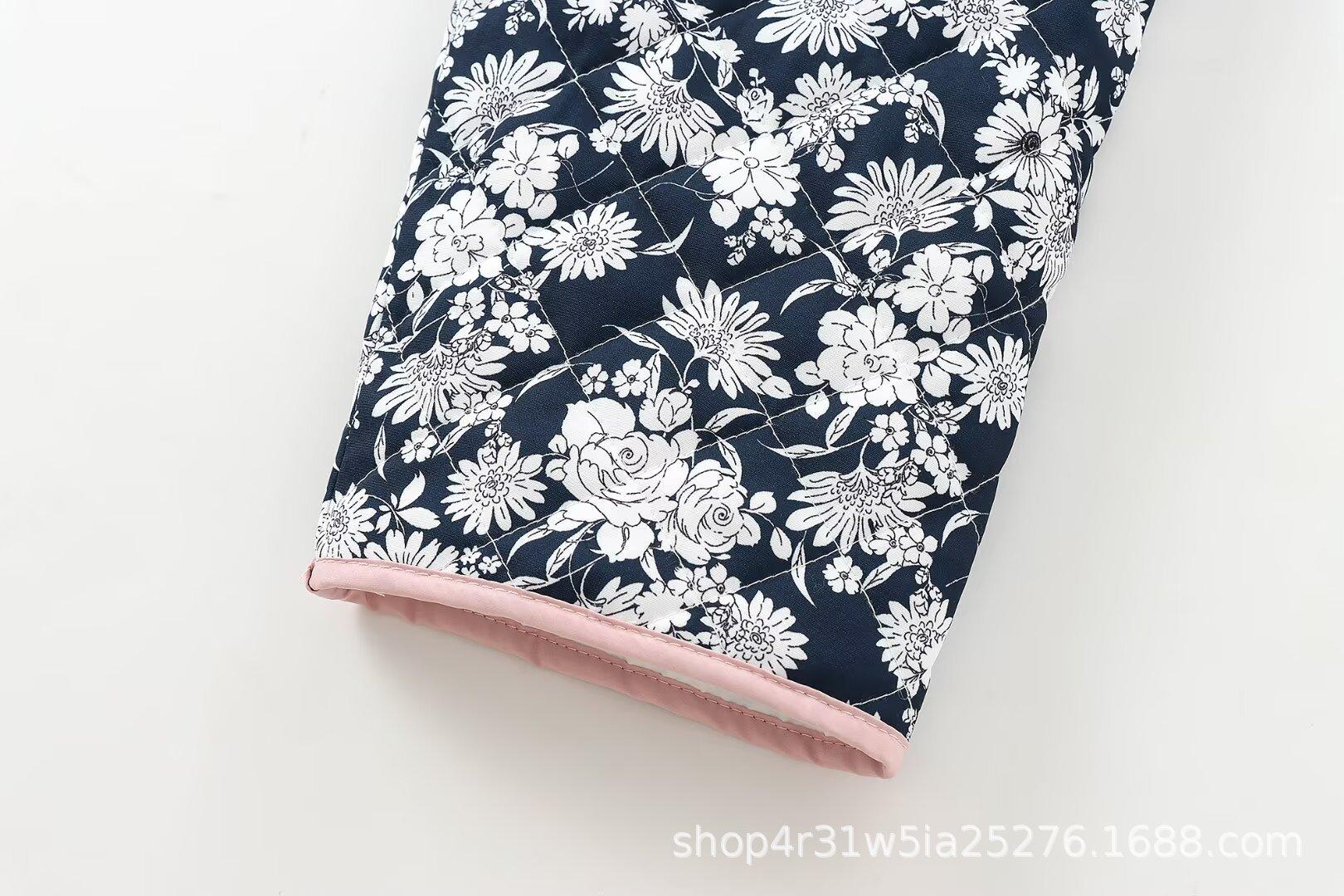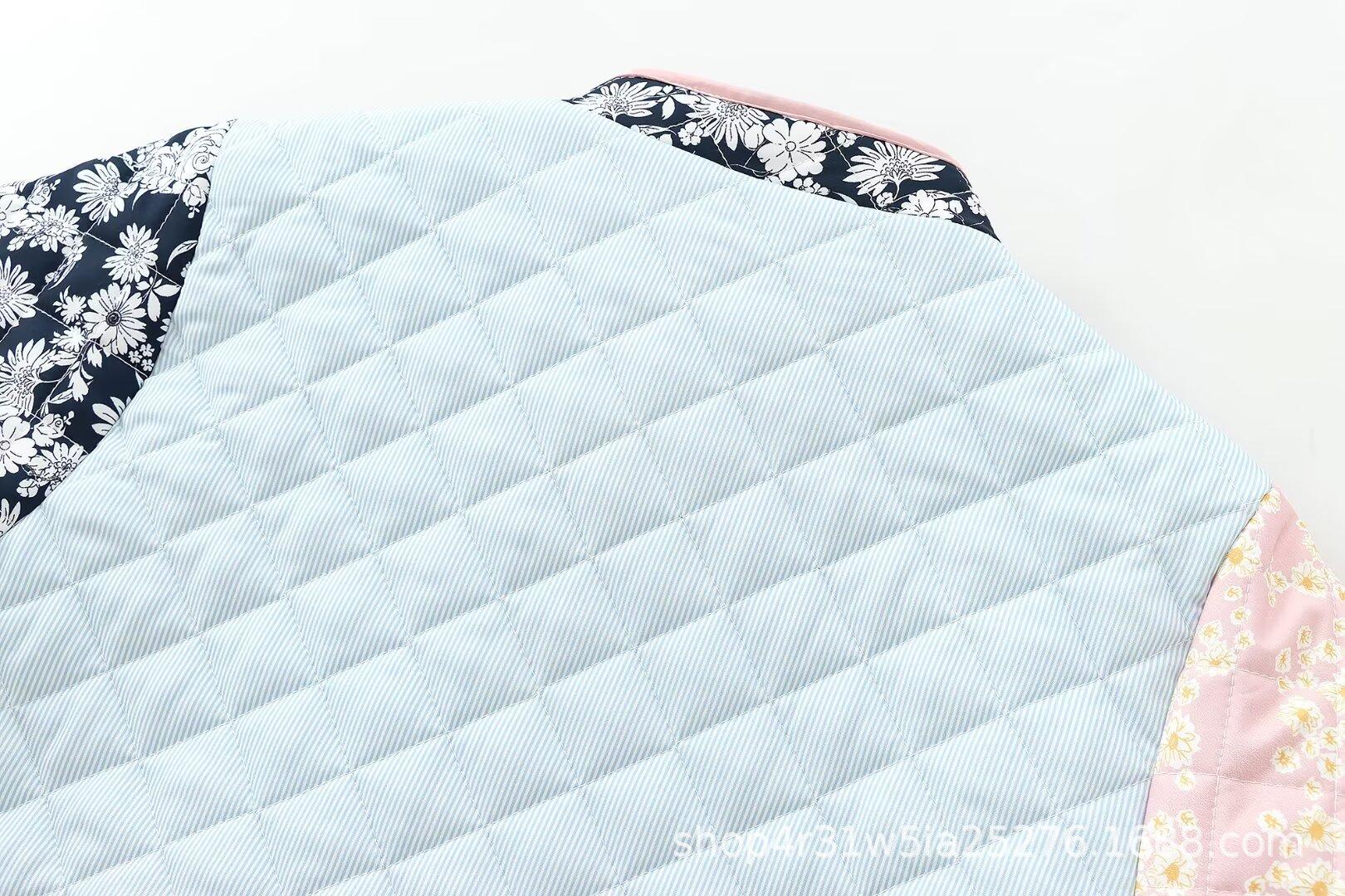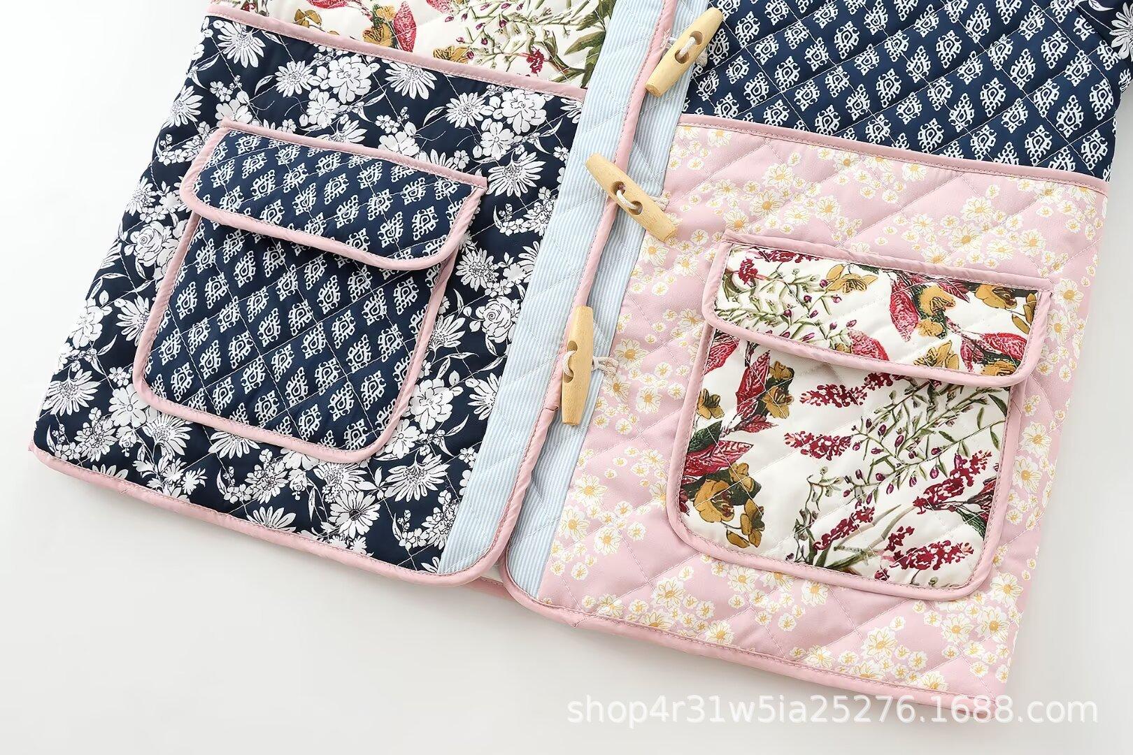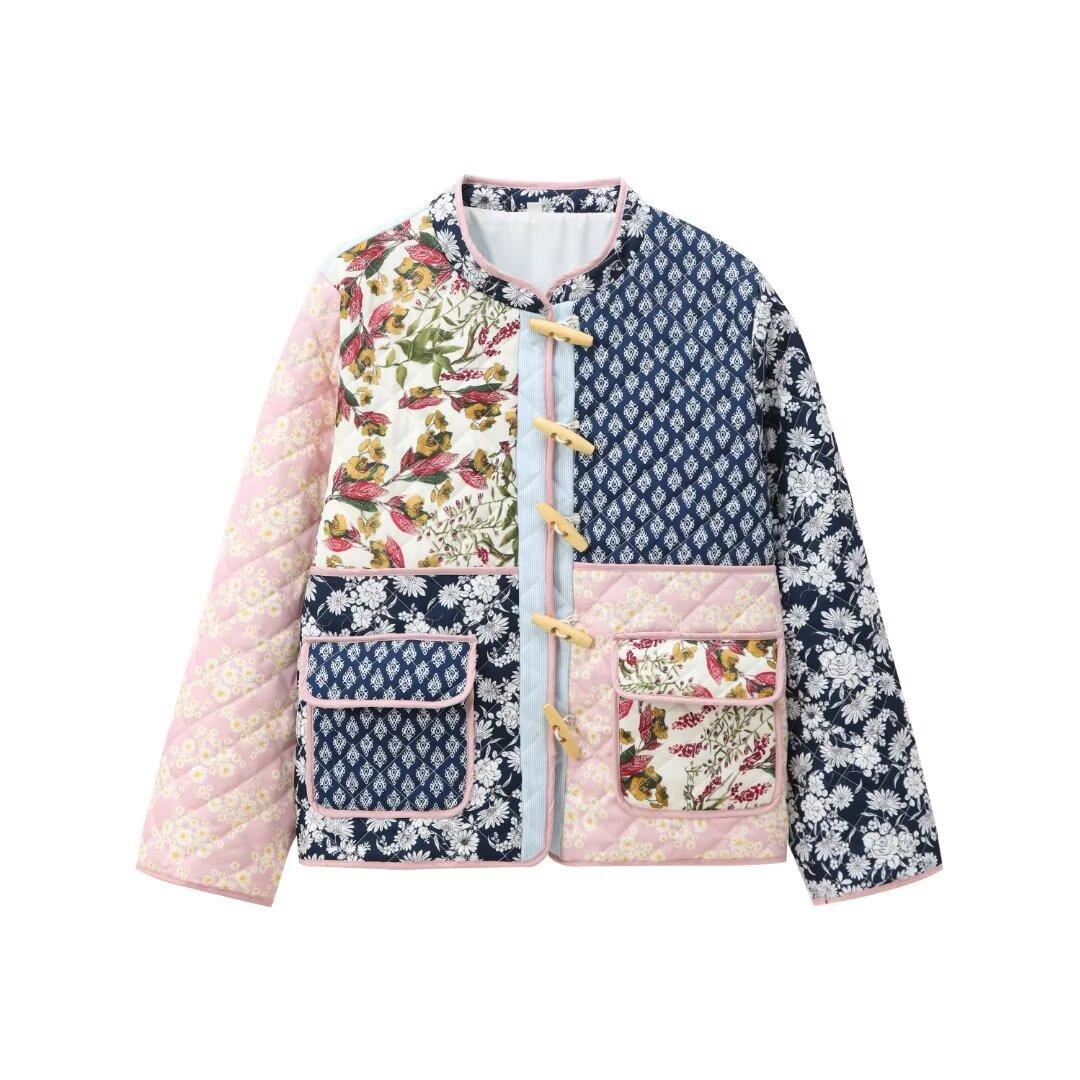 Europa y Estados Unidos venta al por mayor 2024 otoño nuevo abrigo acolchado de algodón para mujer versátil con estampado, costuras, hilera sencilla de botones de cuerno y bolsillo