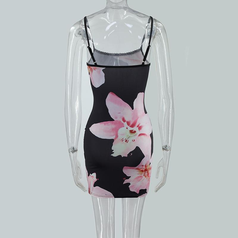 2025 Europeo y Americano Exportación Transfronteriza Verano Nuevo Sexy Vestido Corto Ajustado con Encaje y Estampado para Mujer