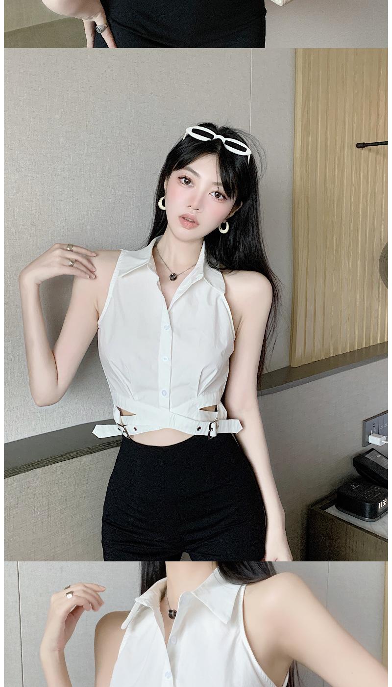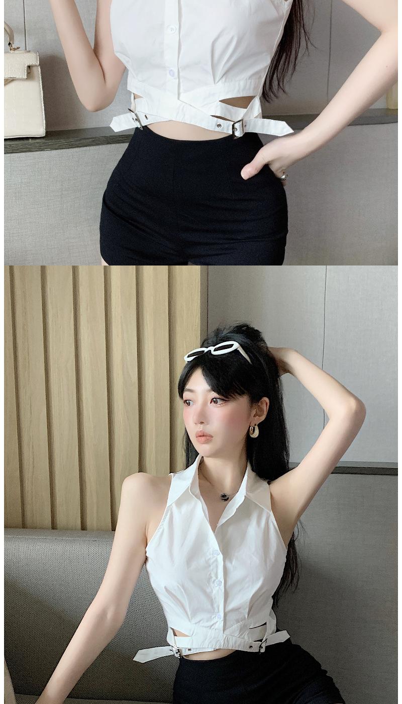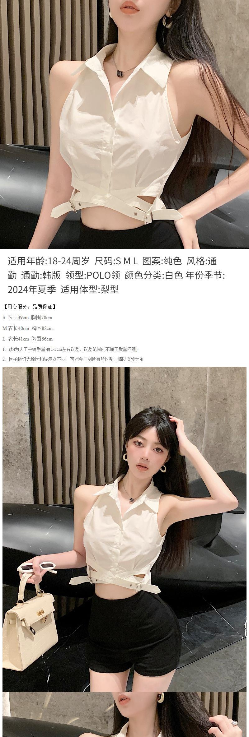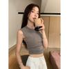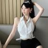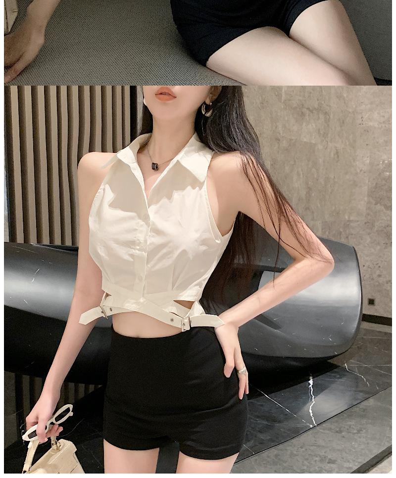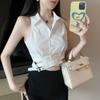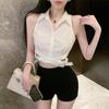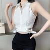 Chic Sexy Elegante Camisa Polo sin Mangas Diseño para Mujer Verano Asimétrico Corto Ajustado