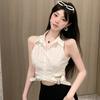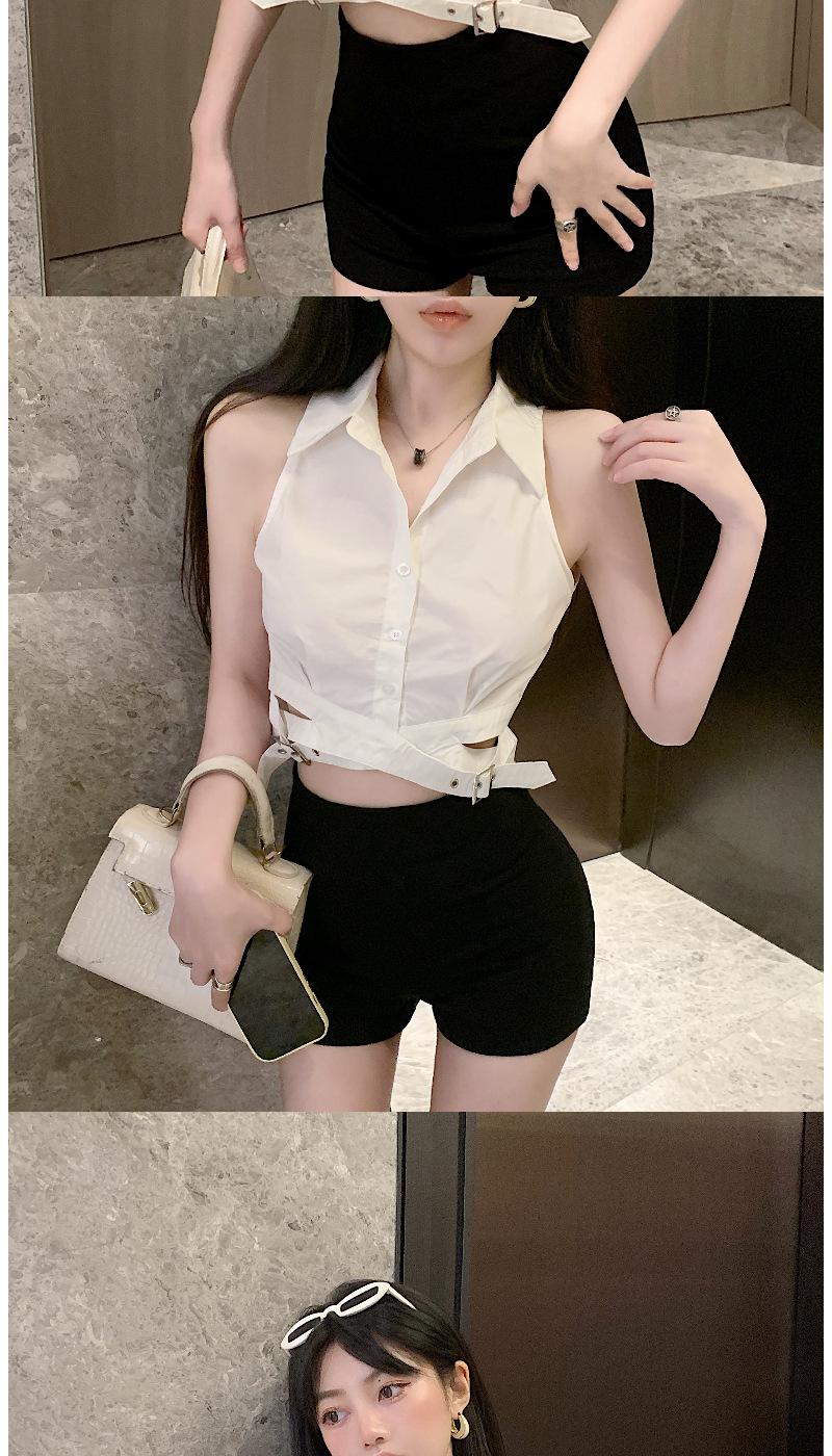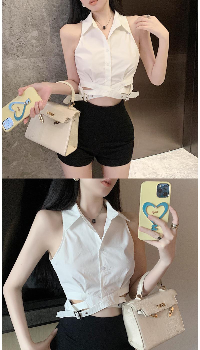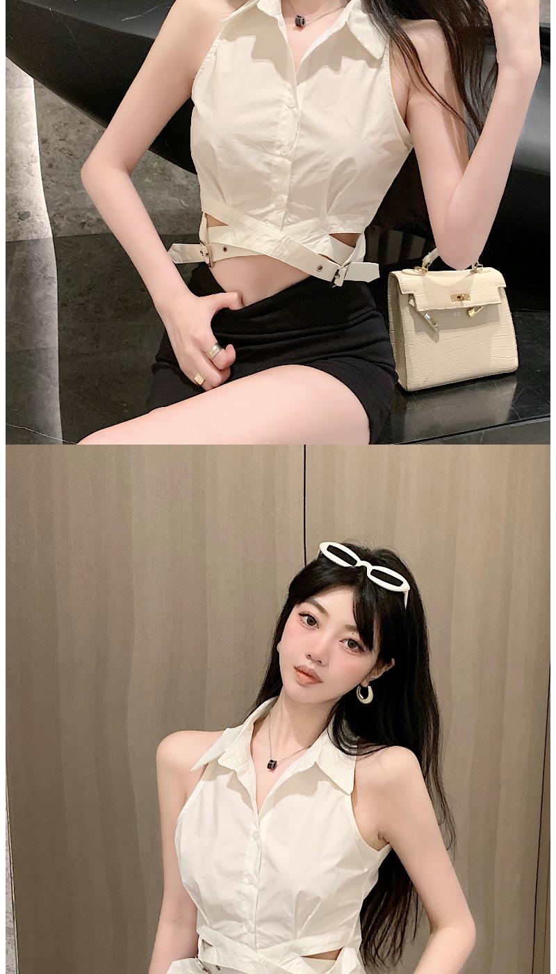 Chic Sexy Elegante Camisa Polo sin Mangas Diseño para Mujer Verano Asimétrico Corto Ajustado