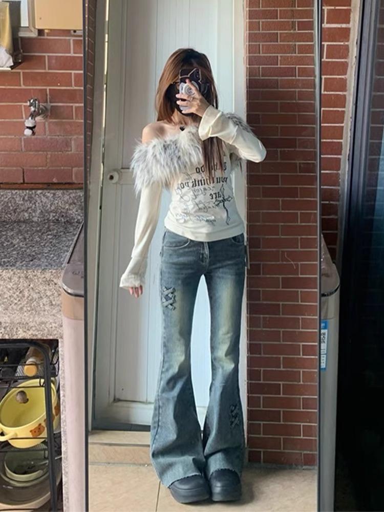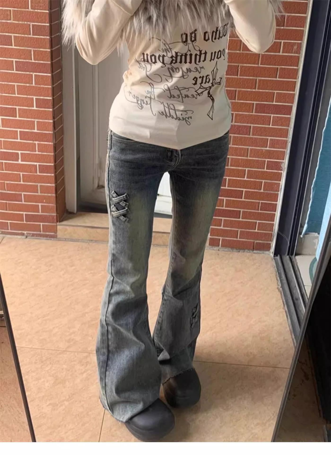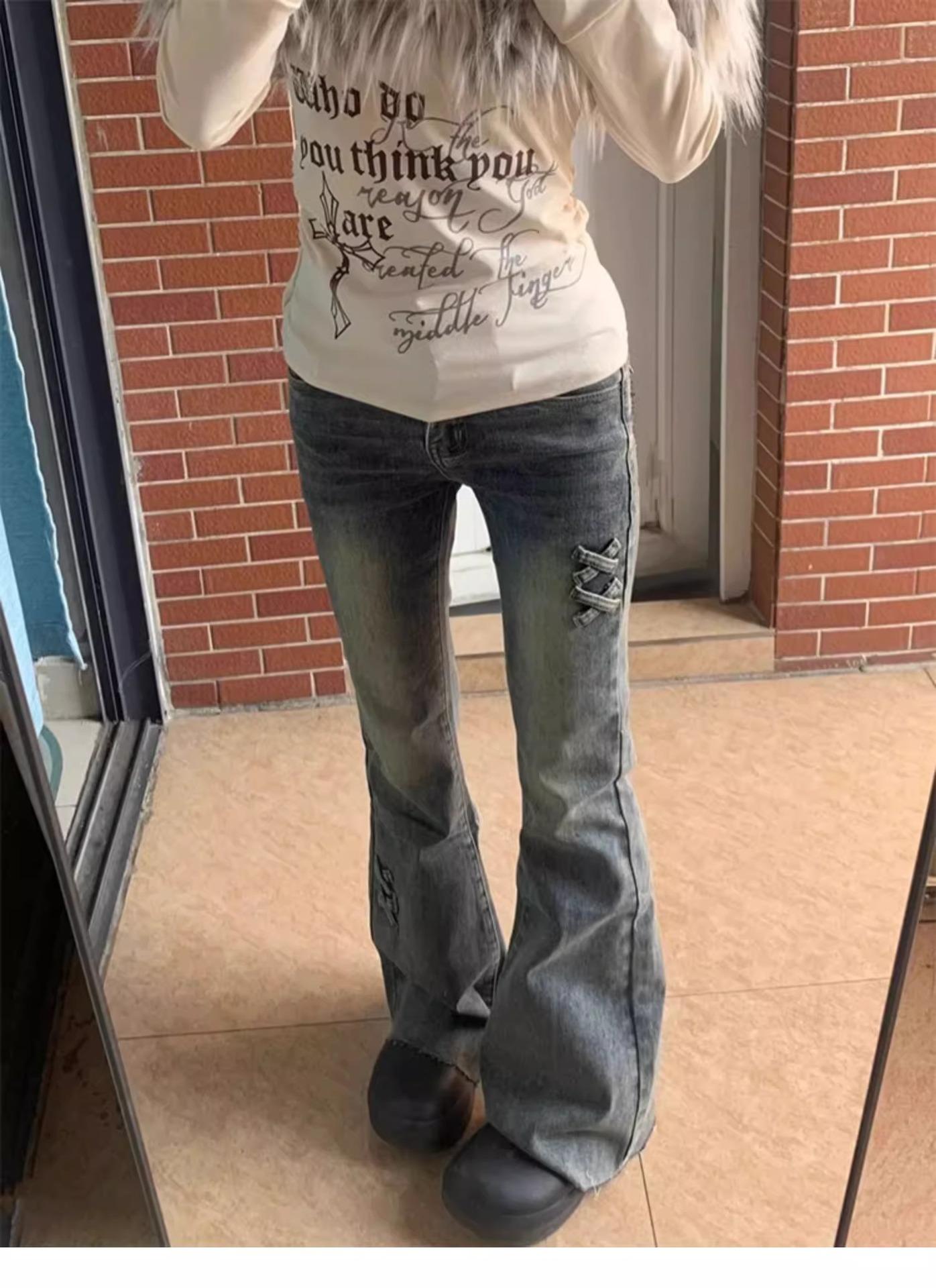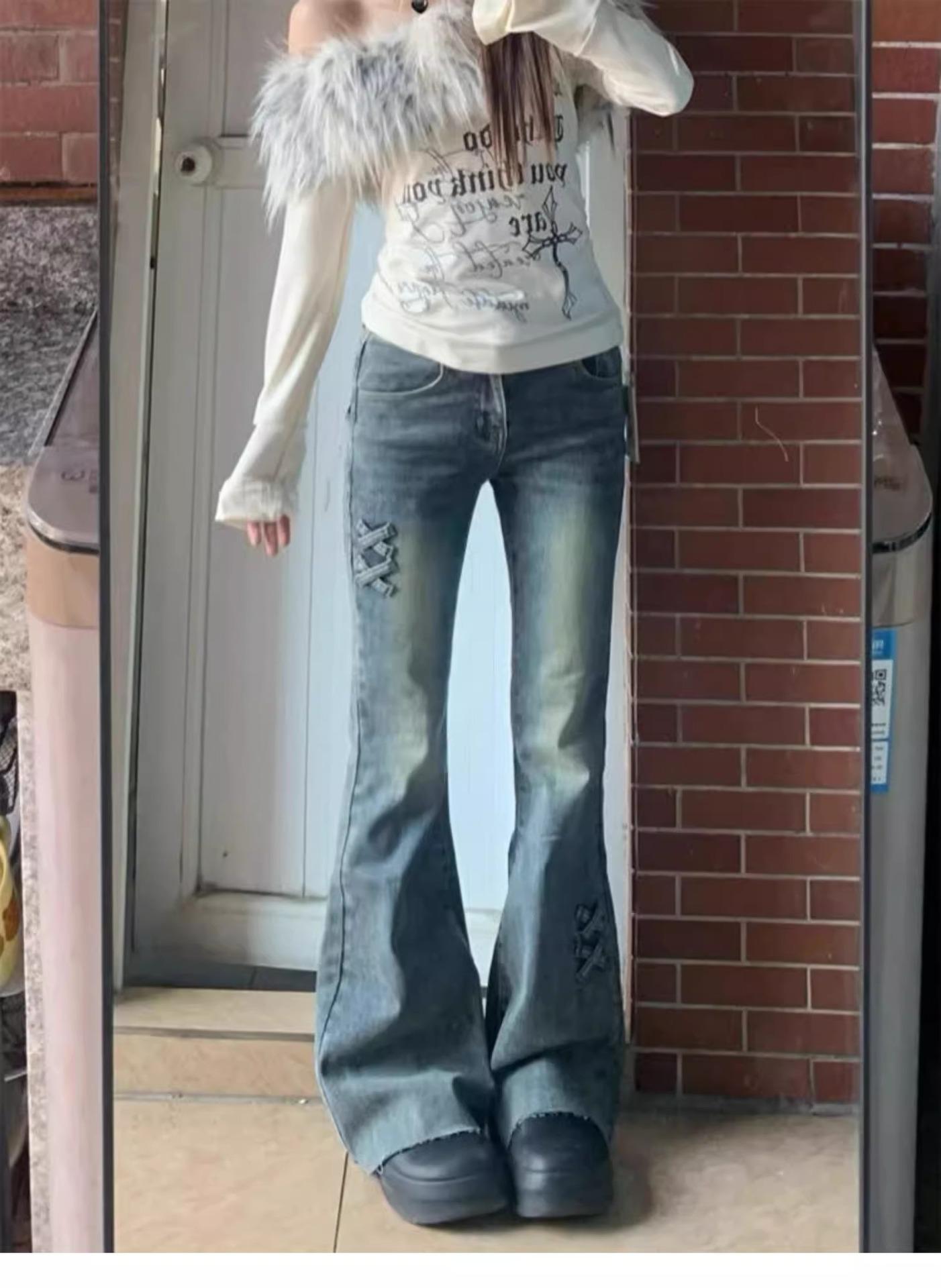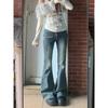Jeans Stretch Vintage Estilo Americano para Mujer, Primavera y Otoño, Talla Grande, Corte Ajustado, Cintura Alta, Pierna Recta, Corte Bota, Pantalones Acampanados
