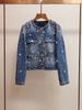 Chaqueta Corta de Primavera Nueva Moda Estilo Occidental Adelgazante Industria Pesada Cuentas de Flores Pantalones de Pierna Recta Traje de Mezclilla Mujer