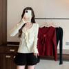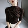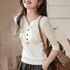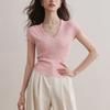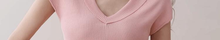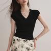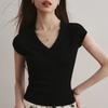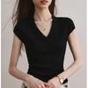 Camiseta base tejida de cuello en V simple, versátil, elegante, ajustada, a la moda para mujer, verano chic, súper bonita, top para ir al trabajo