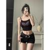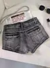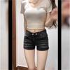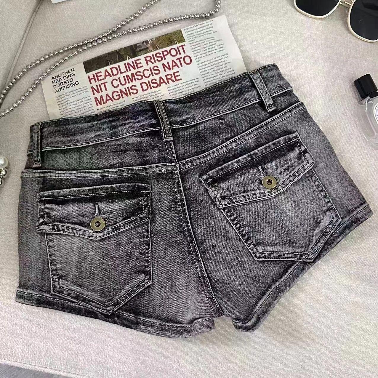 Shorts de mezclilla retro americanos lavados en negro y gris para mujer en verano, pantalones cortos sexys de tiro bajo con línea A que ciñen la cadera para mujer
