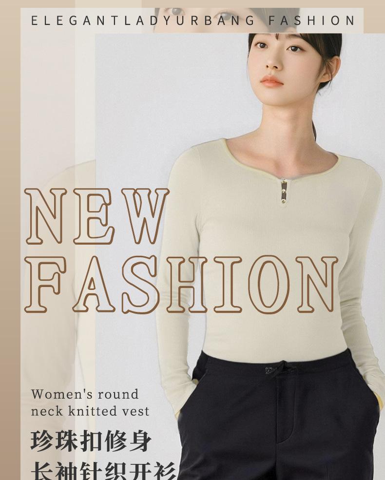 Suéter de manga larga con cuello redondo para mujer, diseño con sentido de principios de otoño, top nuevo de otoño 2024, estilo occidental, top ajustado