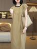 Vestido francés estilo Hepburn ajustado de manga corta para mujer 2025 Verano Nuevo Holgado Adelgazante Cómodo Falda Recta