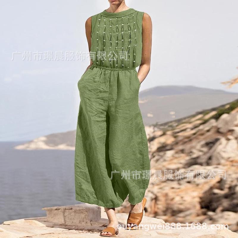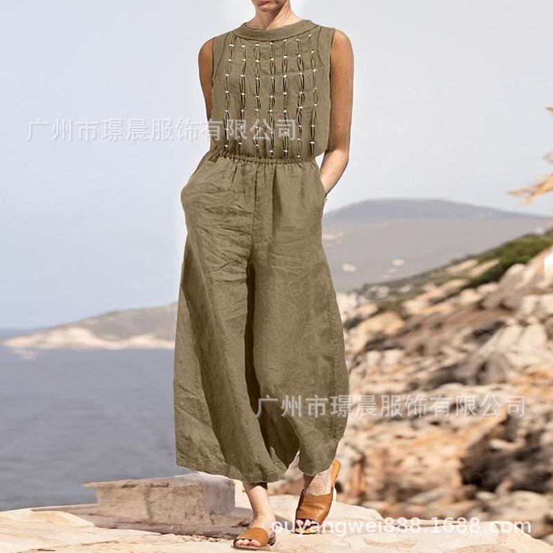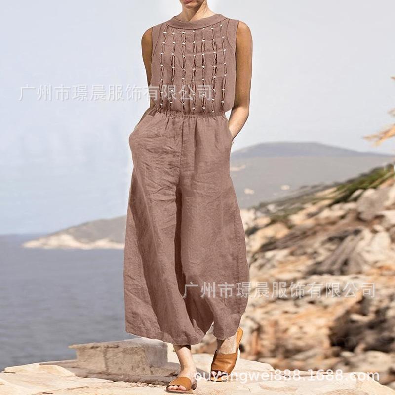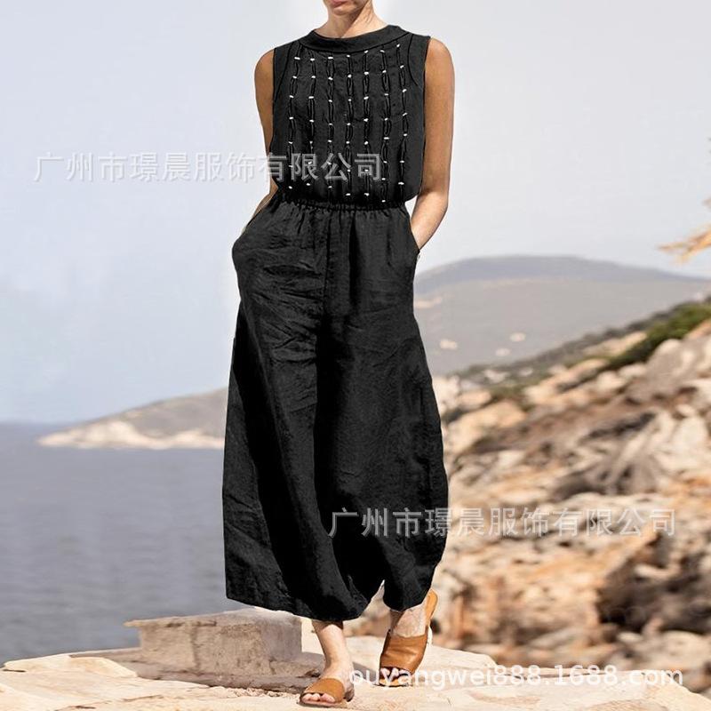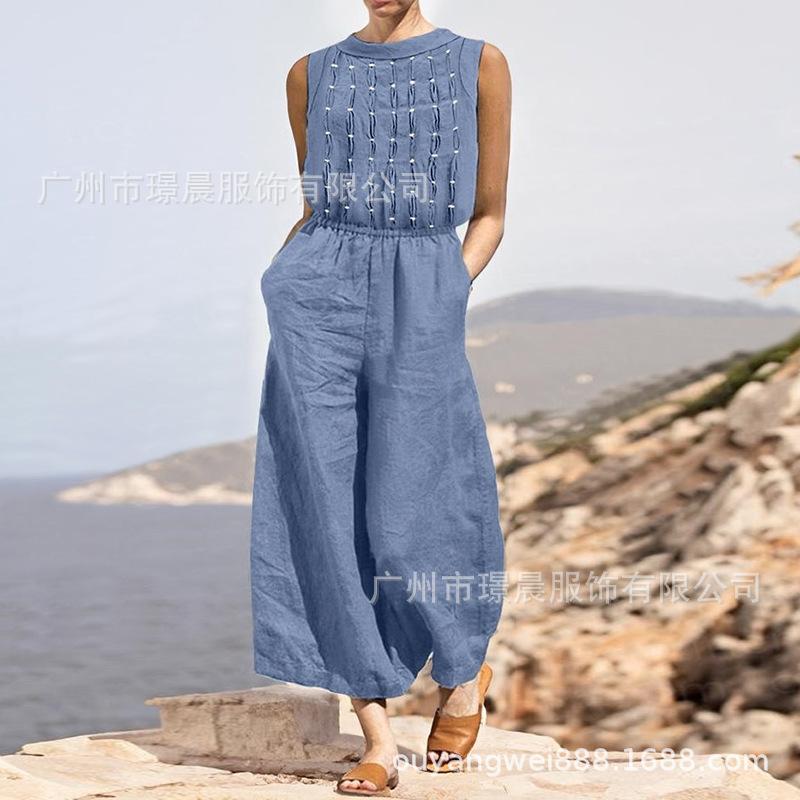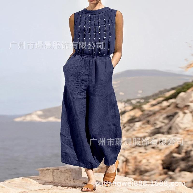 Amazon 2023 Verano Transfronterizo Nuevo Exportación Moda Ropa de Mujer al por Mayor Mono Elegante Sin Mangas con Cintura
