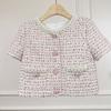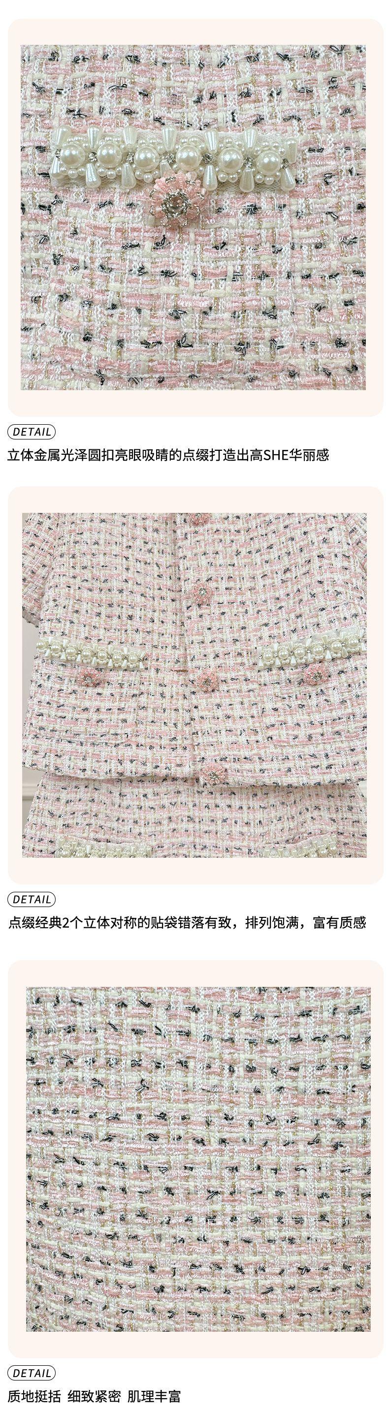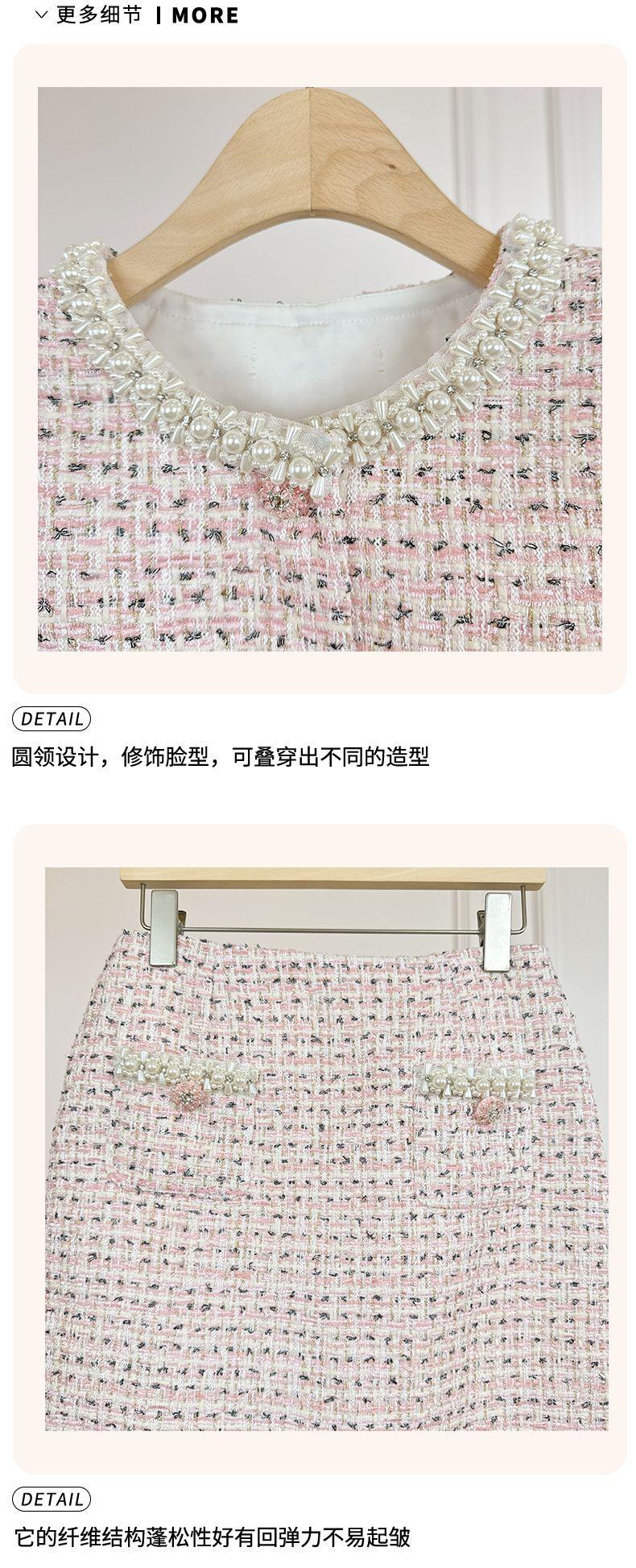 Francés 2025 Primavera Nuevo Estilo Chanel Tweed Cárdigan Corto de Tweed con Cuentas Conjunto Falda a la Cadera