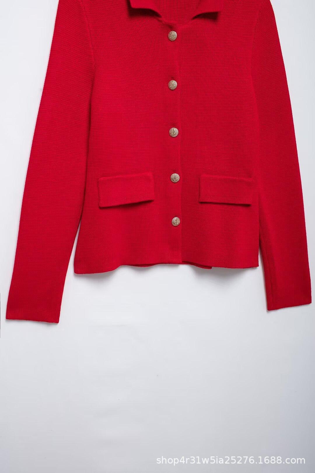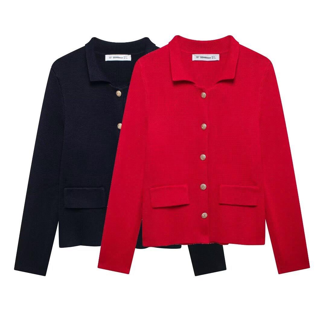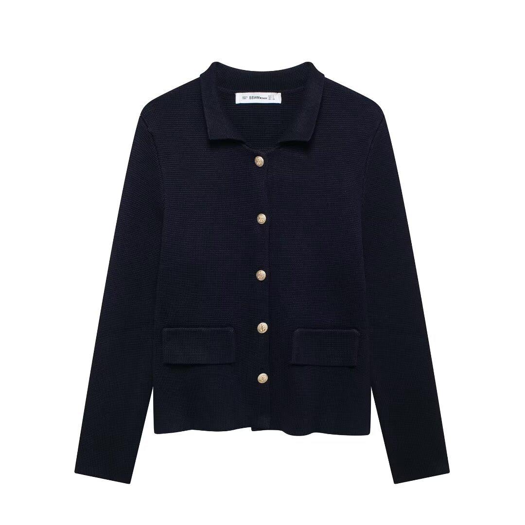 Estilo Europeo y Americano Amazon Venta al Por Mayor Transfronteriza 2024 Otoño Nueva Moda Casual Solapa Chaqueta Corta de Punto