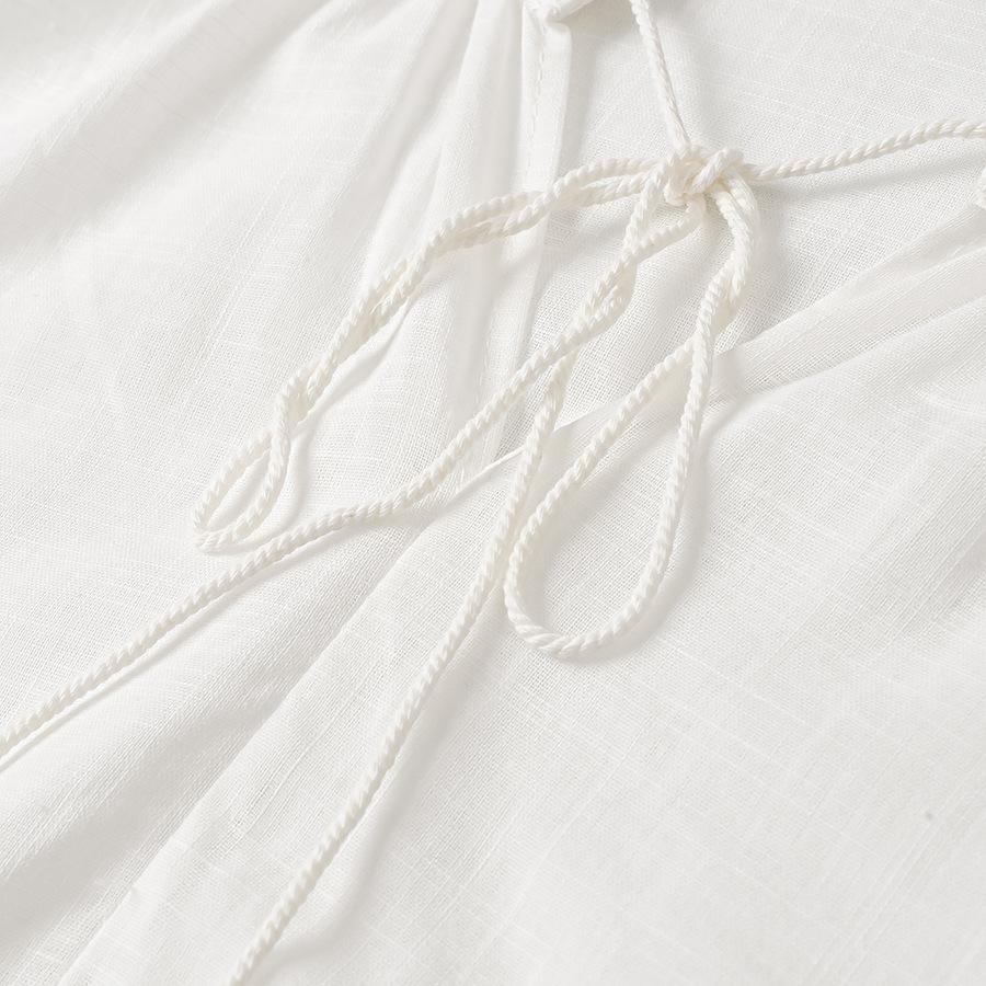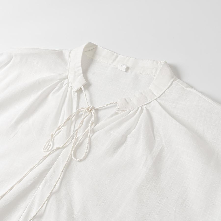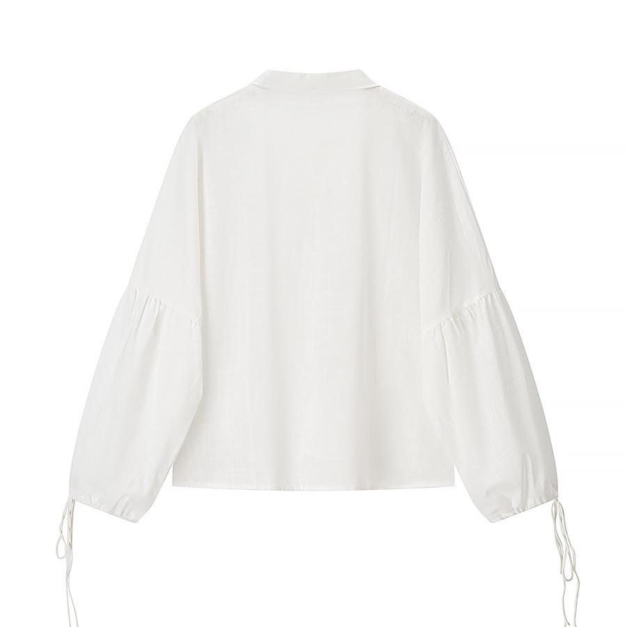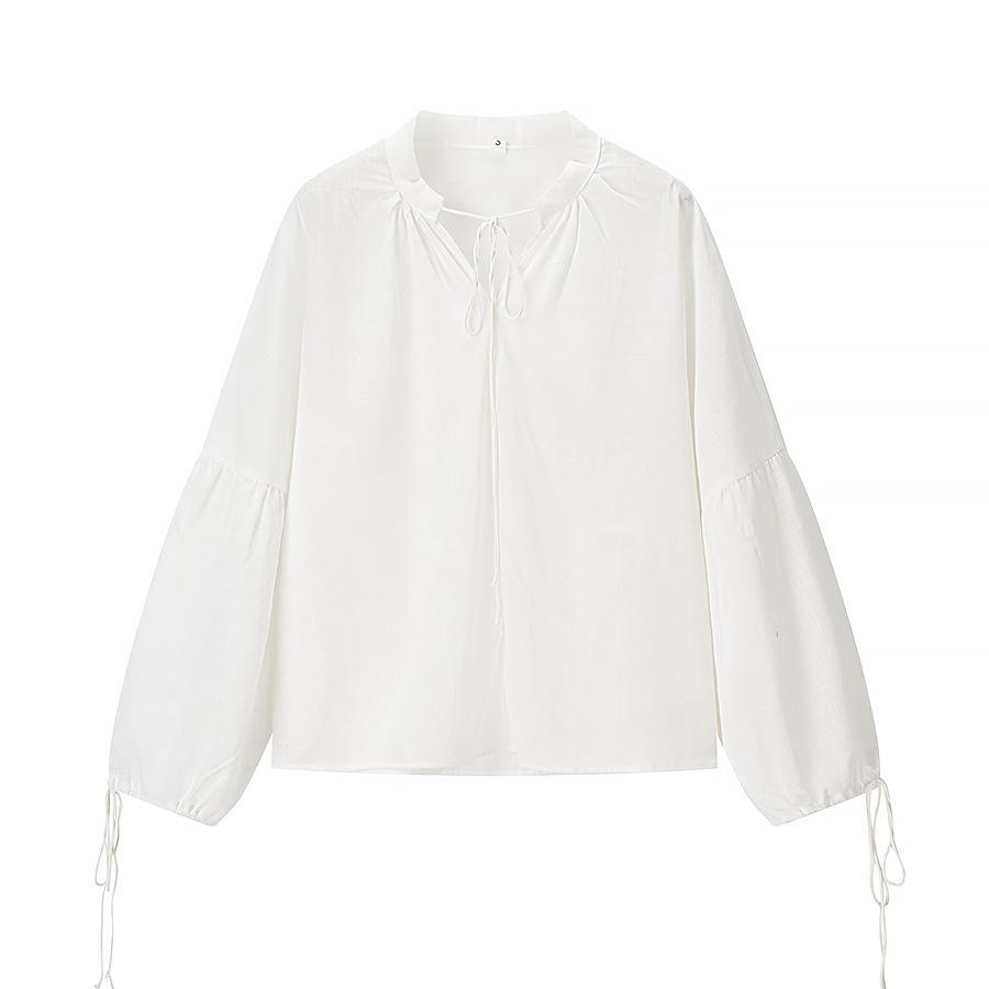 Exportación al por Mayor Transfronteriza Ropa de Mujer Verano 2025 Estilo Europeo y Americano Cuello en V Manga Larga Color Puro Camisa con Cordones Tops para Mujer C92647