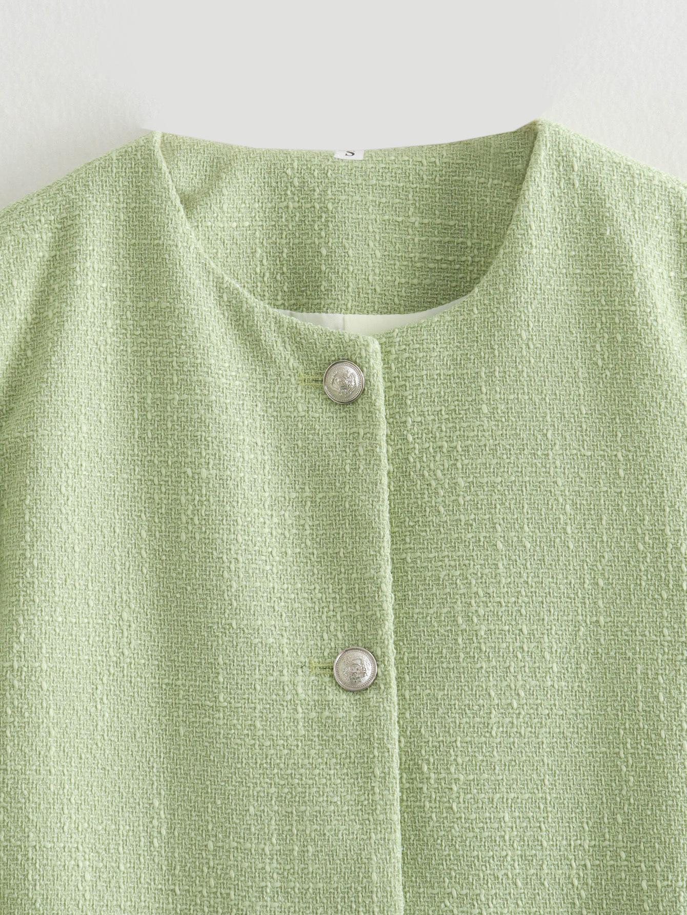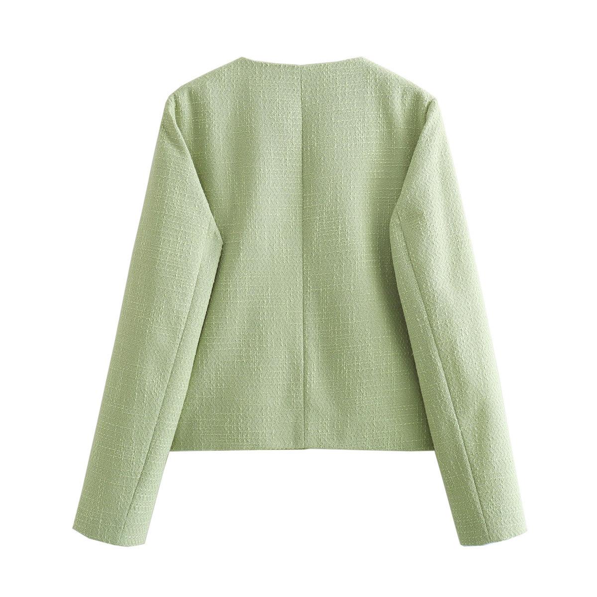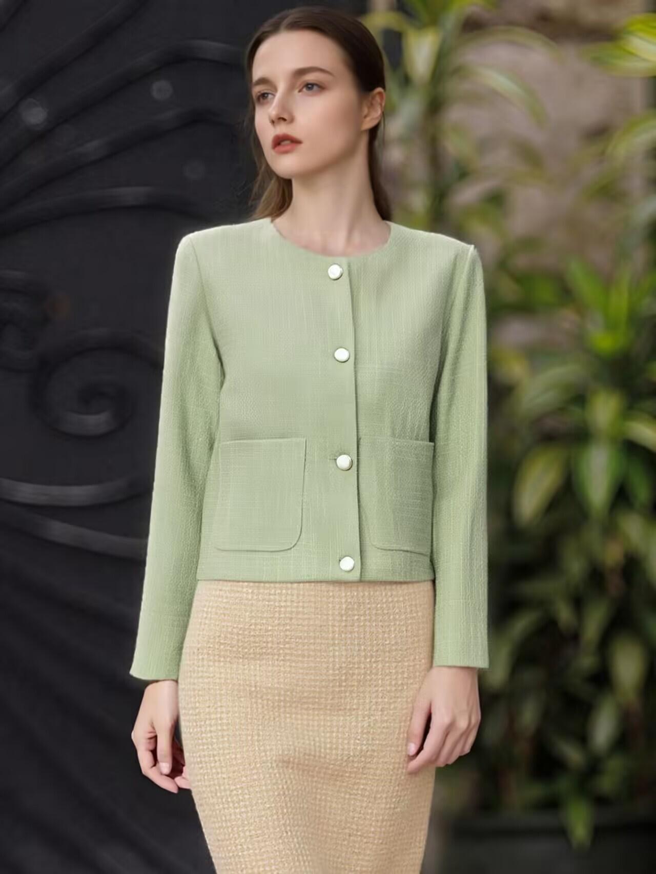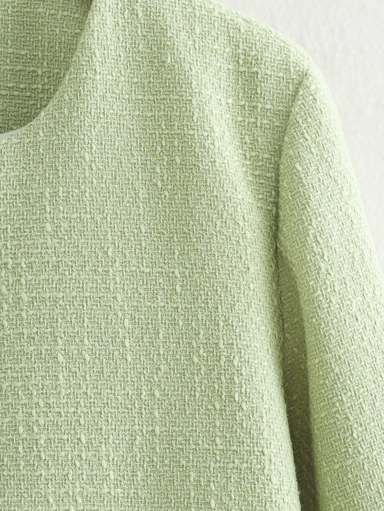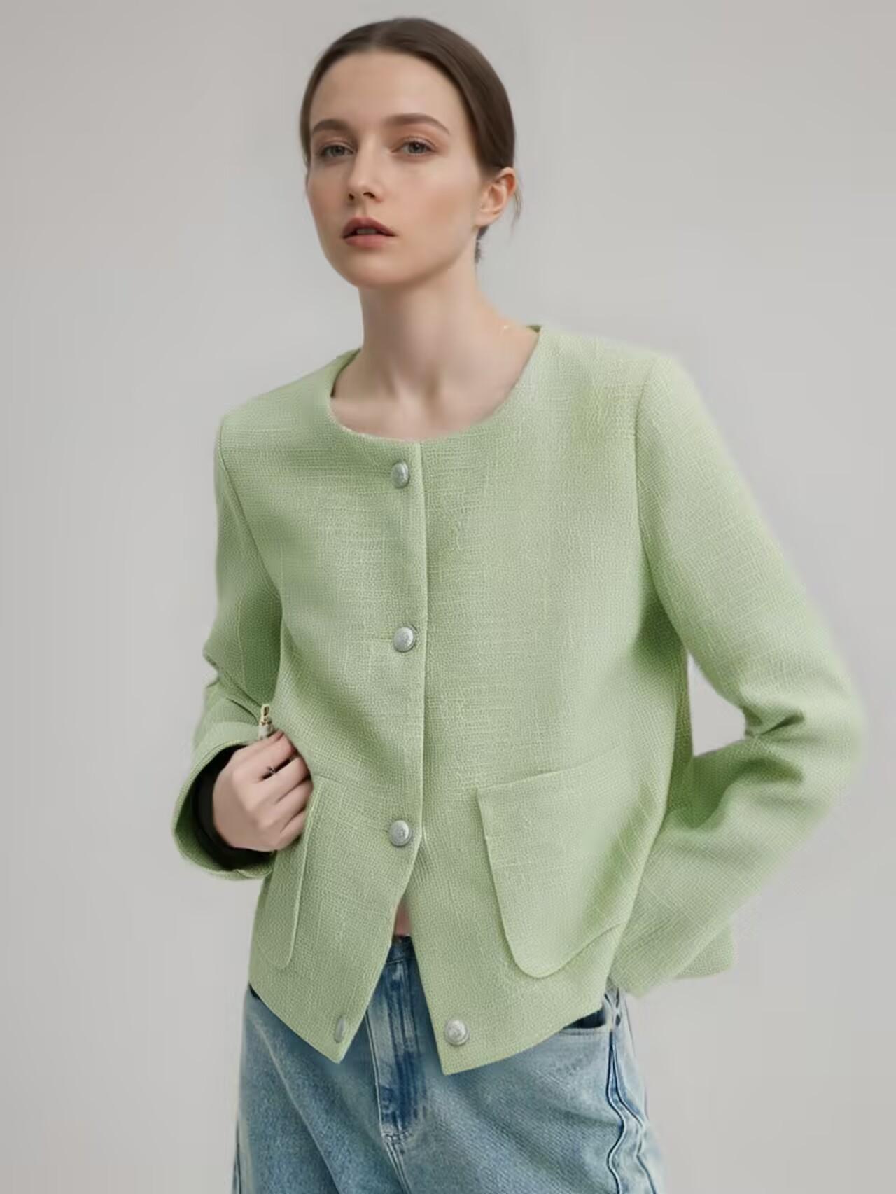 Ropa de Mujer Transfronteriza Europea y Americana 2025 Verano Nuevo Estilo Moda Elegante Color Puro Lana Pequeña Fragancia Chaqueta Corta
