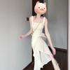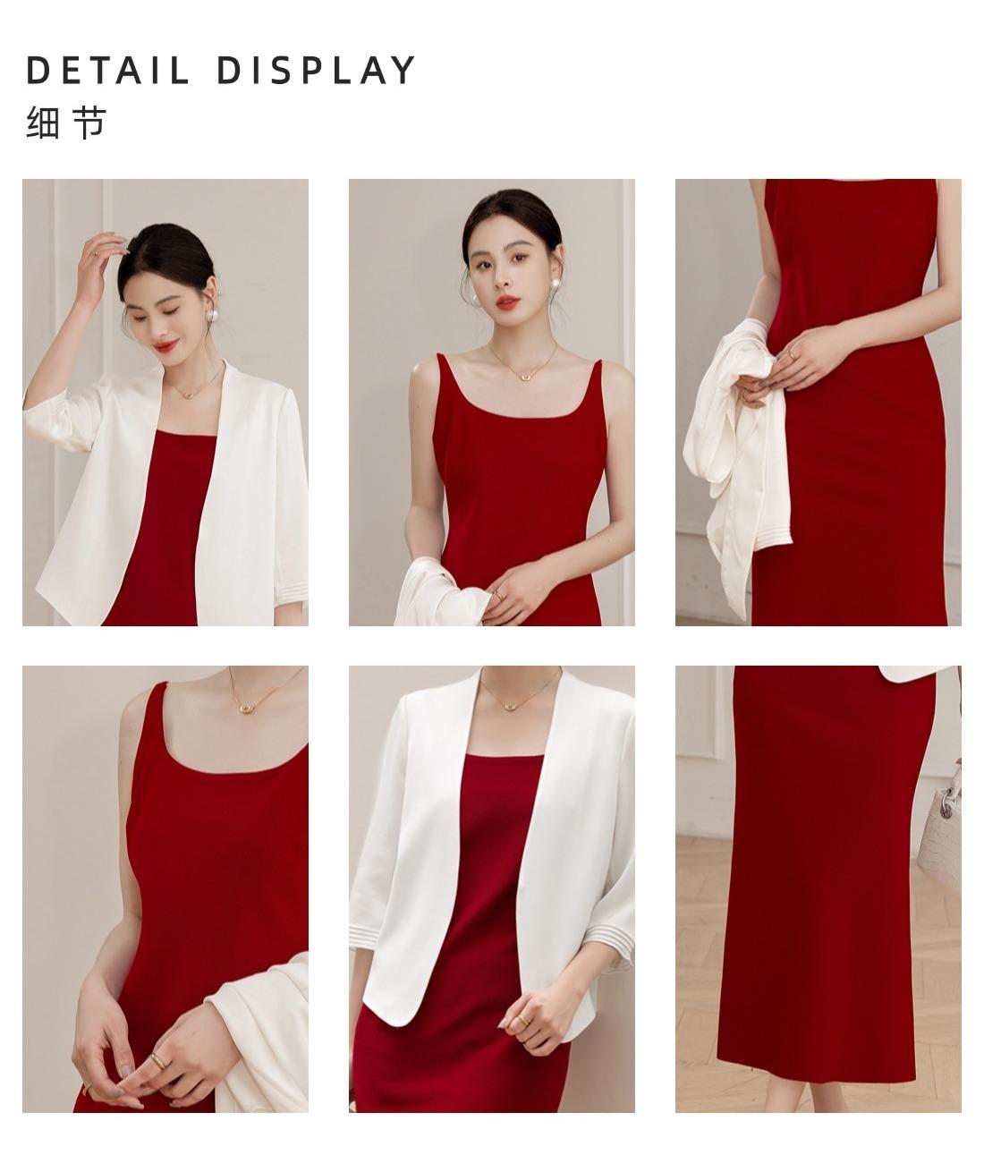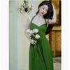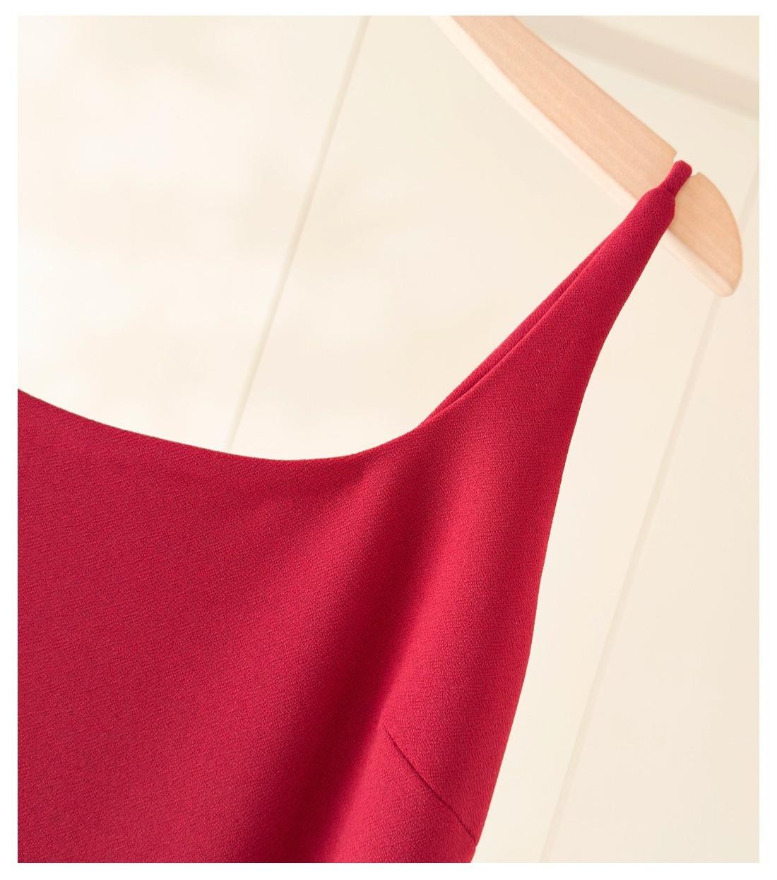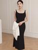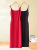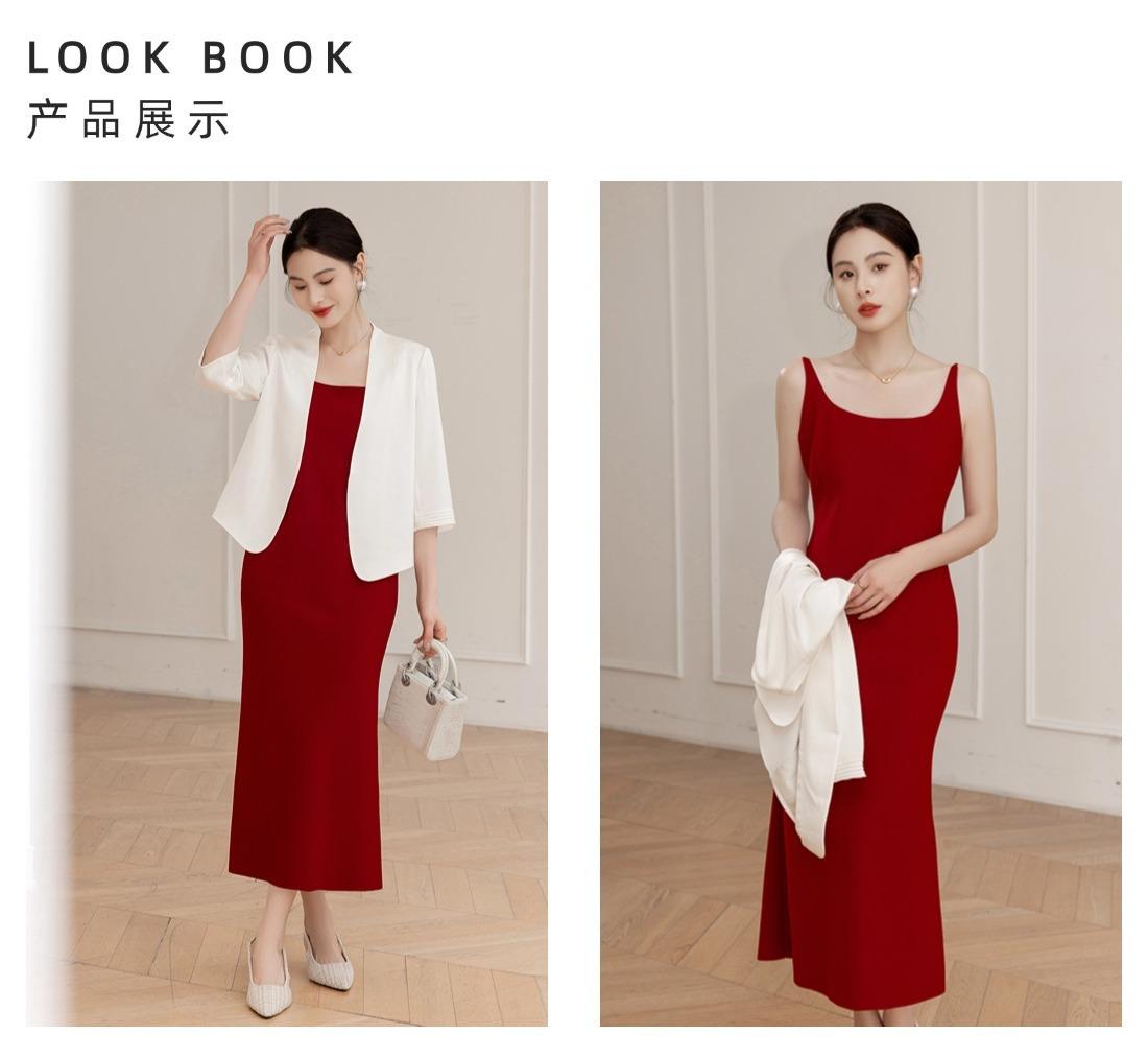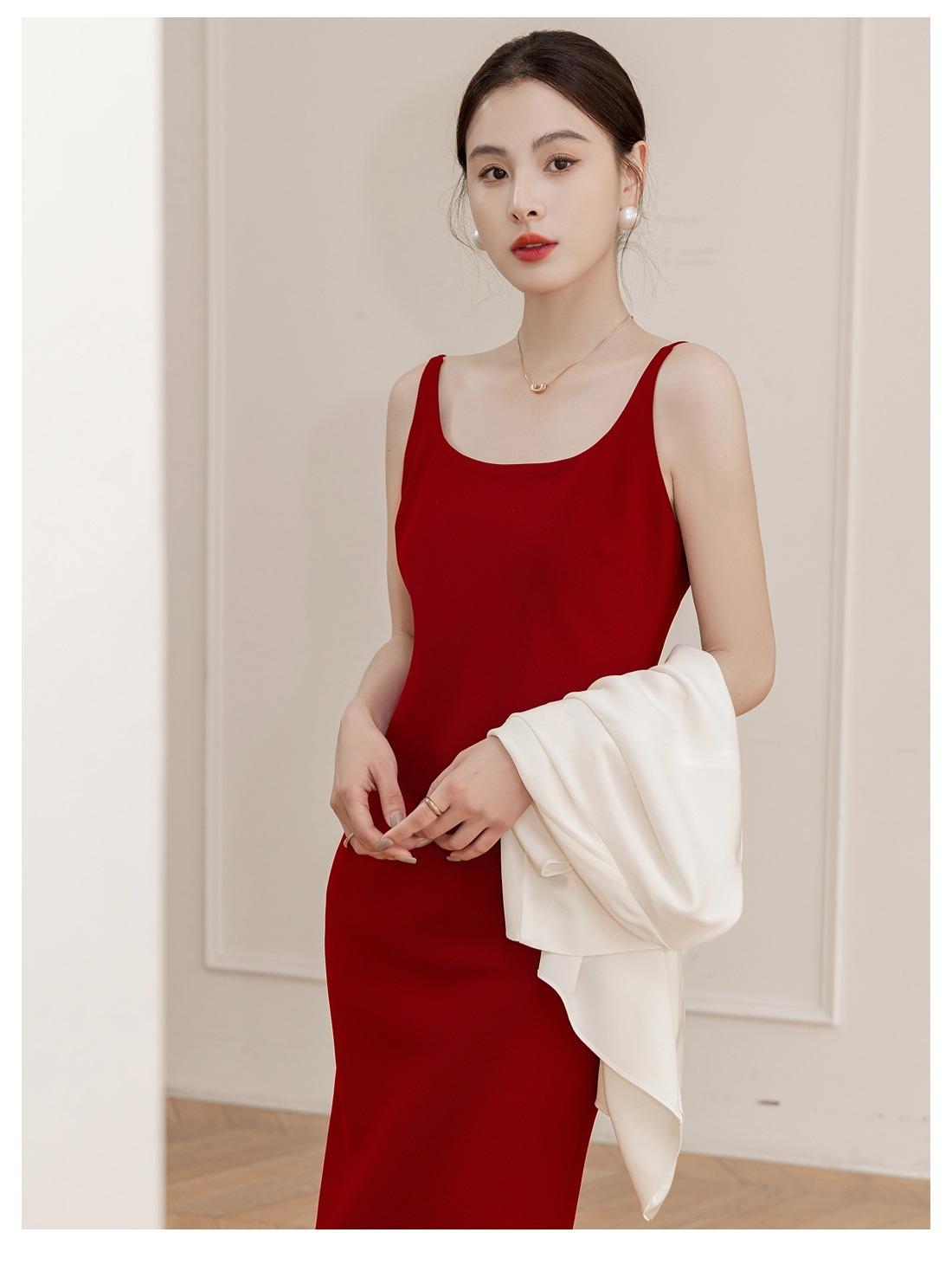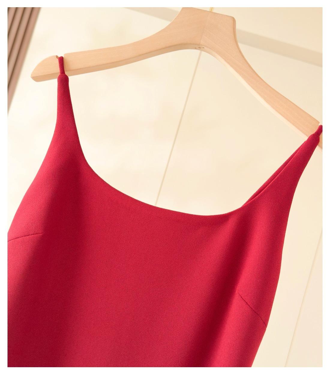 Vestido largo Endy de cuello cuadrado francés, elegante, ajustado, de tirantes, para primavera y verano, elástico, retro, rojo, de cola de pez