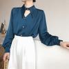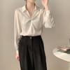 Ropa de Verano para Mujer 2022 Nuevo Estilo Francés Retro Cuello Bolsillo Color Sólido Textura Satén de Seda Camisa Casual