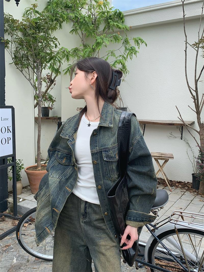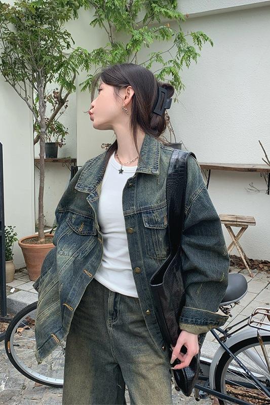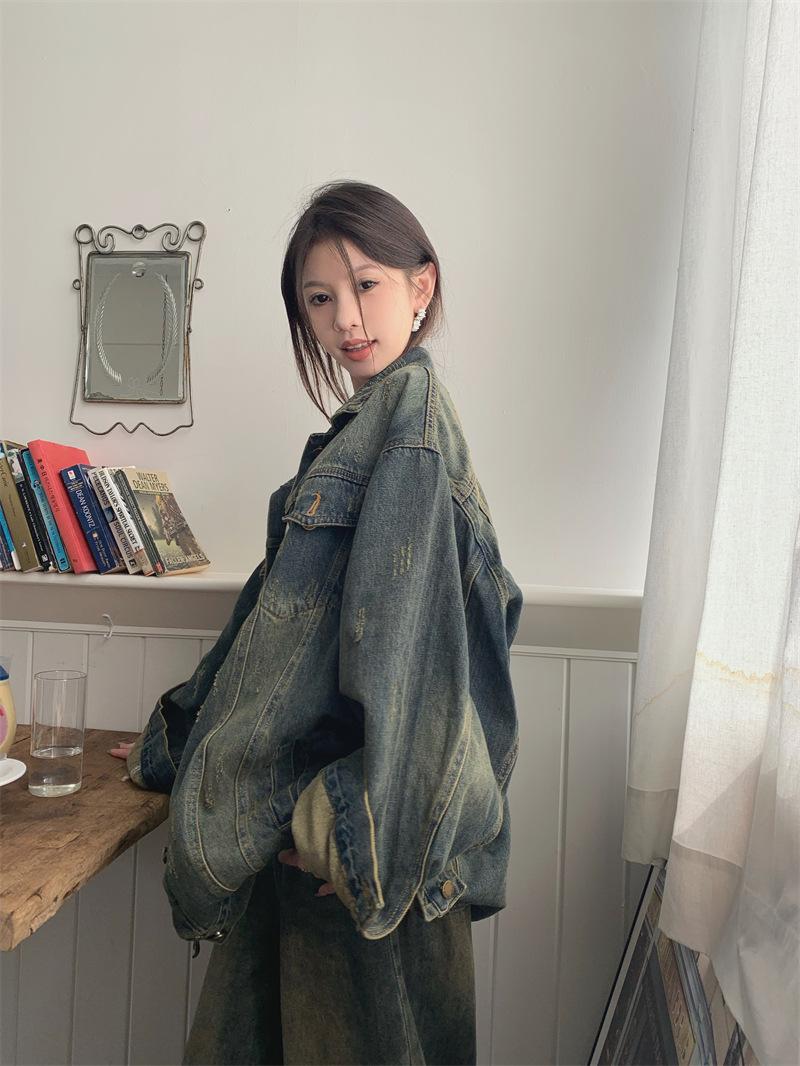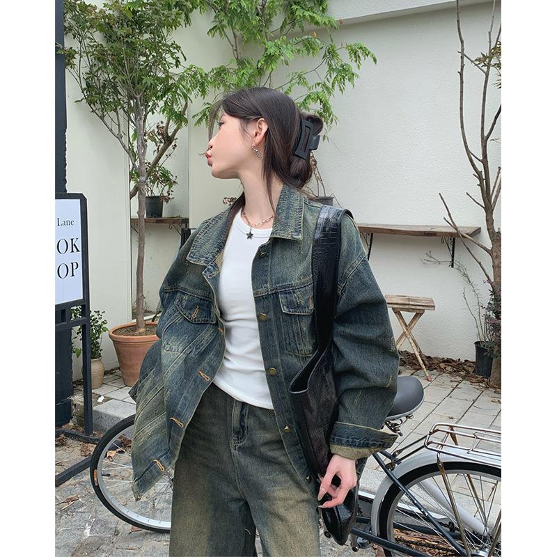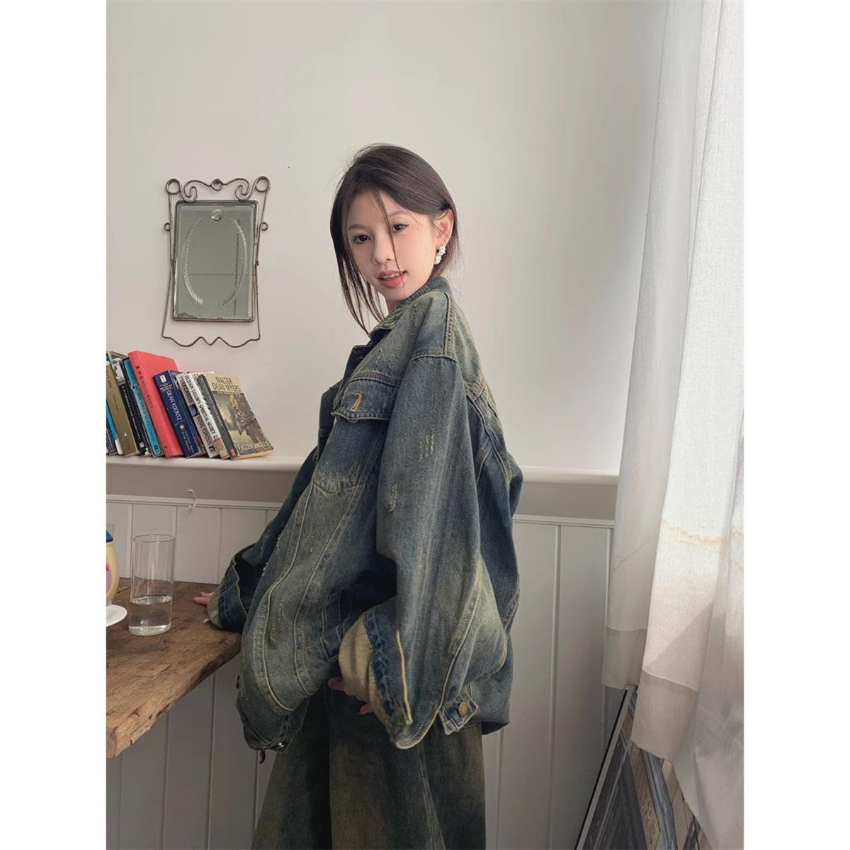 Abrigo de mezclilla desgastado para mujer Primavera y Otoño Nuevo 2023 estilo coreano suelto holgado elegante chaqueta moderna top ins