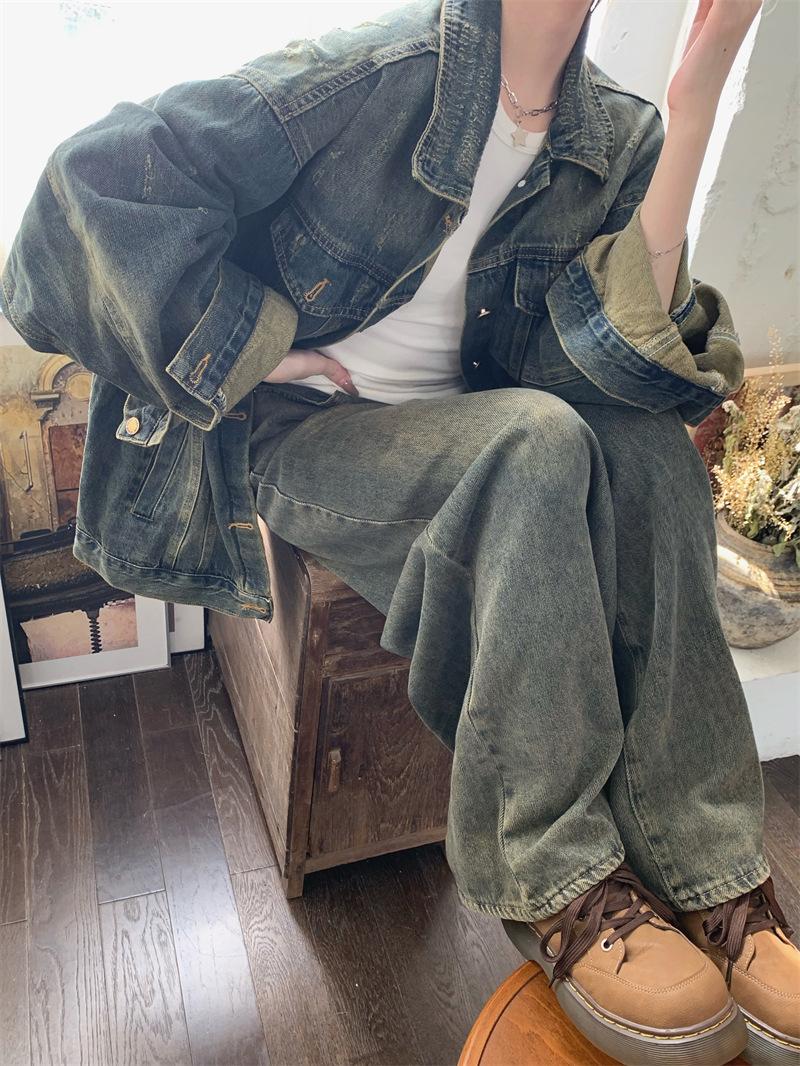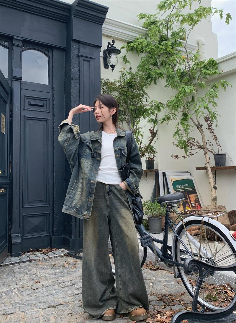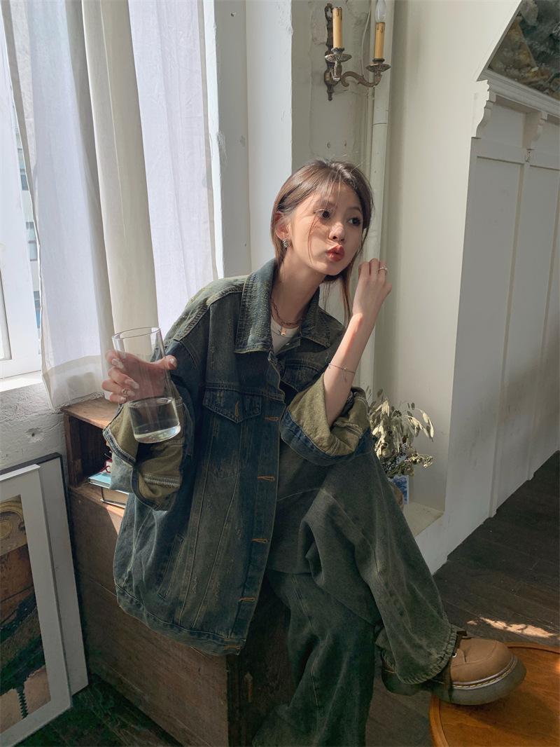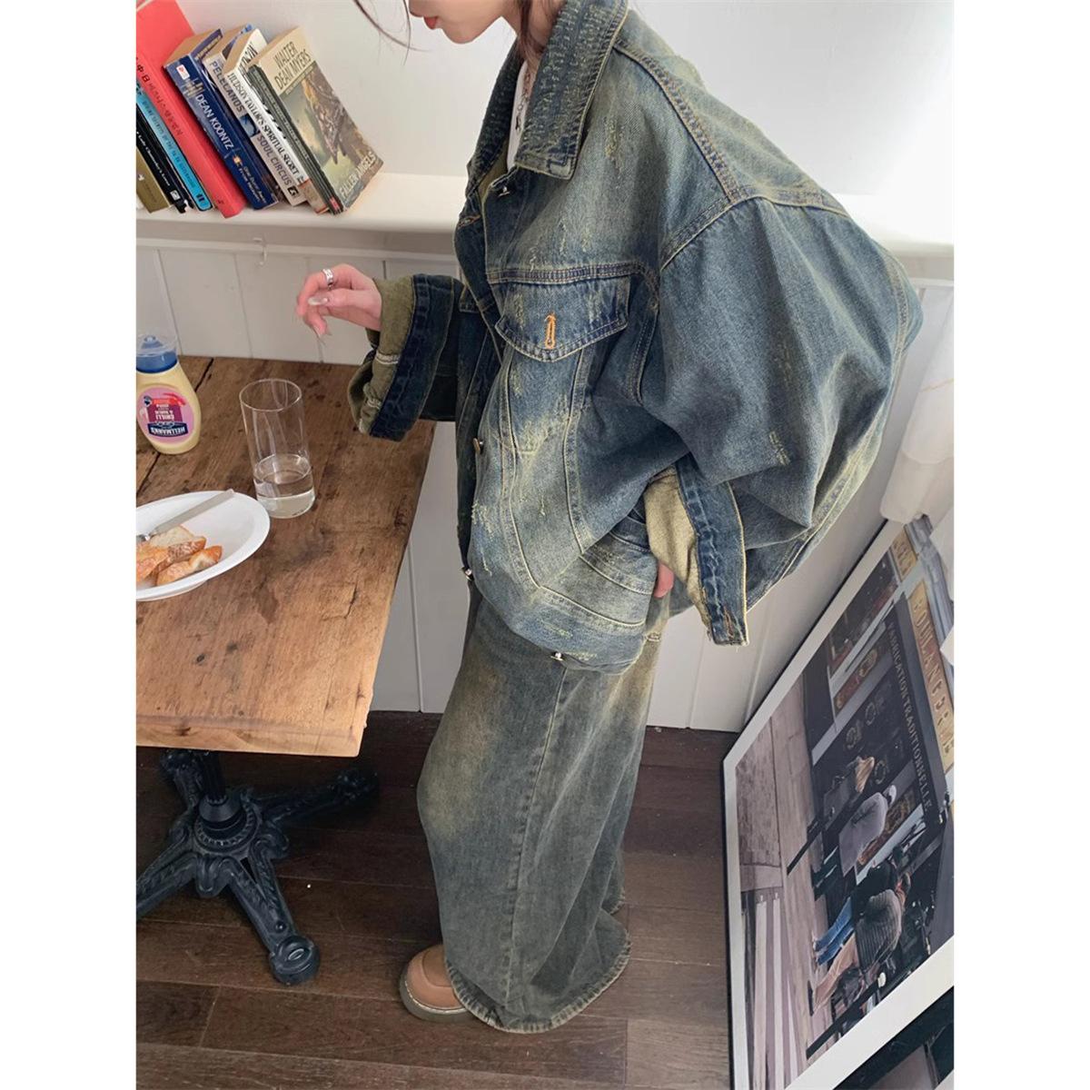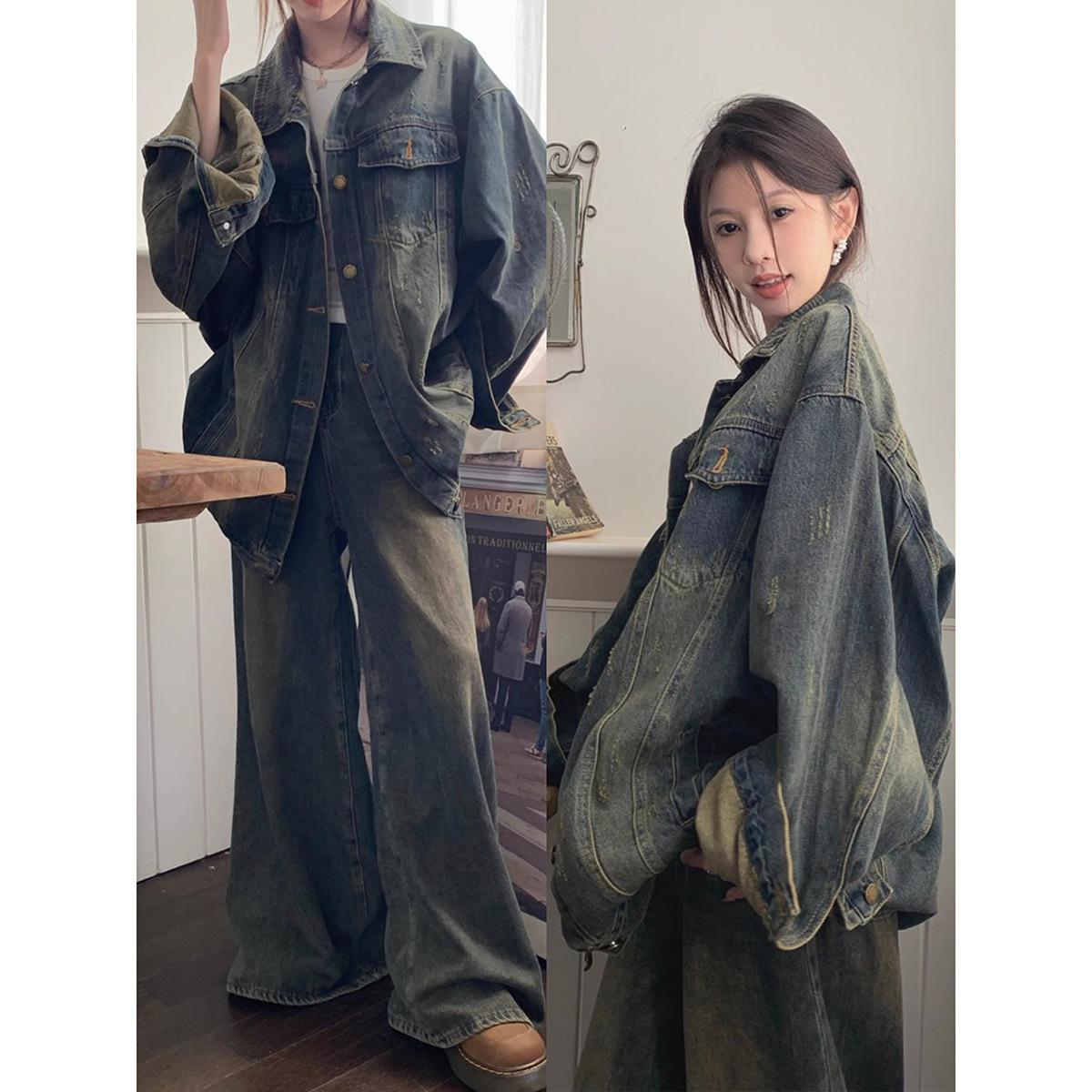 Abrigo de mezclilla desgastado para mujer Primavera y Otoño Nuevo 2023 estilo coreano suelto holgado elegante chaqueta moderna top ins