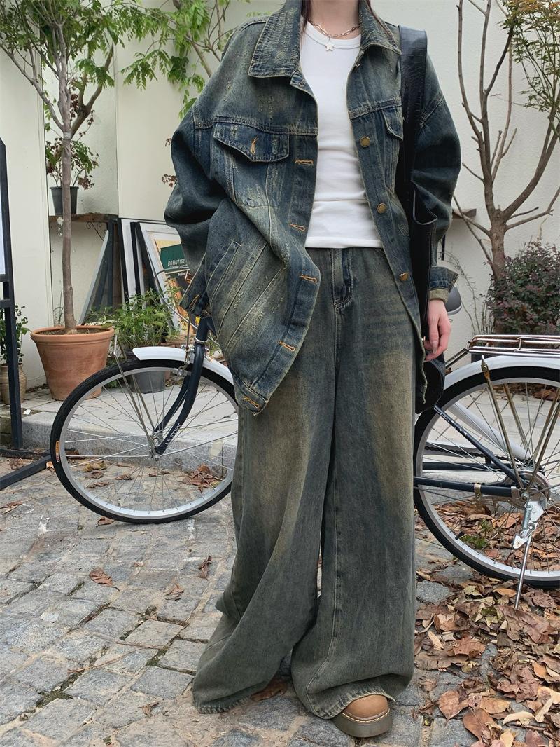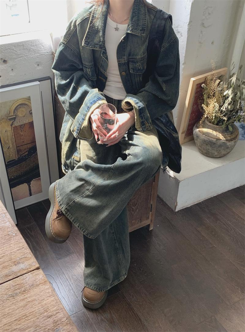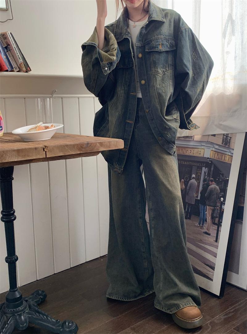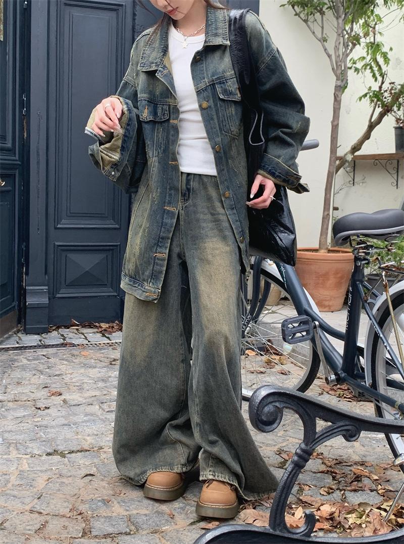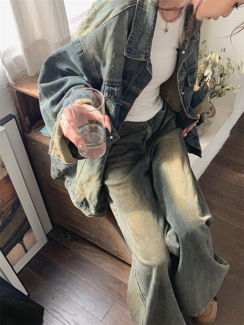 Abrigo de mezclilla desgastado para mujer Primavera y Otoño Nuevo 2023 estilo coreano suelto holgado elegante chaqueta moderna top ins