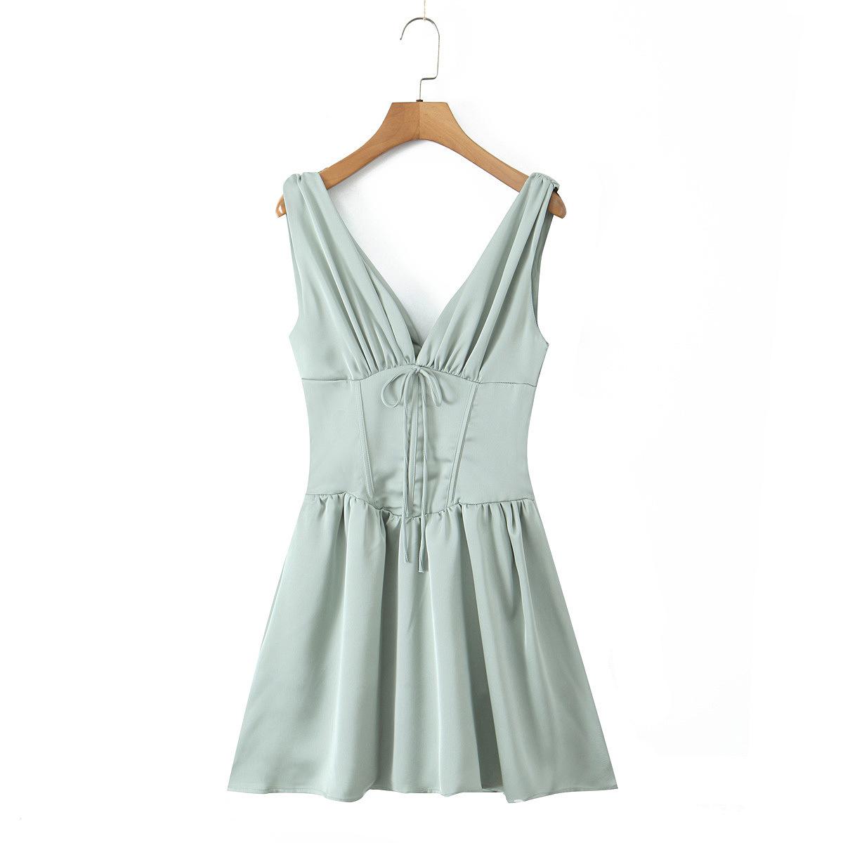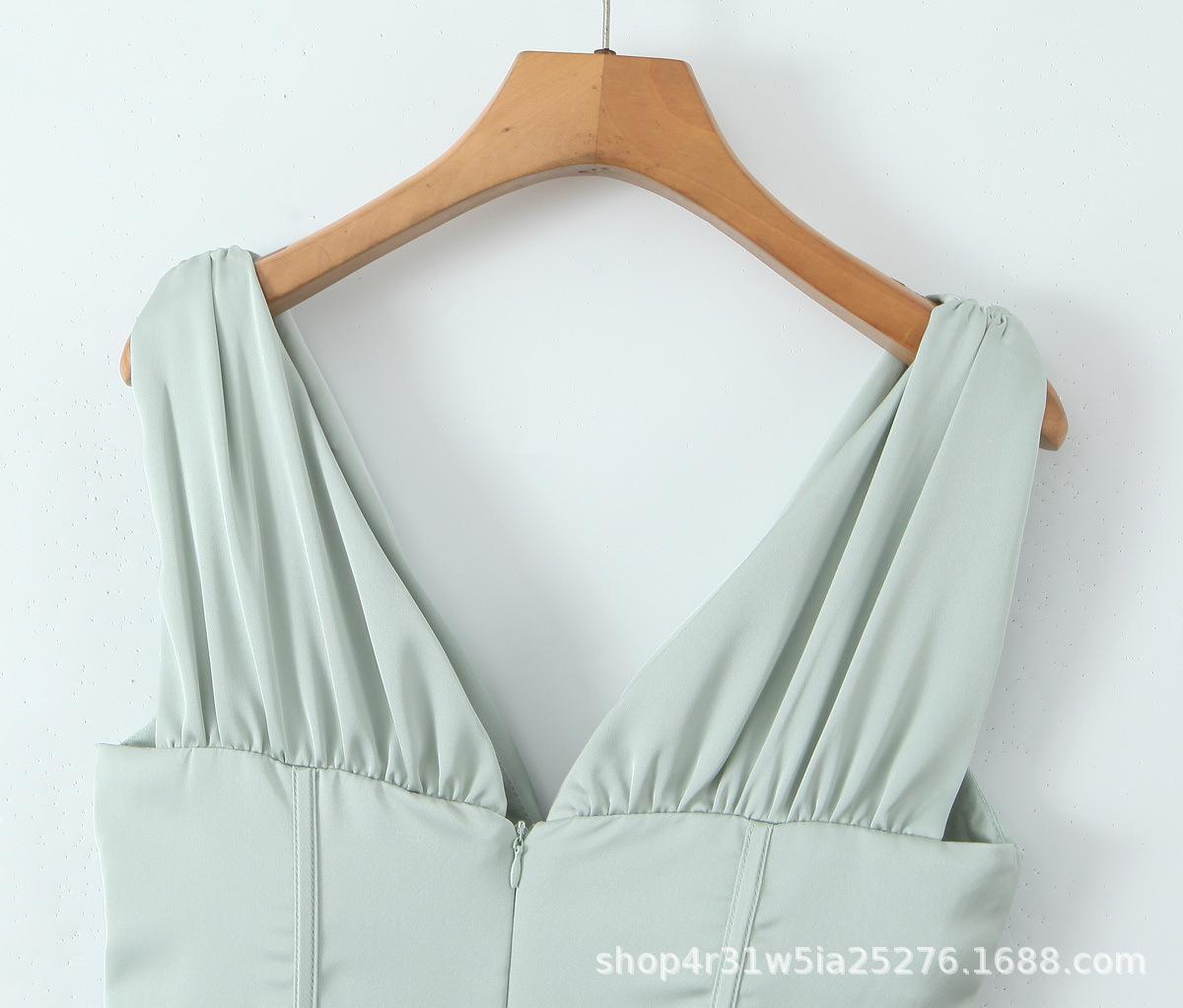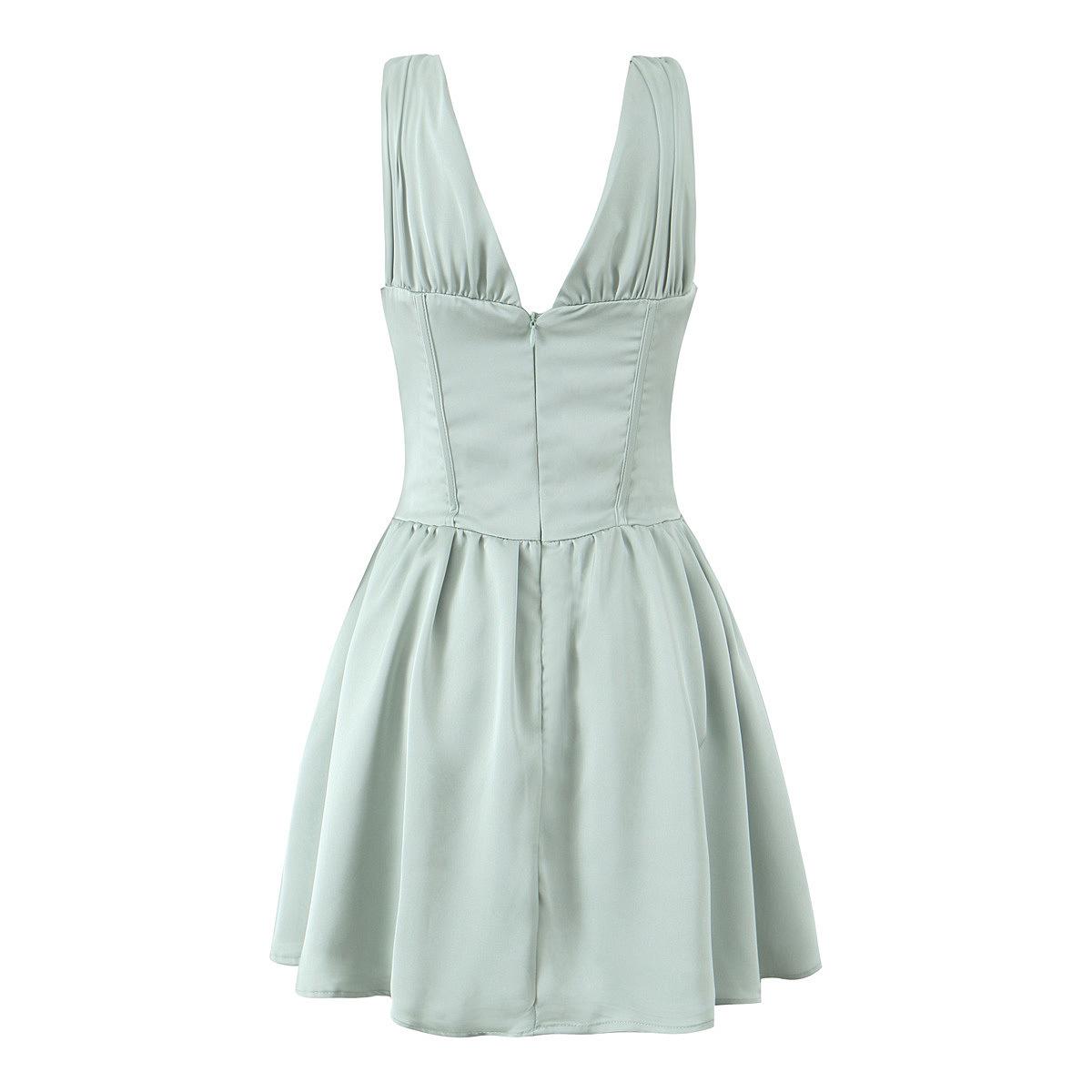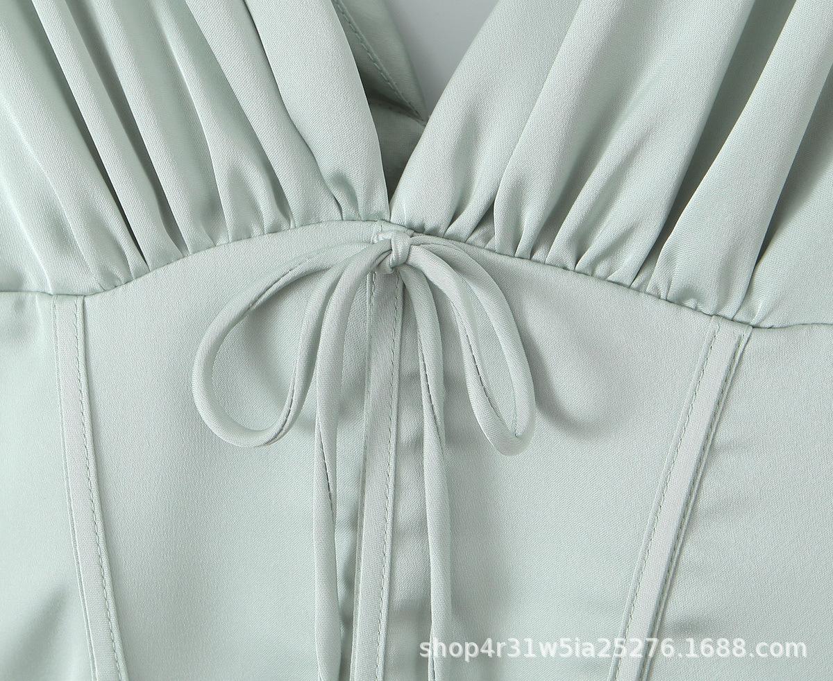 Estilo Europeo y Americano 2024 Nuevo Vestido Sexy Ajustado con Cuello en V Profundo y Lazo, Cintura con Ballenas