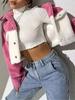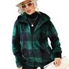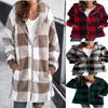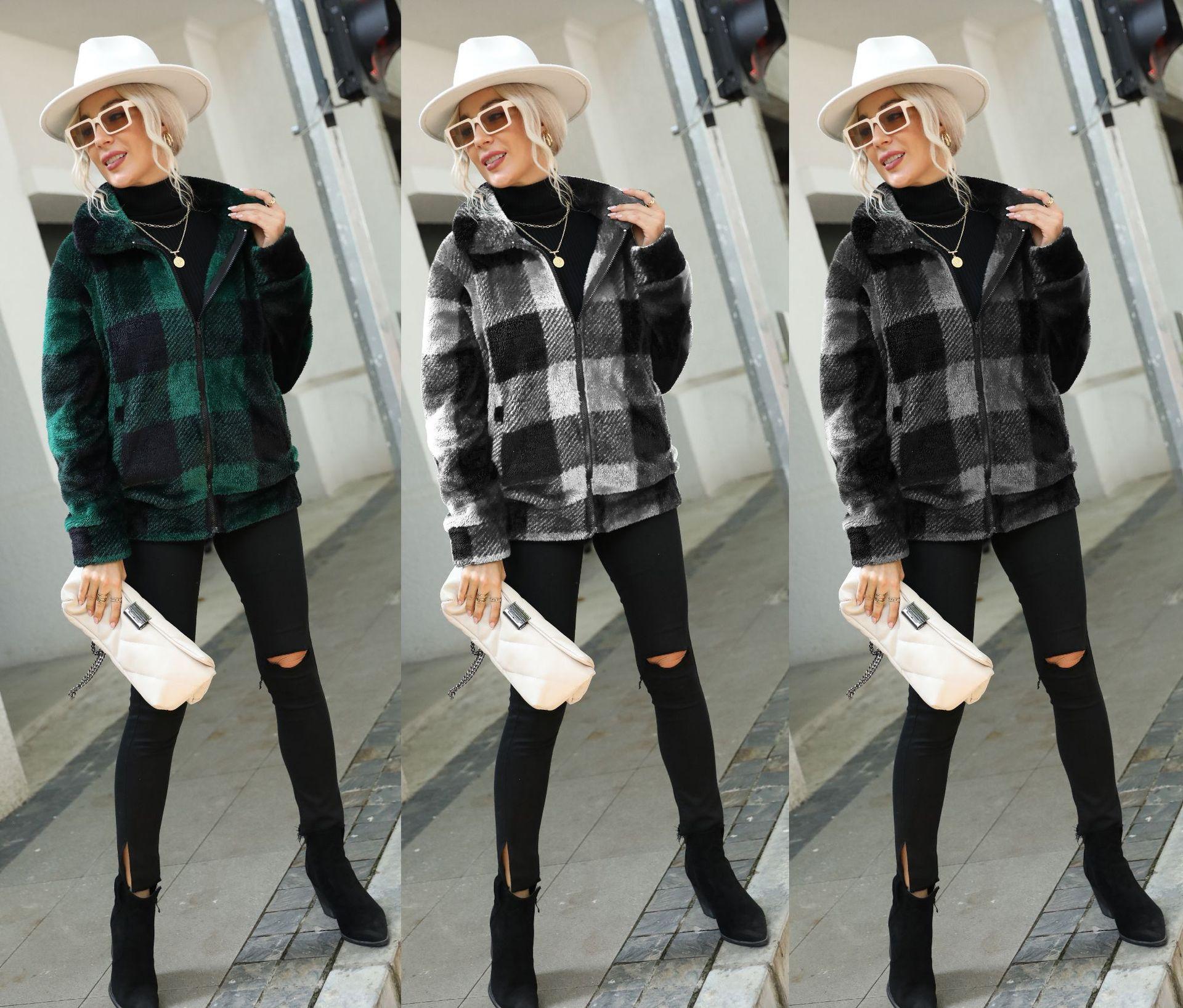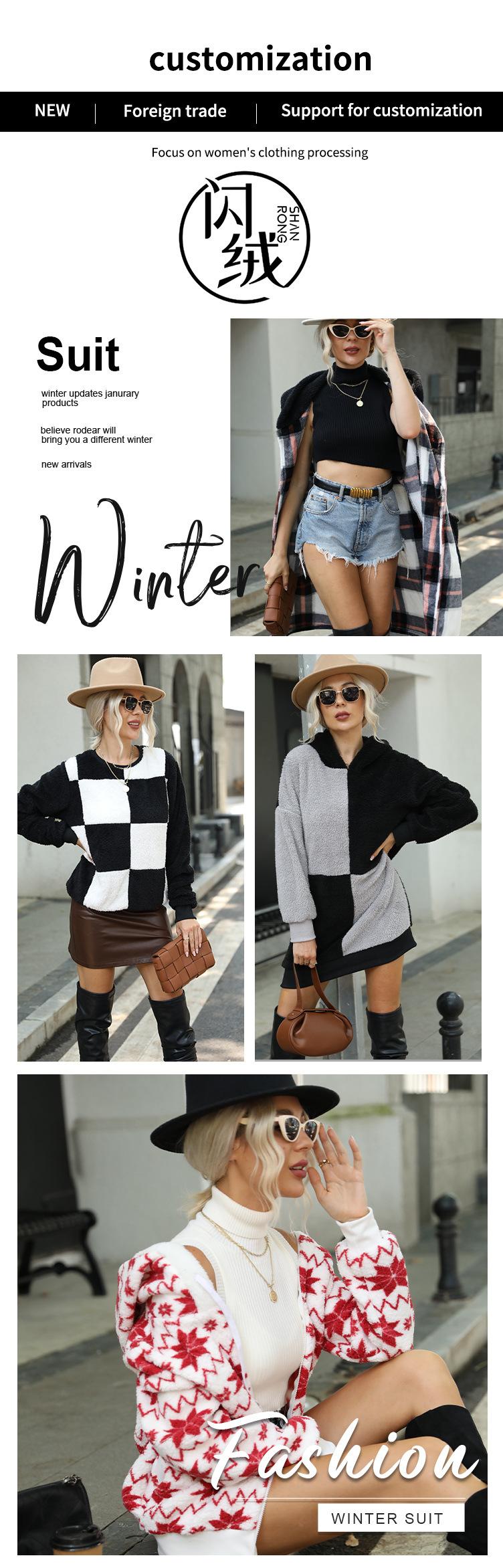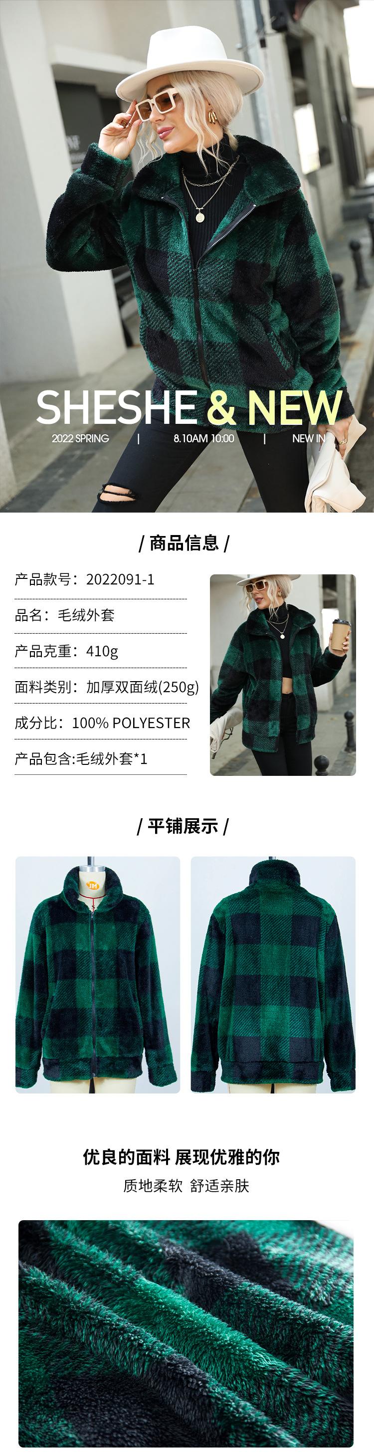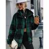 Chaqueta de Felpa de Doble Cara para Mujer de Otoño e Invierno con Solapa Suelta de Manga Larga con Cierre de Cremallera y Estampado de Cuadros Personalizada para Exportación Transfronteriza Europea y Americana