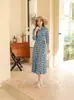 Vestido Cruzado Camisero Retro Francés con Solapa Verano Nuevo Estampado de Cadena Azul Elegante Vestido Largo