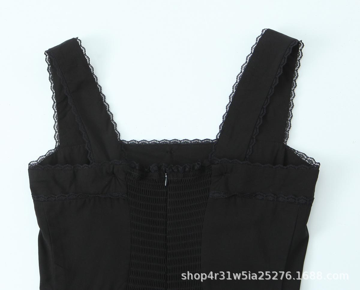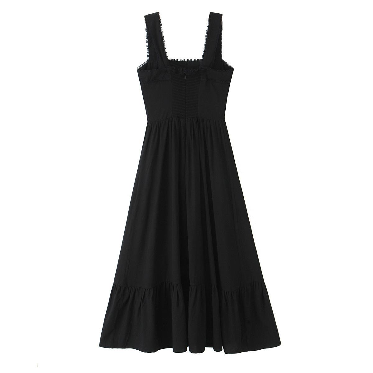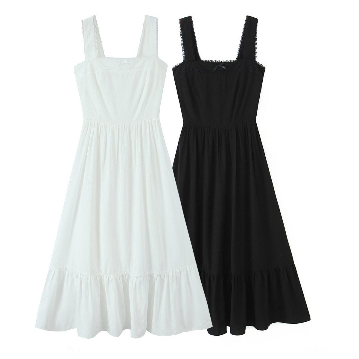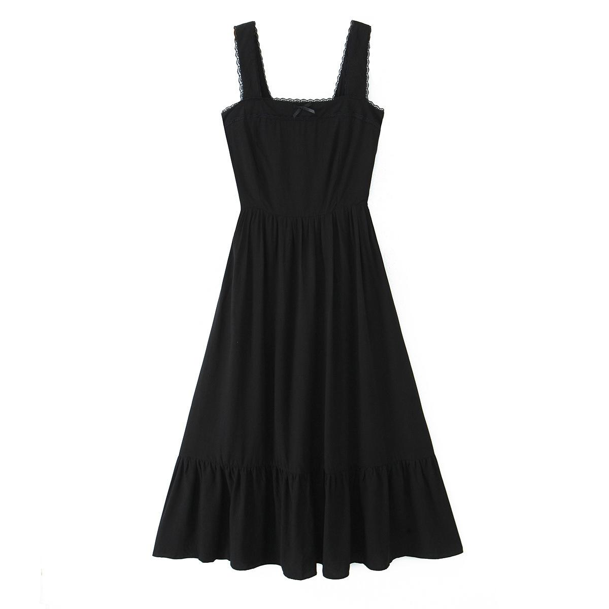 Amazon Aliexpress Transfronterizo 2025 Retro Color Puro Cuello Cuadrado Falda Larga Vestido de Encaje Adornado con Lazo