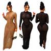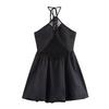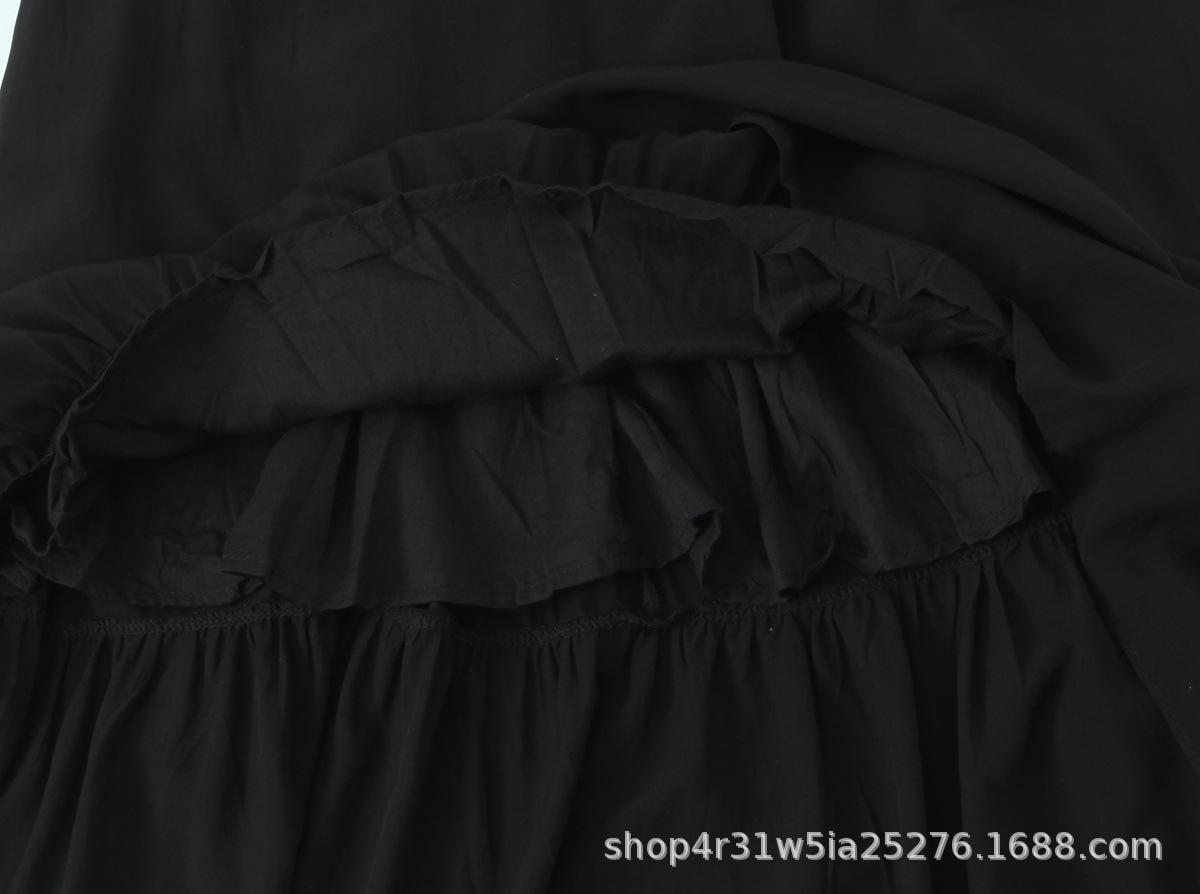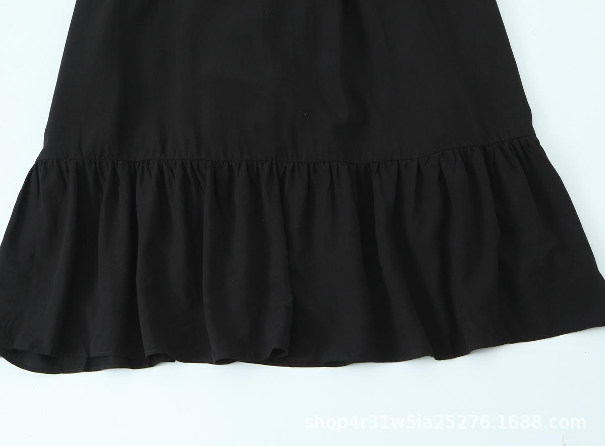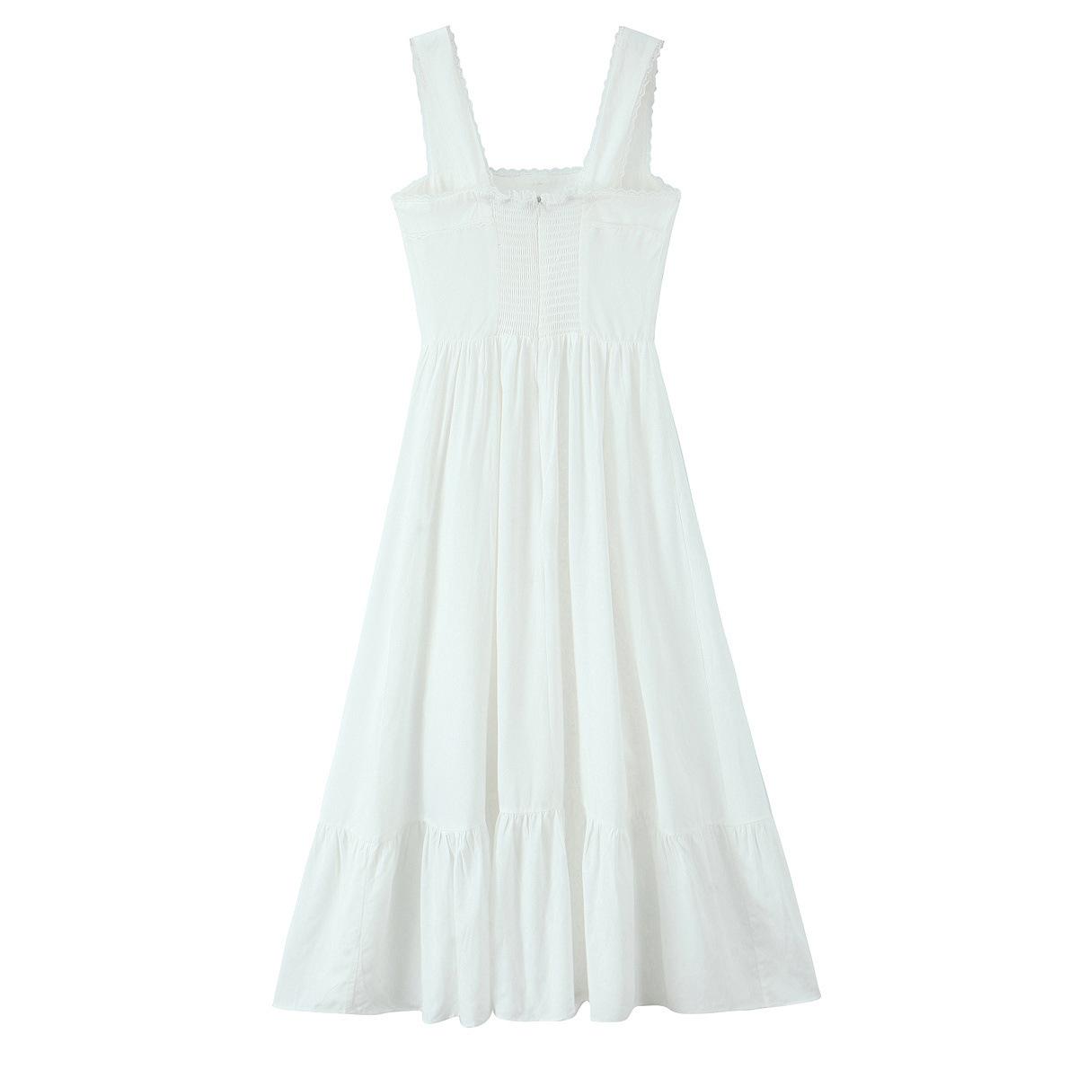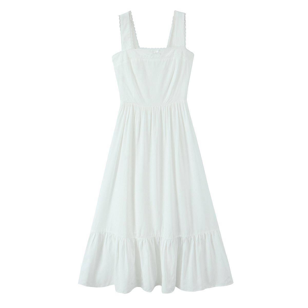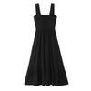 Amazon Aliexpress Transfronterizo 2025 Retro Color Puro Cuello Cuadrado Falda Larga Vestido de Encaje Adornado con Lazo