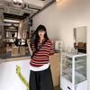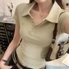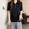 Camiseta de Manga Corta con Cuello POLO Estilo Americano de Tiro Real para Mujer Verano Nueva Ajustada Adelgazante Estilo Coreano Diseño con Botones Top