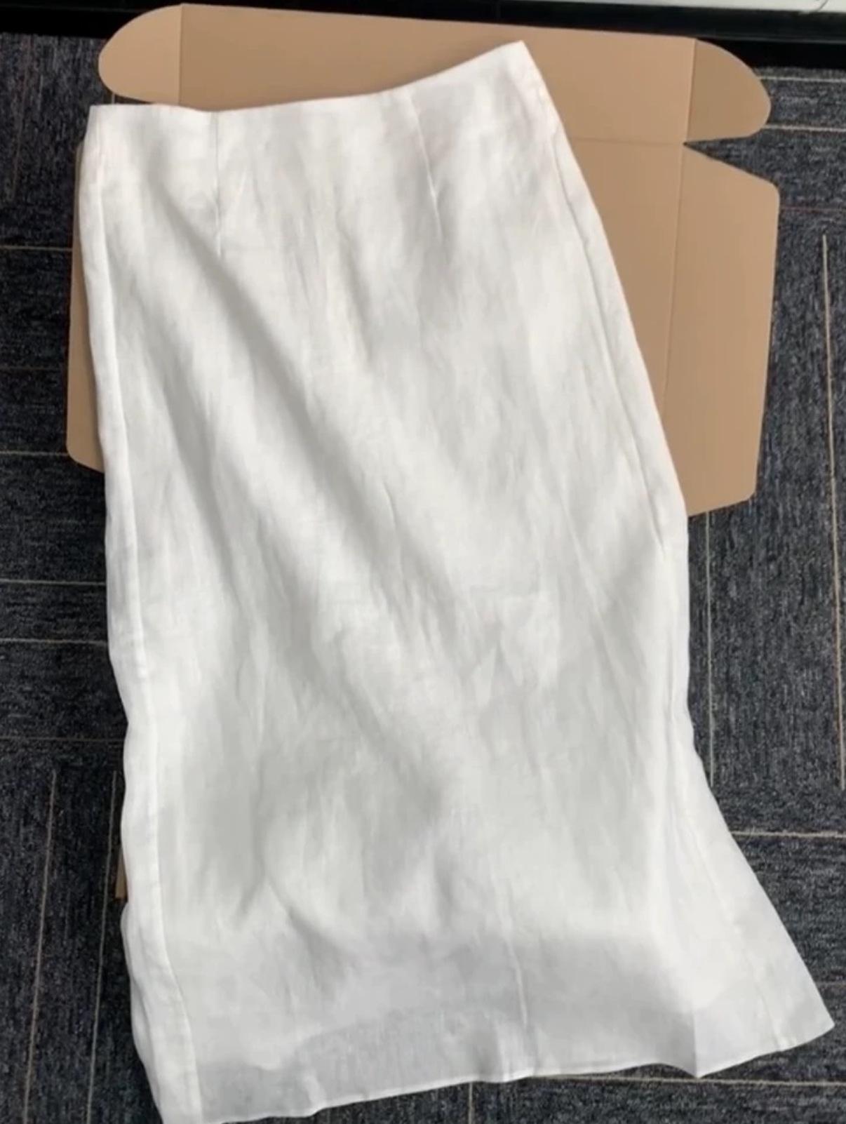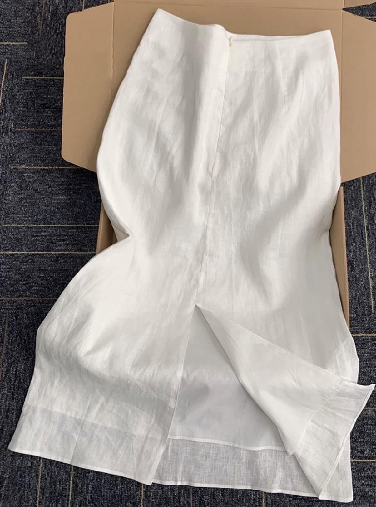 Falda de Lino Algodón Tencel Blanco de Alta Calidad para Mujer Verano 2025 Nueva Falda Larga con Abertura de Ramio de Cintura Alta