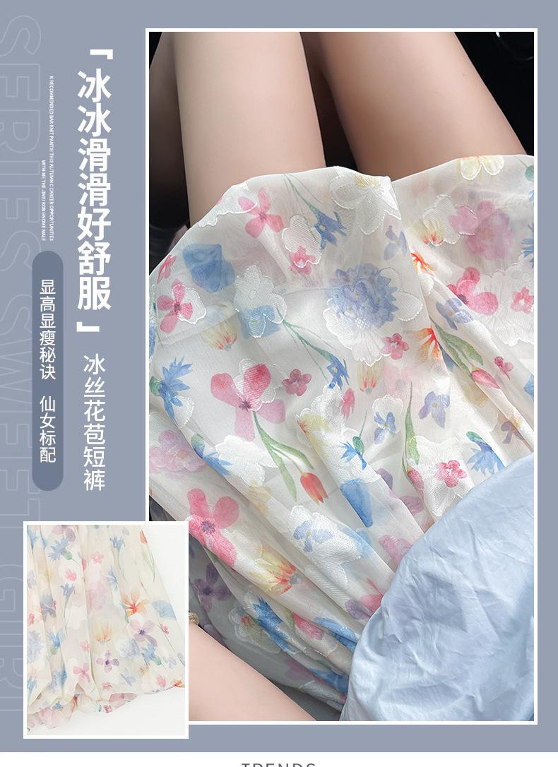 Falda Floral de Capullo para Mujer 2025 Nueva Falda Corta Verano Delgada Seda Helada Cintura Alta Aspecto Adelgazante Falda Casual Pequeña Colorida