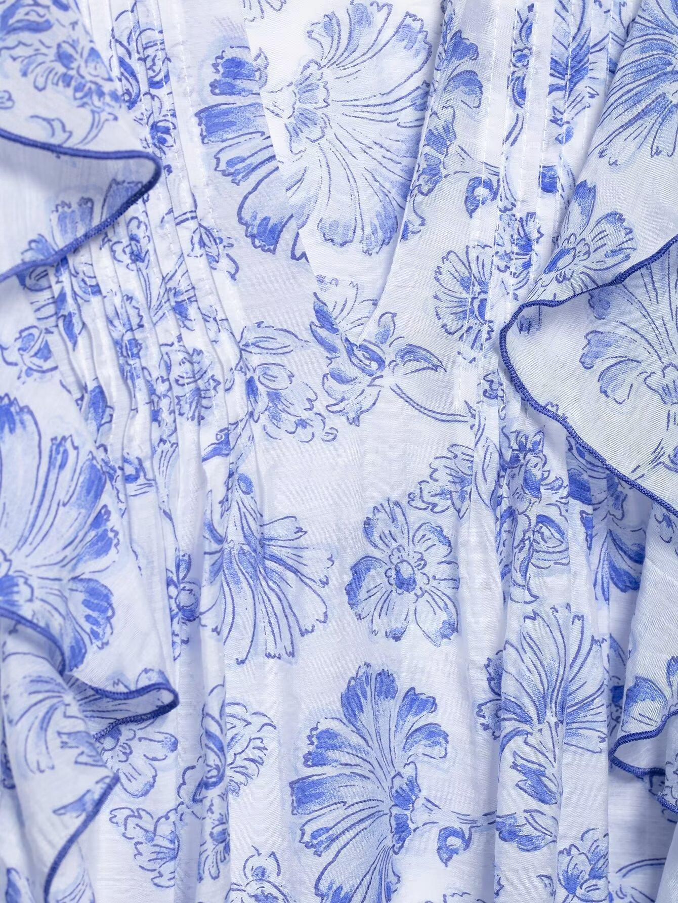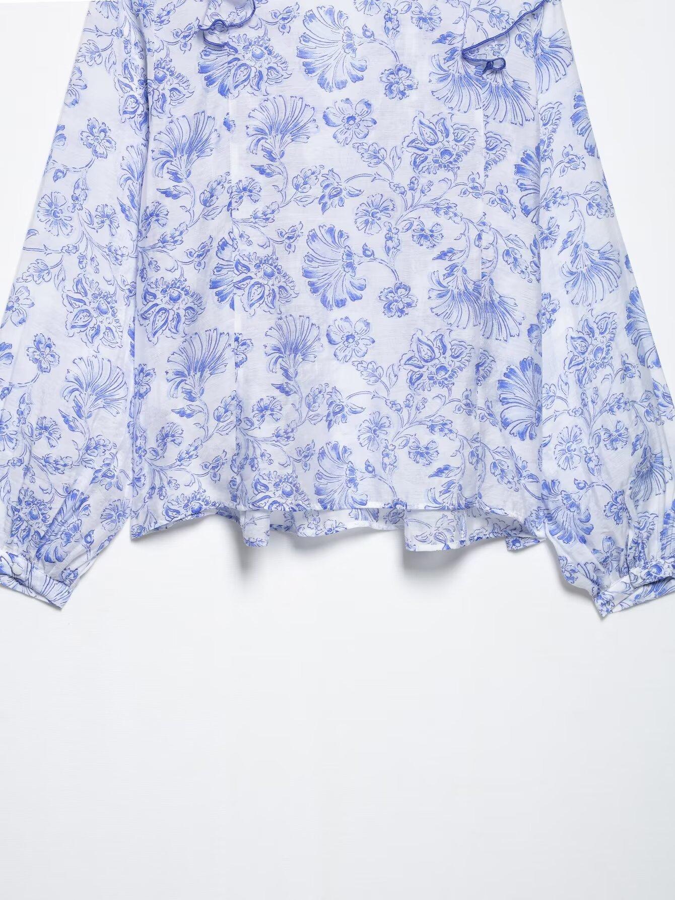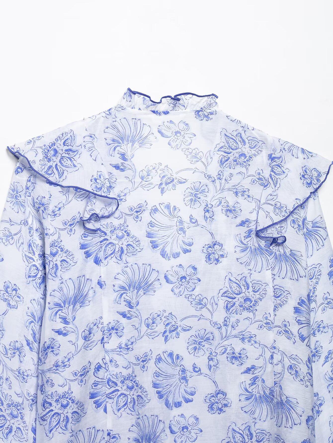Ropa Europea y Americana Transfronteriza 2025 Primavera Nueva Moda Camisa Decorativa Estampada con Volantes y Capas 5029089