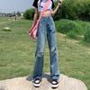 Jeans Verano Mujer Nuevo Estilo Diseño Roto Suelto Estilo Hong Kong Cintura Alta Slim Recto Pierna Ancha Pantalones Largos Trendy
