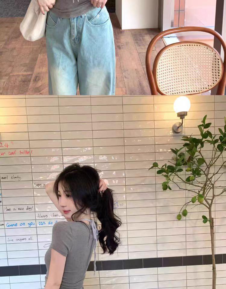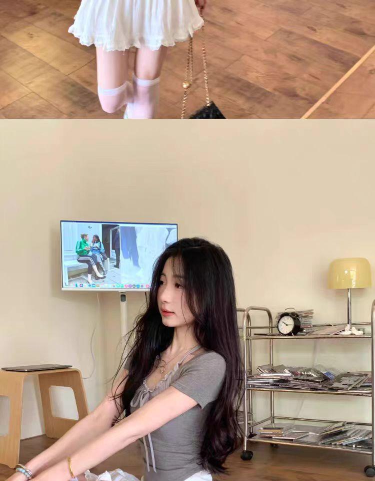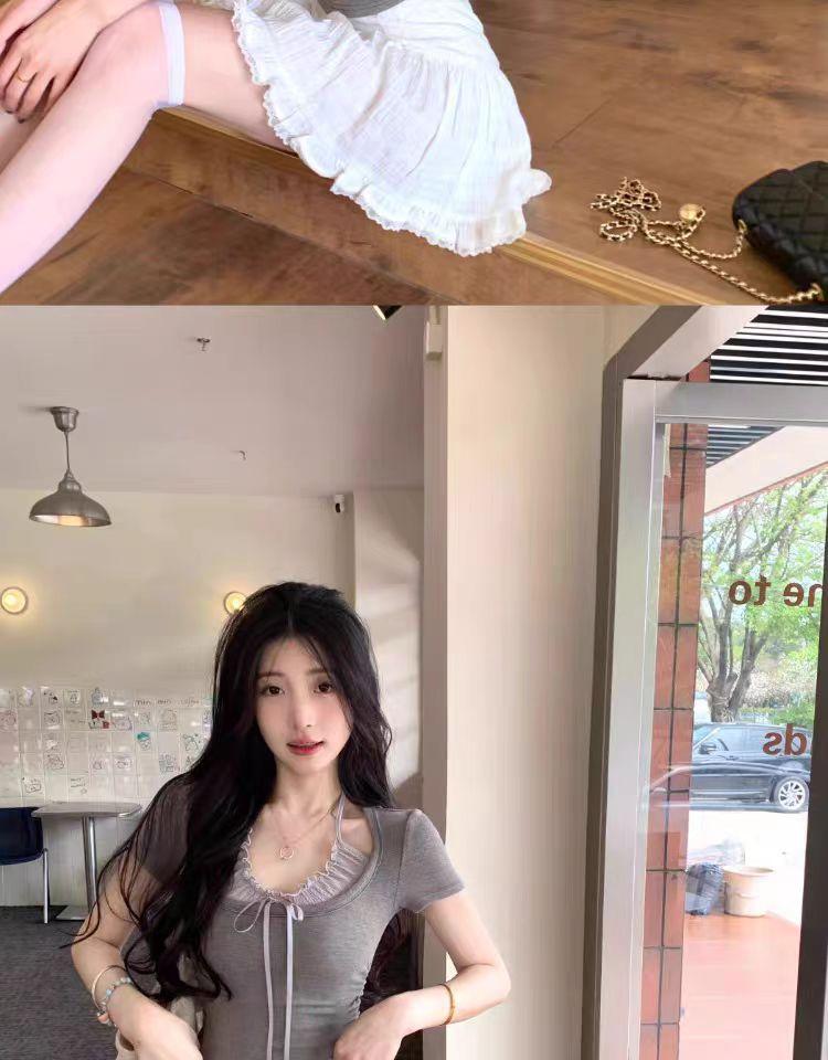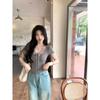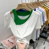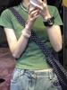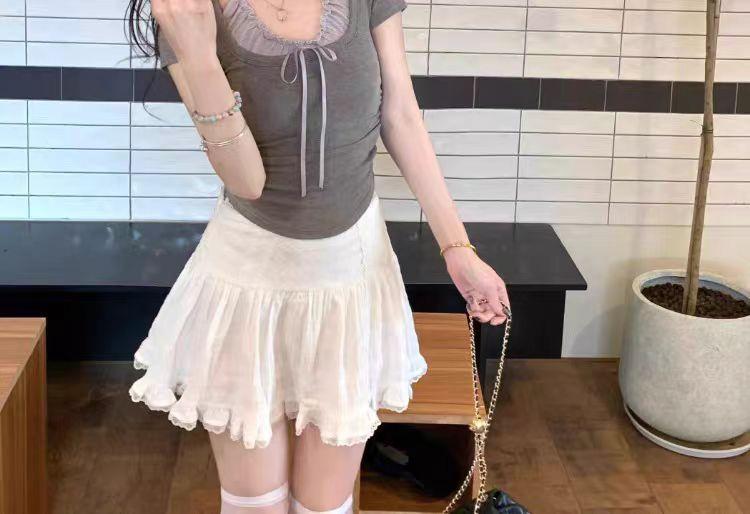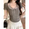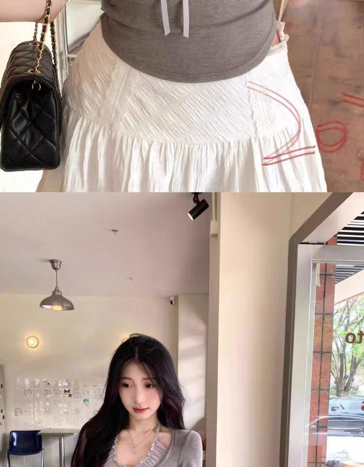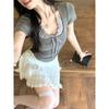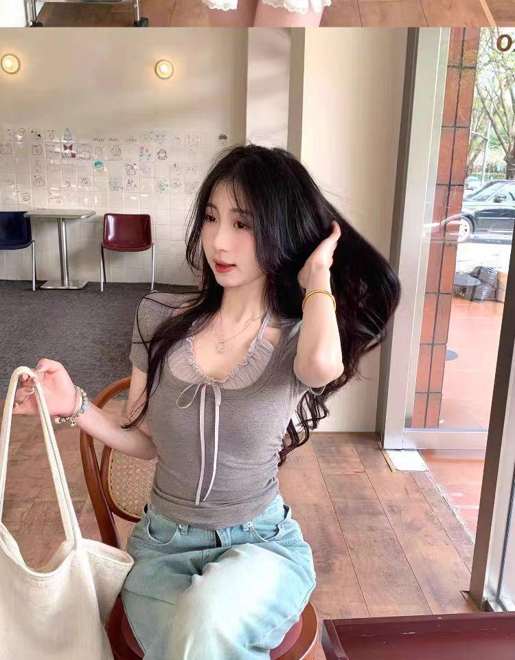 Camiseta Sexy Estilo Francés Deseo Puro Chica Picante Nicho Manga Corta Ropa Interior Nueva Ajustada Cuello Halter Falso Top de Dos Piezas para Verano