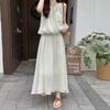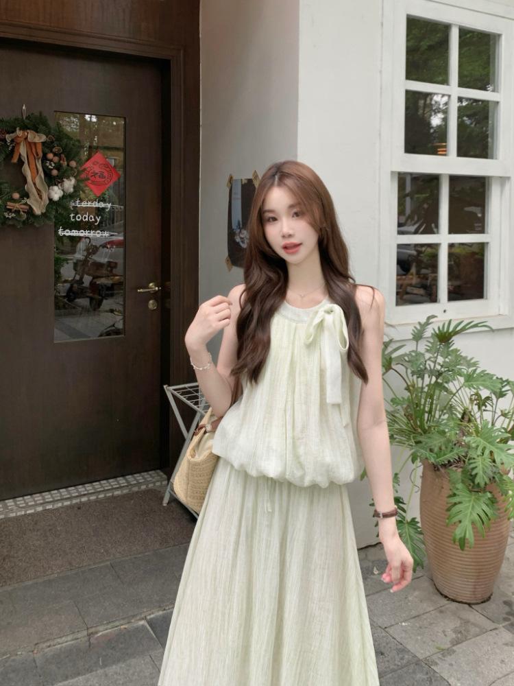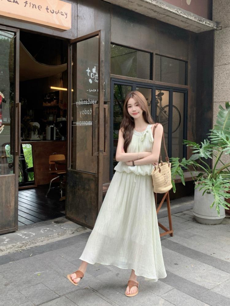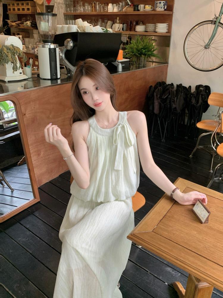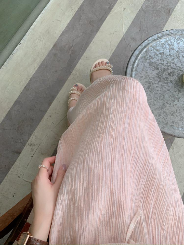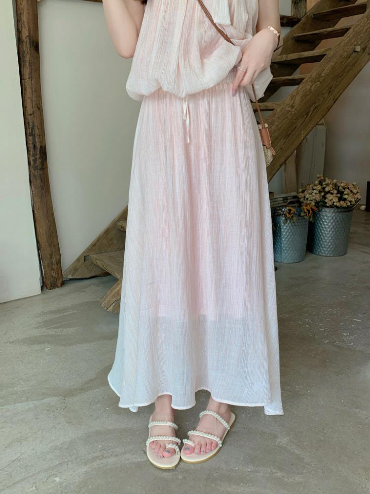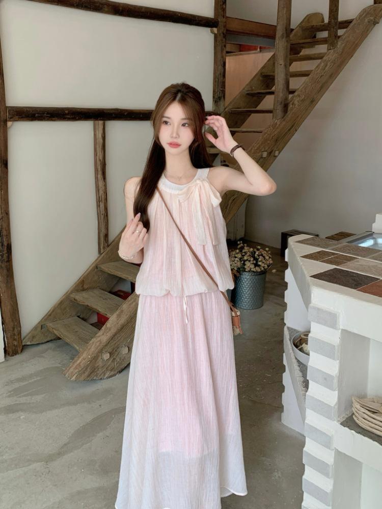 Traje de dos piezas con falda larga y cintura alta, estilo coreano, con cordones y plisado, estilo Cool Sense de verano.