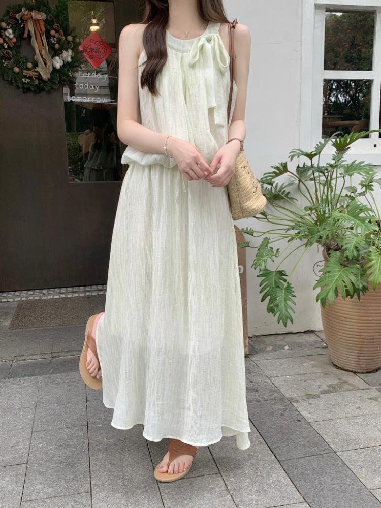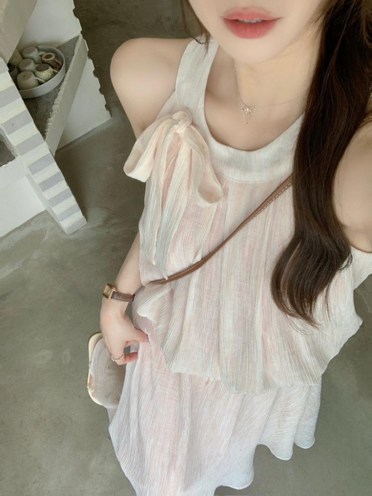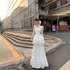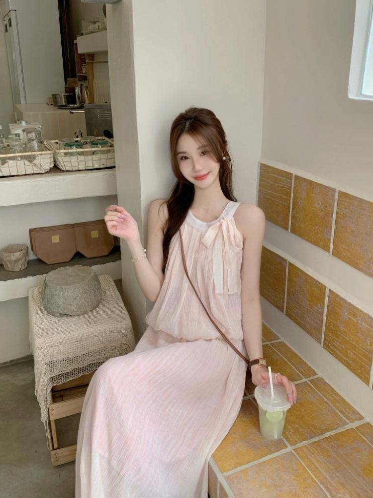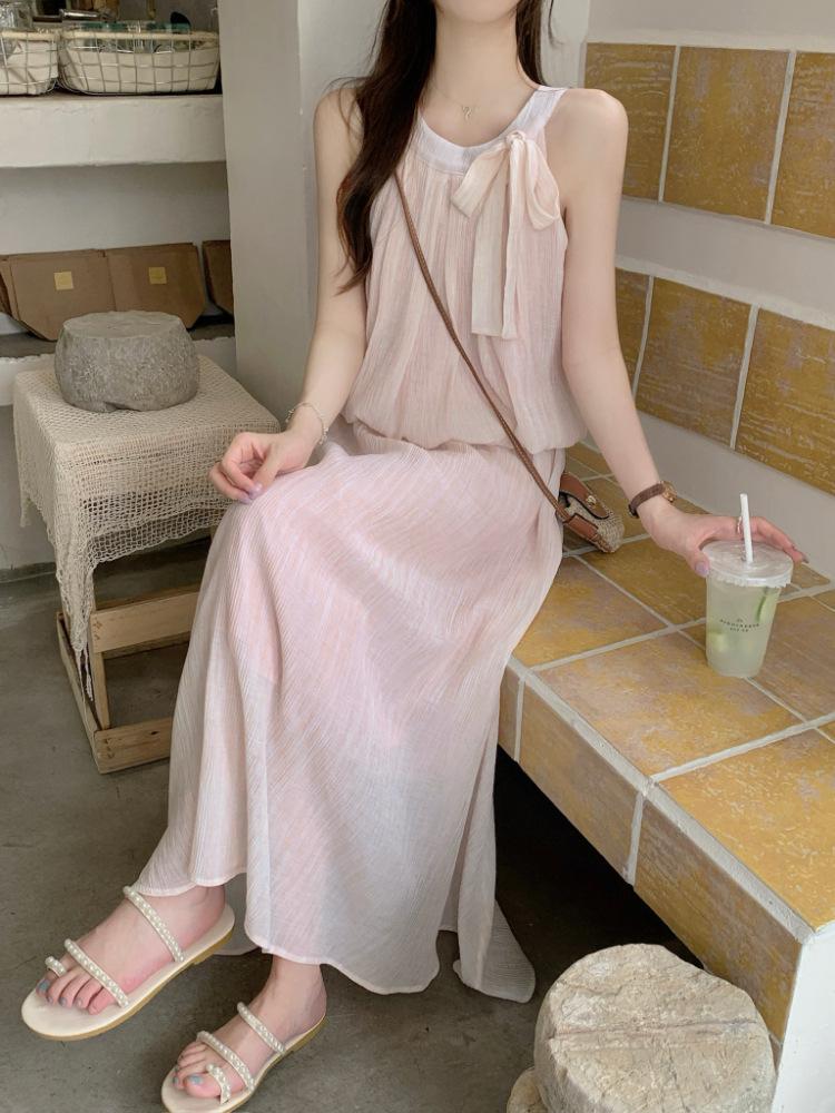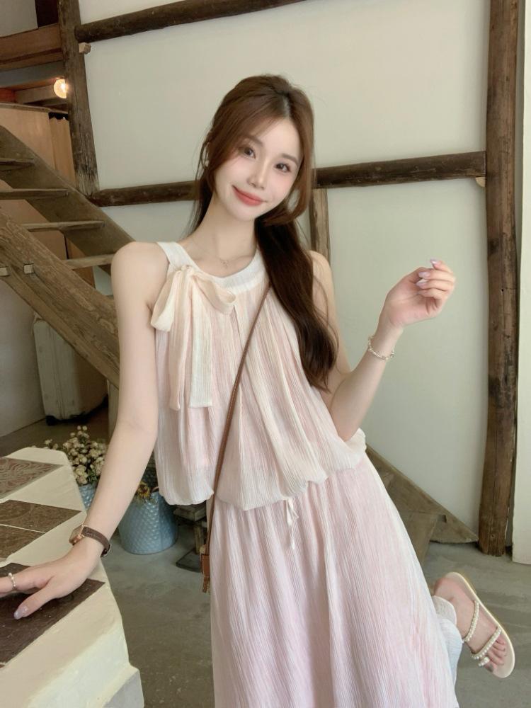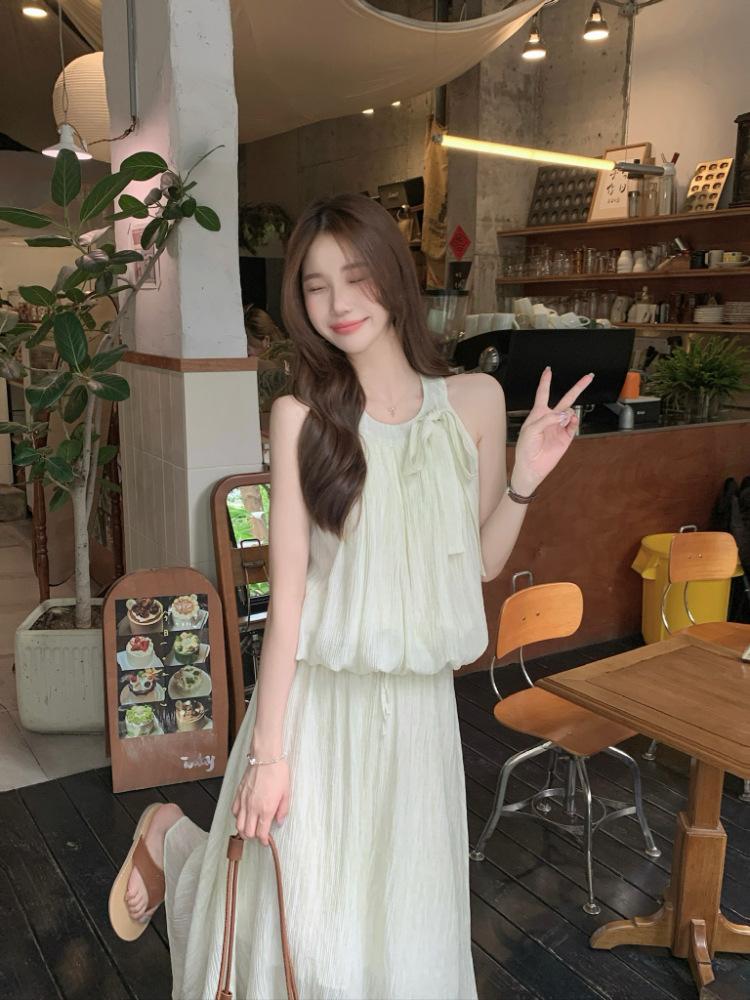 Traje de dos piezas con falda larga y cintura alta, estilo coreano, con cordones y plisado, estilo Cool Sense de verano.