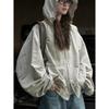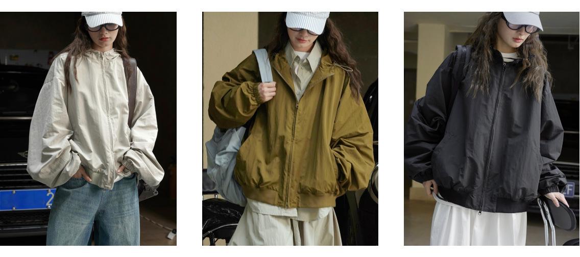 Principios de Primavera Nueva Chaqueta Deportiva para Exterior Estilo Japonés con Capucha Silueta Cortavientos Holgada Adelgazante Casual Top para Mujer