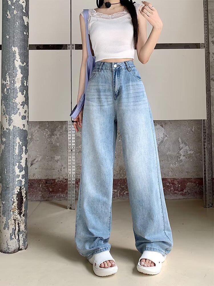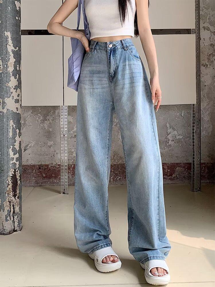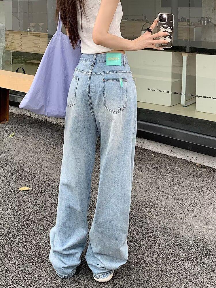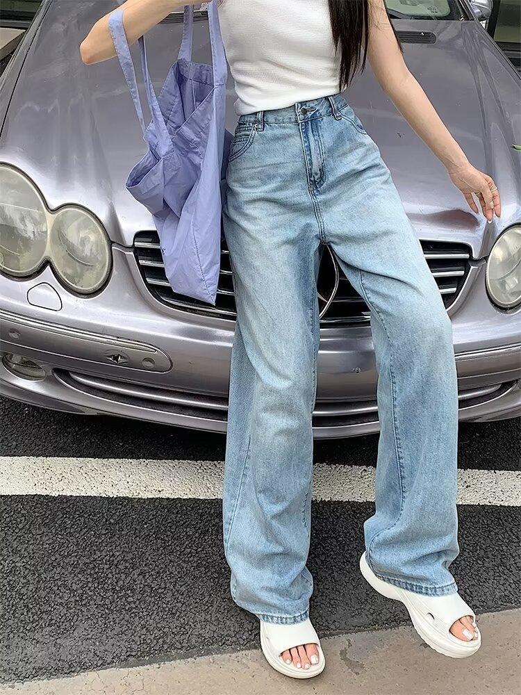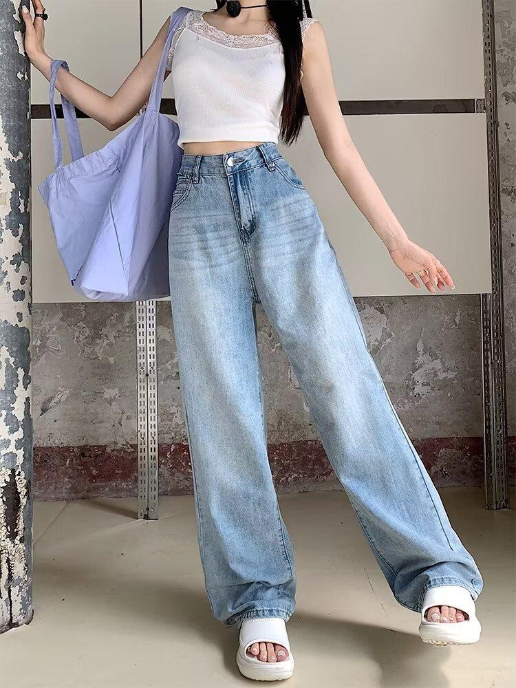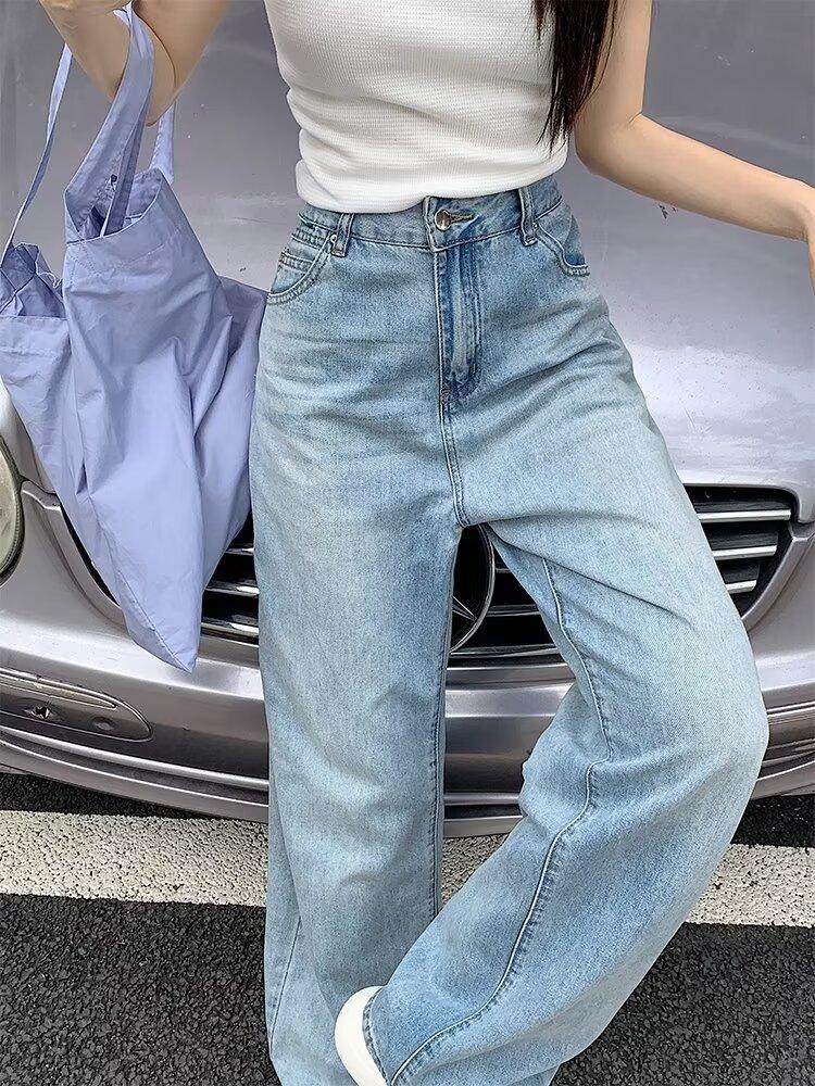 Jeans Vintage de Pierna Recta para Mujer 2025 Nuevo Estilo Americano Cintura Alta Sueltos Adelgazantes Talla Grande Pantalones de Pierna Ancha Pequeños