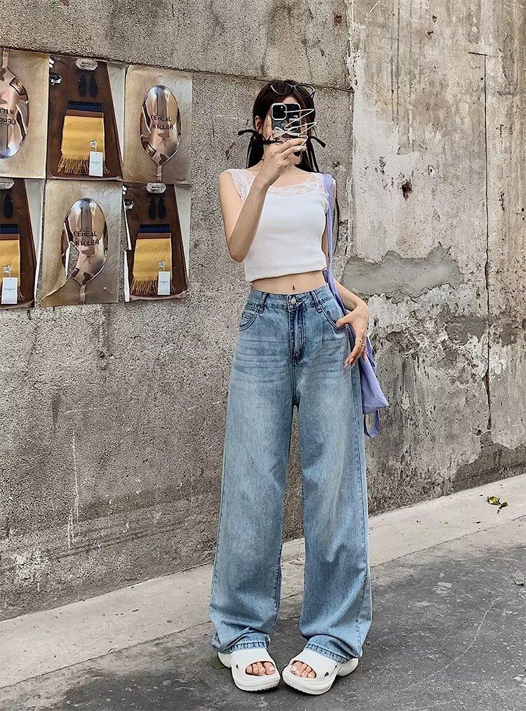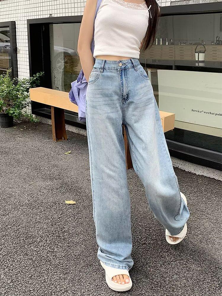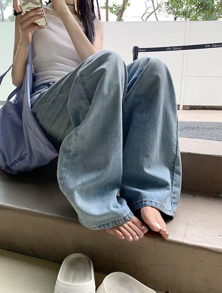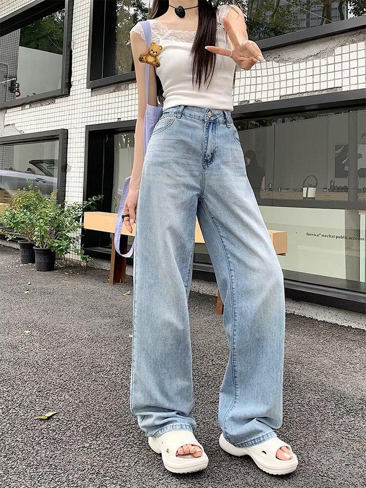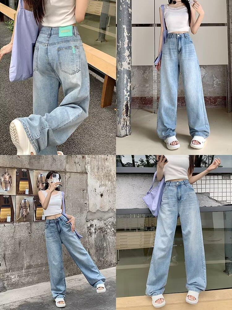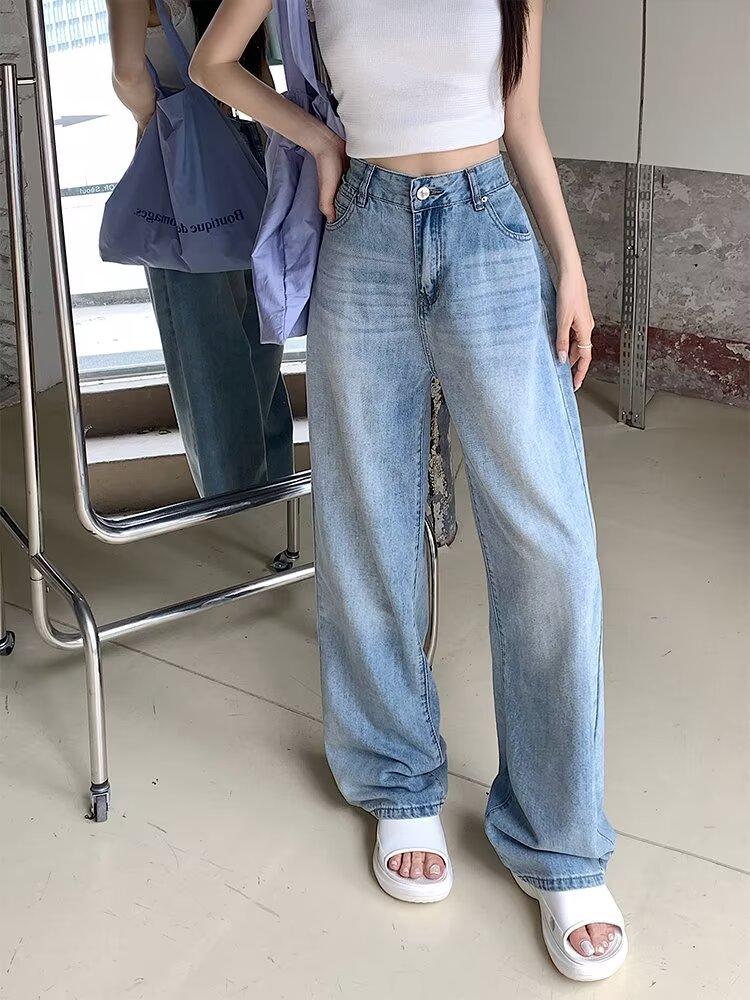 Jeans Vintage de Pierna Recta para Mujer 2025 Nuevo Estilo Americano Cintura Alta Sueltos Adelgazantes Talla Grande Pantalones de Pierna Ancha Pequeños