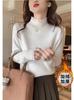 Camiseta básica de punto de cuello alto doblado estilo coreano para mujer, moda de otoño e invierno, elegante, entallada, adelgazante, suéter interior combinable, top
