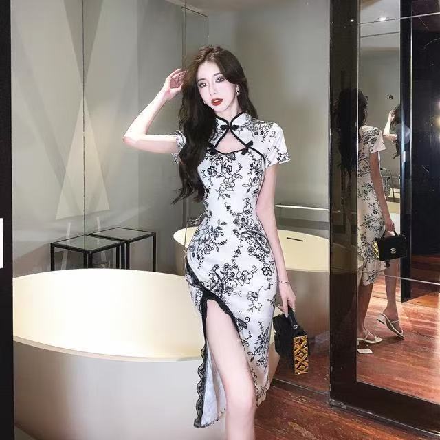 Nuevo estilo chino mejorado Cheongsam francés encaje retro joven temperamento abertura nuevo vestido de verano