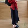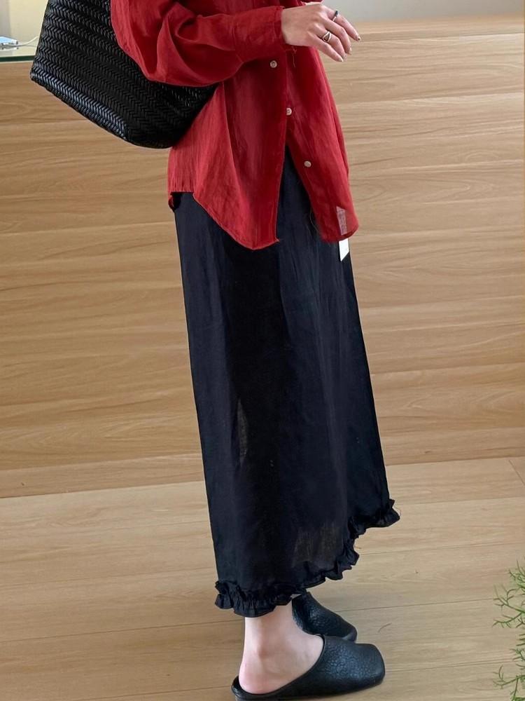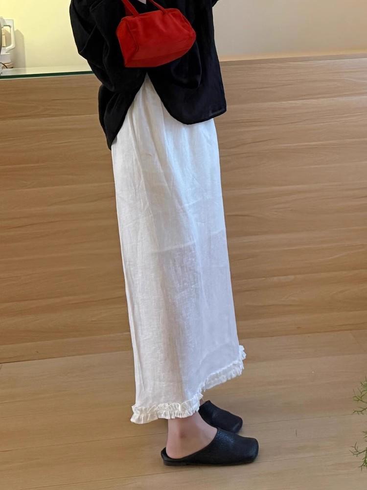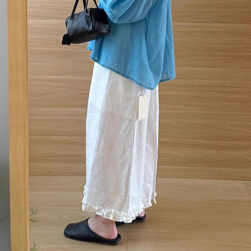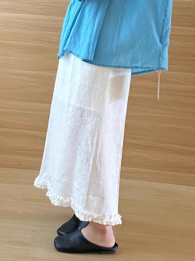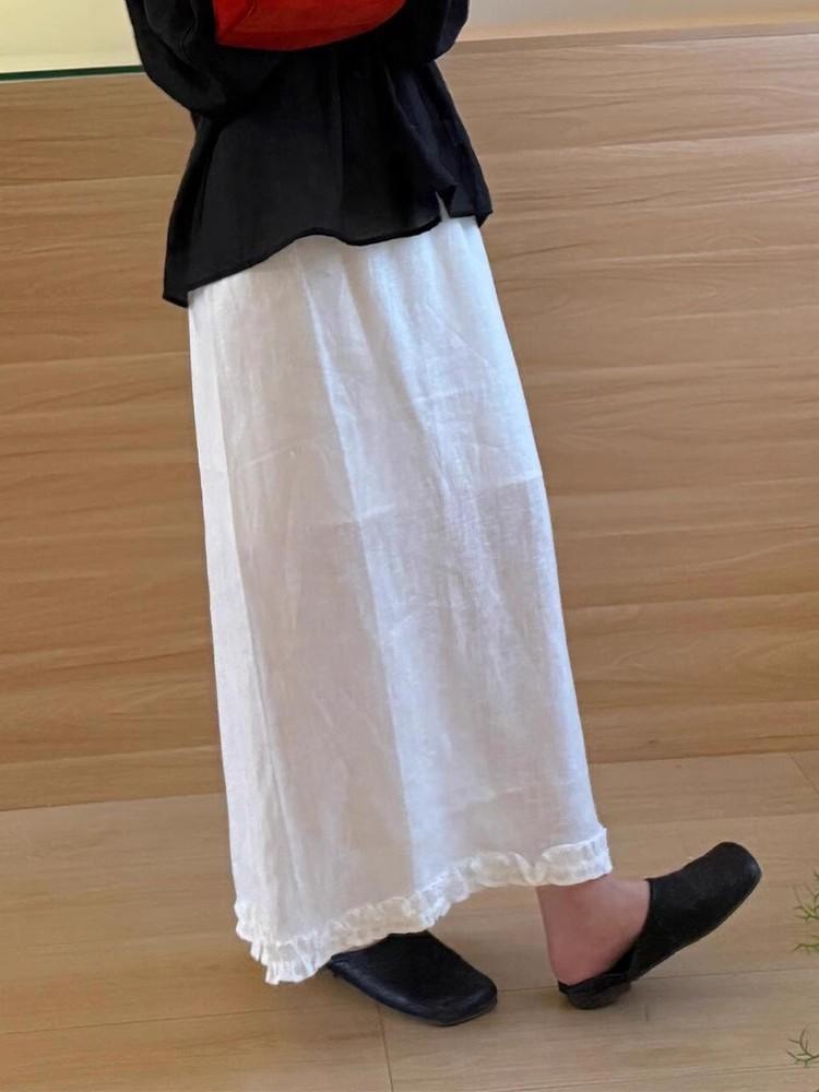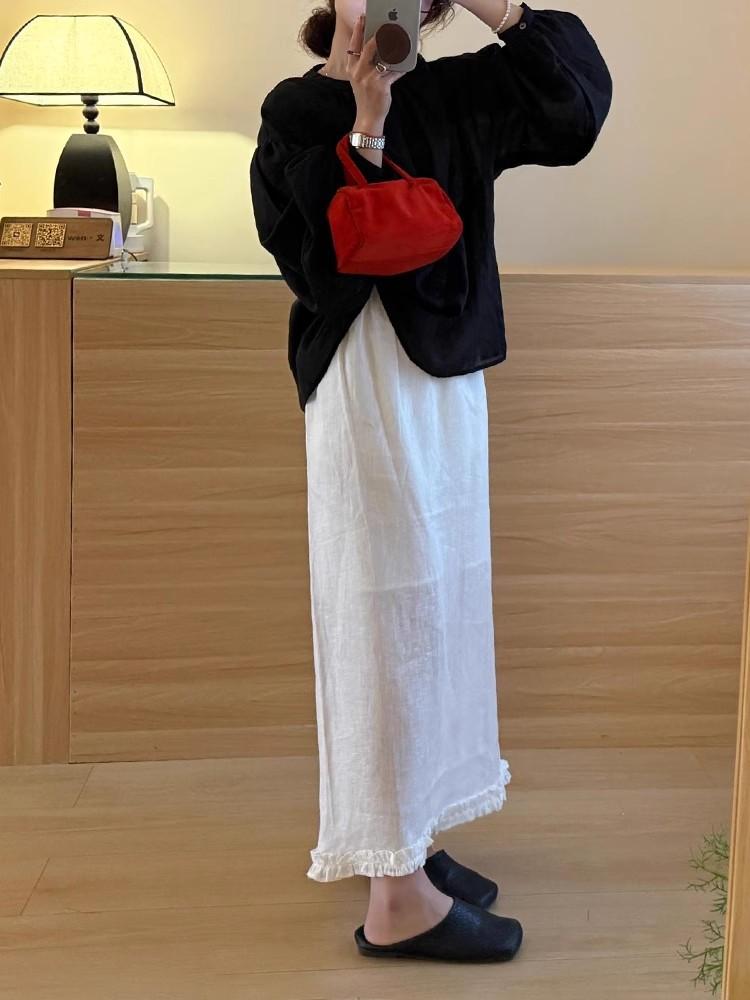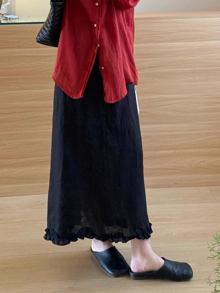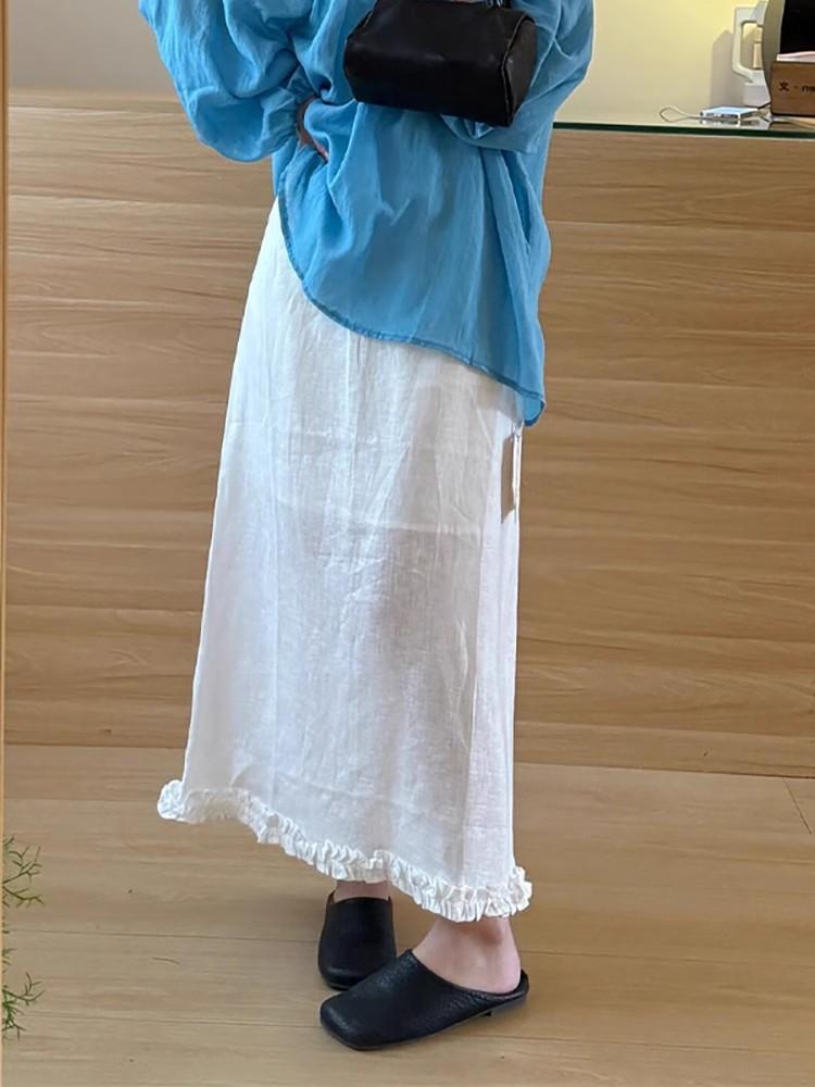 Falda Midi A-Line Adelgazante de Color Sólido con Volantes Estilo Retro Coreano Simple Versátil Estilo Lazy Falda Larga
