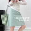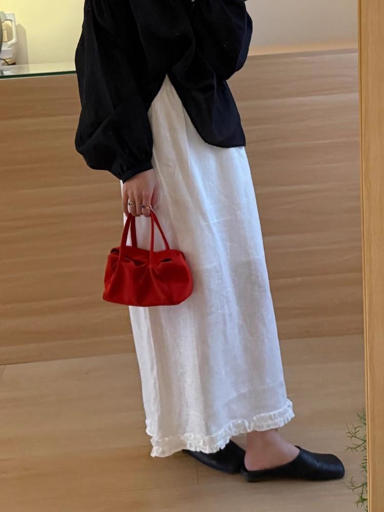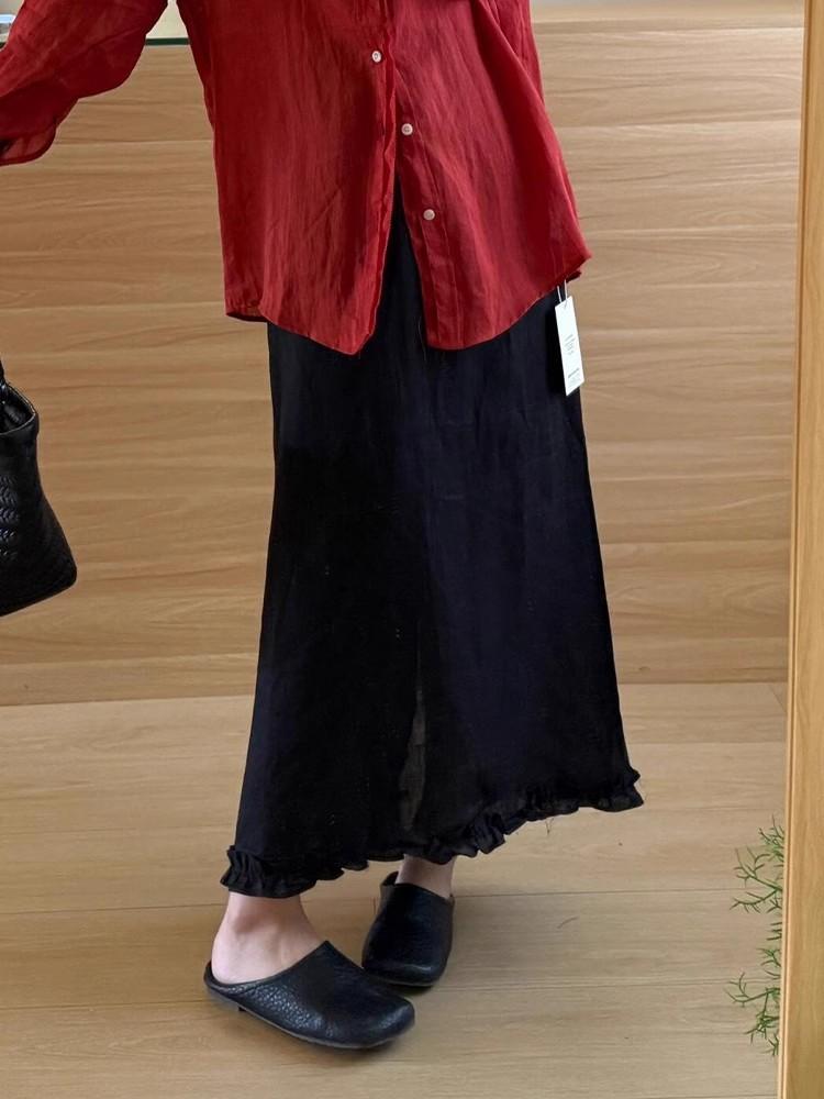 Atmósfera de estilo coreano moda retro simple versátil estilo holgazán borde con volantes color sólido adelgazante falda midi acampanada falda larga