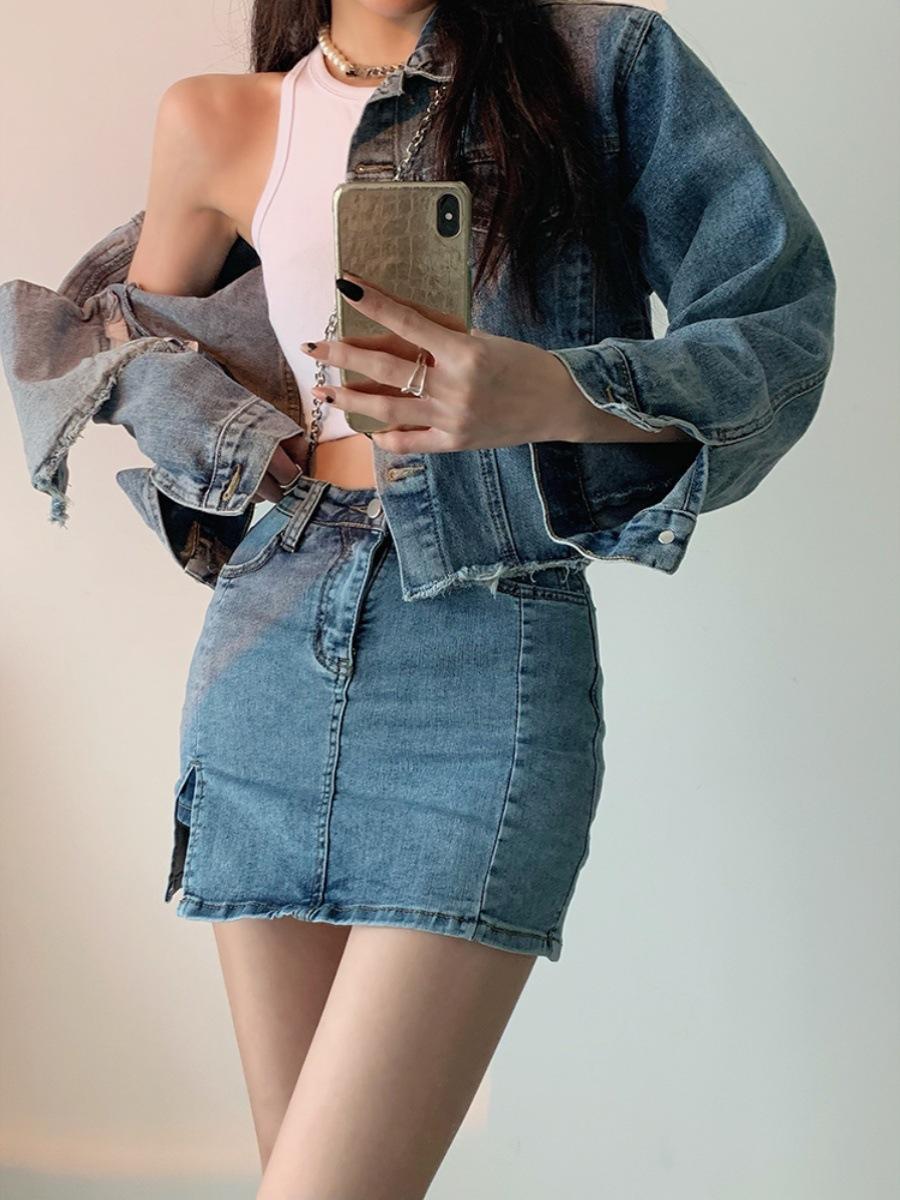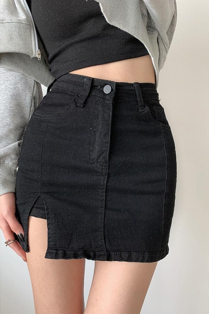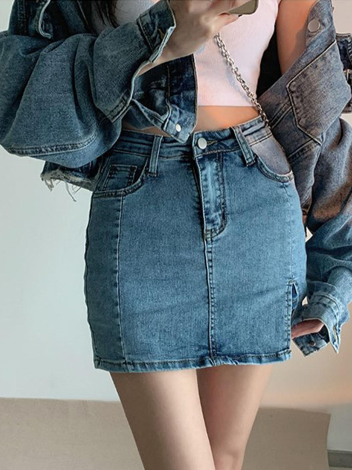 Minifalda de mezclilla para mujer, Verano Chica Caliente Cintura Alta Adelgazante Falda Línea A, Falda Versátil Ajustada a las Caderas, Falda de Mezclilla a la Moda
