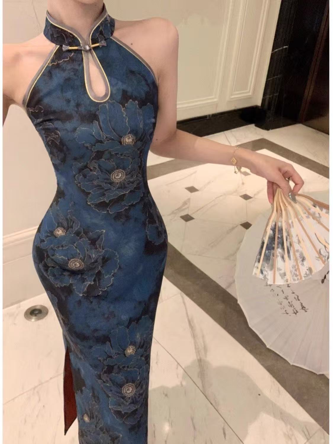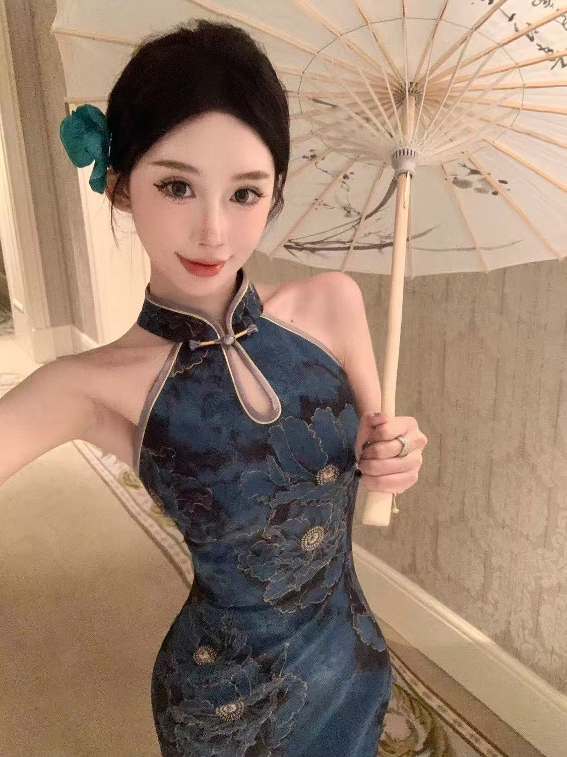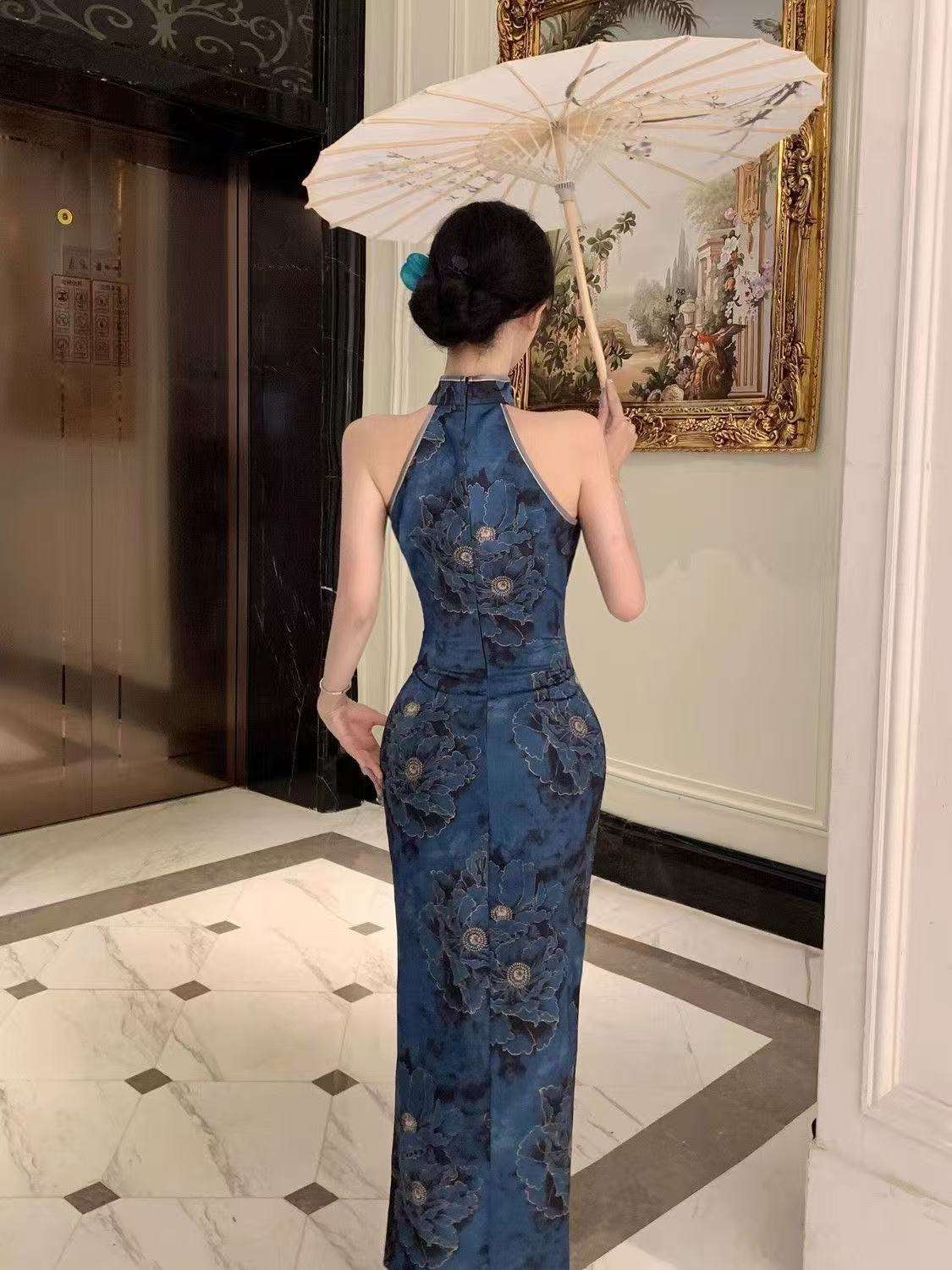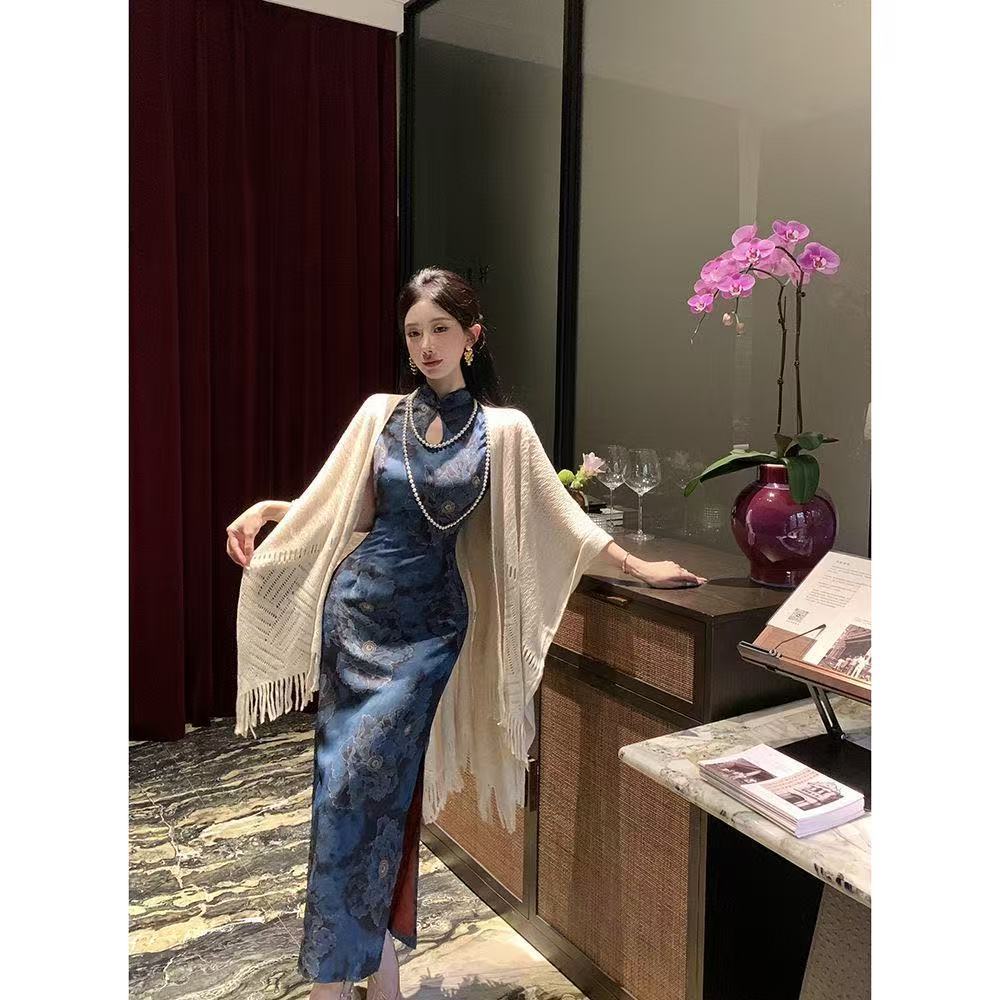 Elegante Estilo Socialité Estilo Chino Nuevo Cheongsam Slim Mejorado 2025 Nuevo Vestido Estampado de Cintura Falda Larga