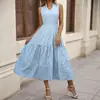 Exportación Transfronteriza Verano 2025 Nuevo Vestido Línea A Ropa de Mujer Europea y Americana Rayas Verticales Sin Mangas Cuello Alto