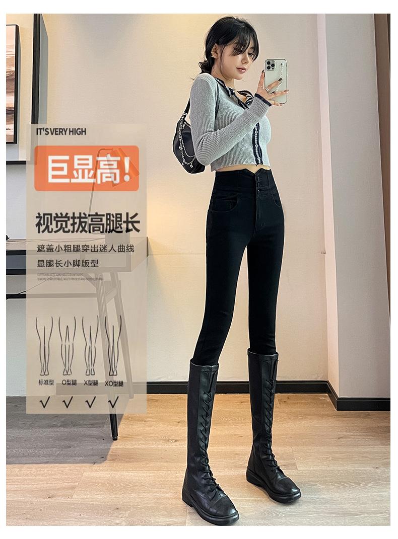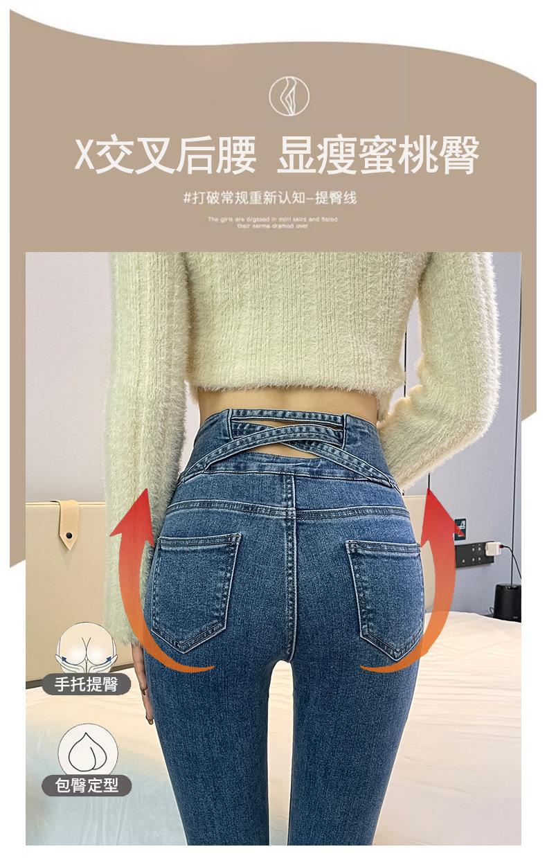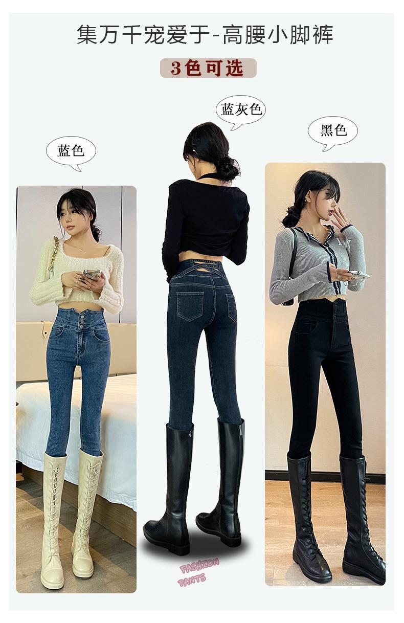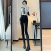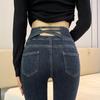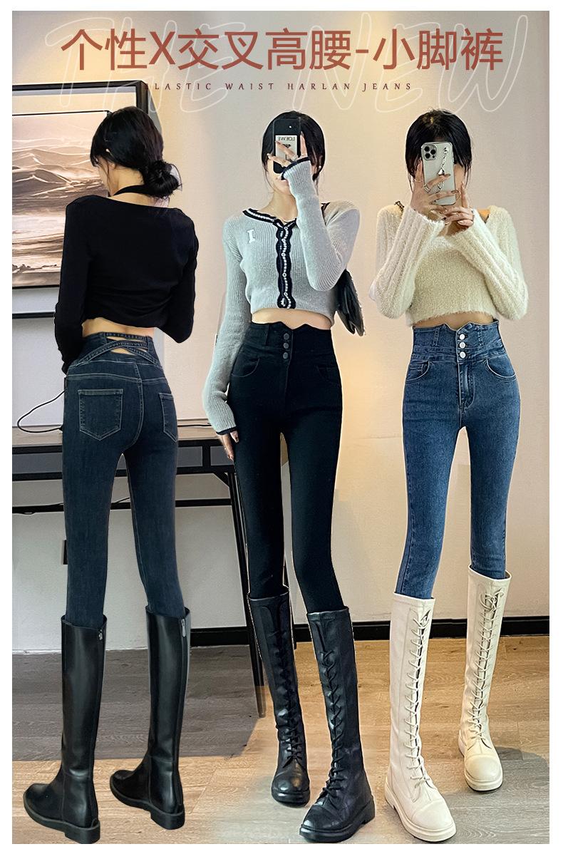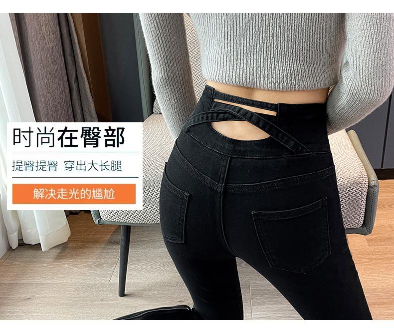 Jeans de Primavera y Otoño para Mujer, Pantalones Skinny de Corte Slim de Cintura Alta, Negros con Espalda Cruzada, Pantalones de Pierna Recta, Venta al por Mayor, Estilo Fresco