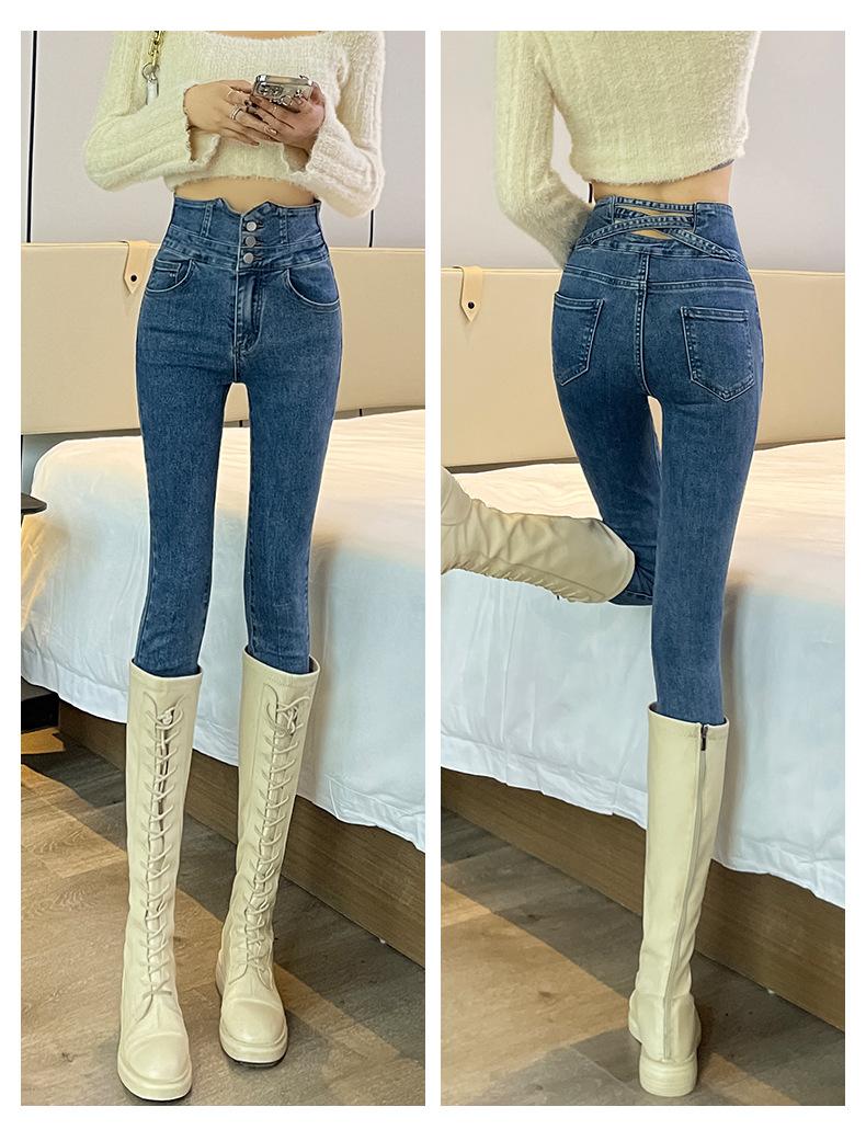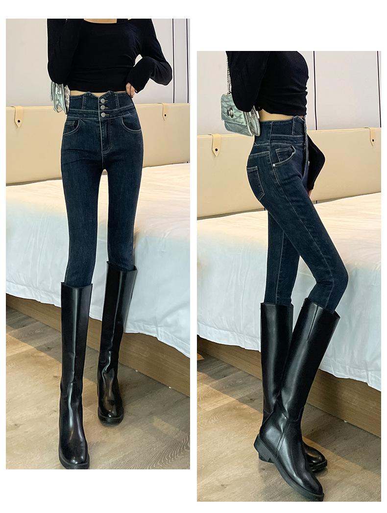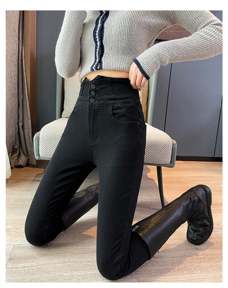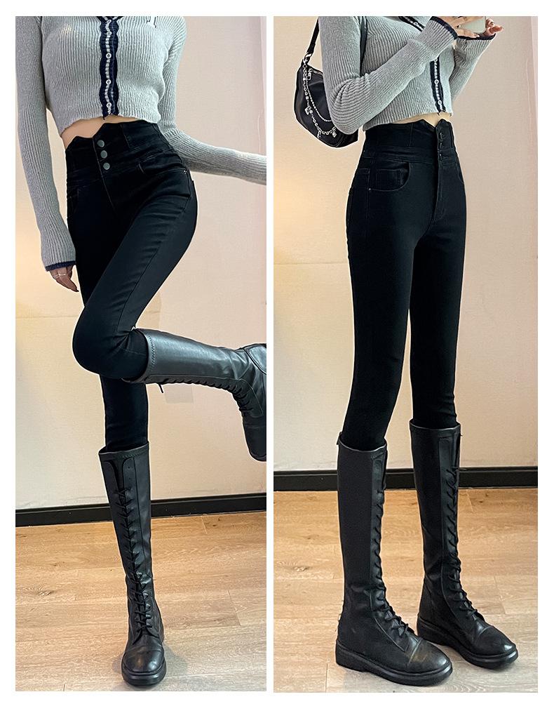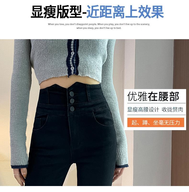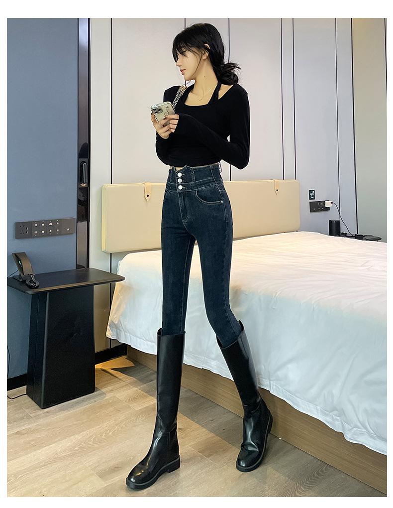 Jeans de Primavera y Otoño para Mujer, Pantalones Skinny de Corte Slim de Cintura Alta, Negros con Espalda Cruzada, Pantalones de Pierna Recta, Venta al por Mayor, Estilo Fresco